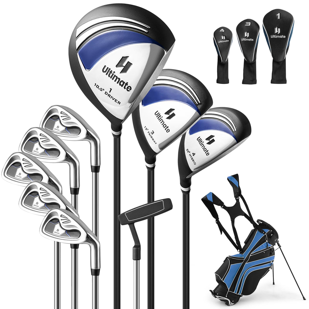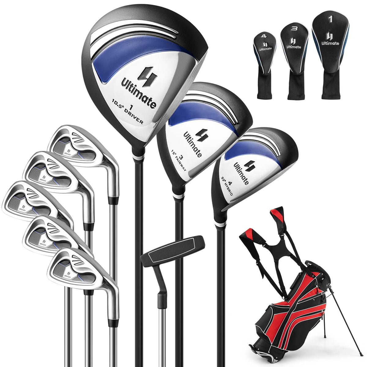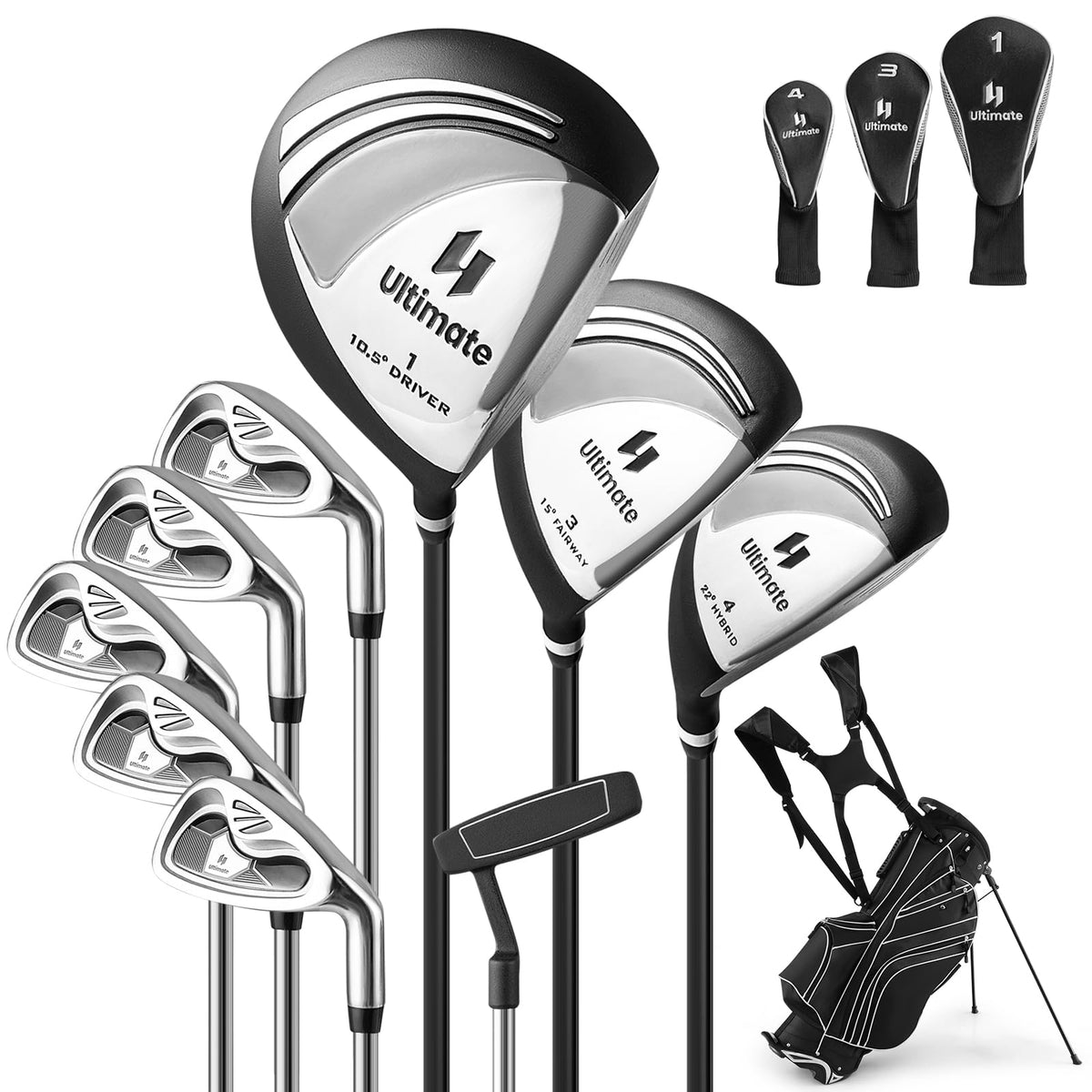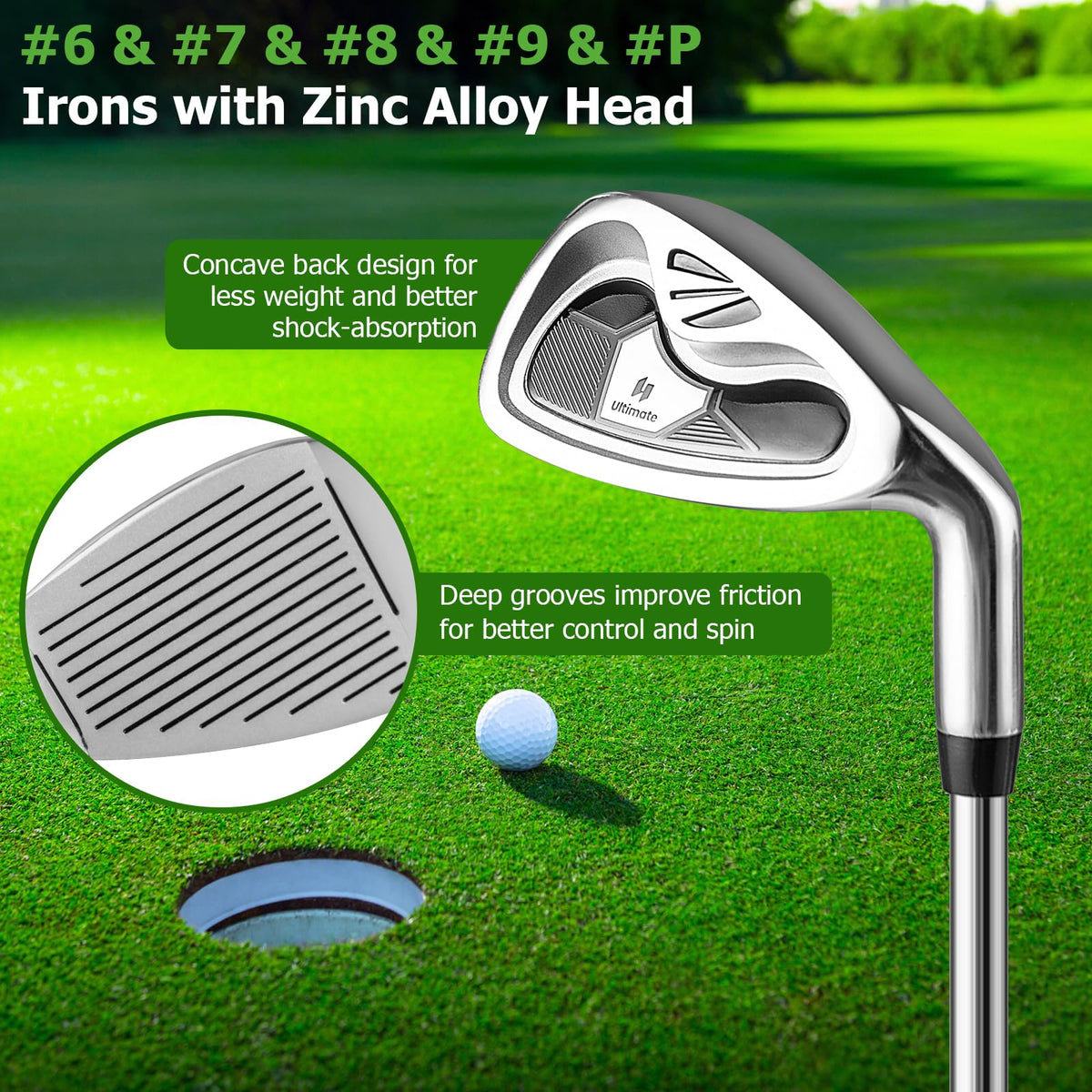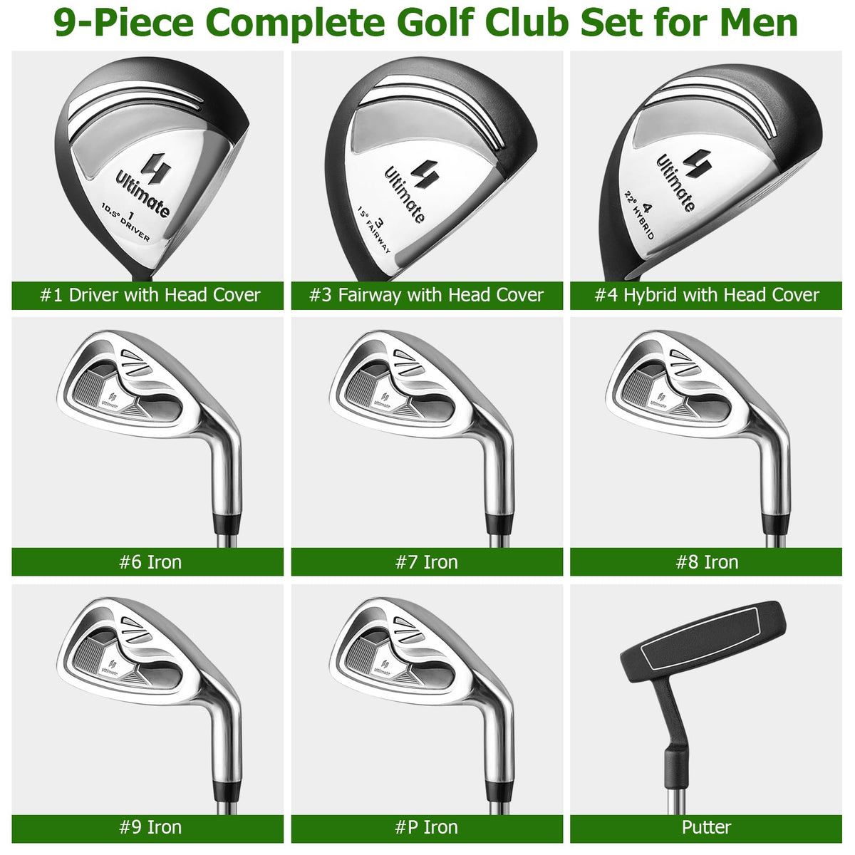 - Professional Complete Golf Club Set for Golf Lovers: The complete golf club set provides 9 pieces golf clubs for all levels to deal with all conditions. It includes an aluminum driver, a #3 fairway wood with head cover, a #4 hybrid, #6/#7/#8/#9 irons, a pitching wedge and a putter, getting golf lovers fully-equipped for the course.