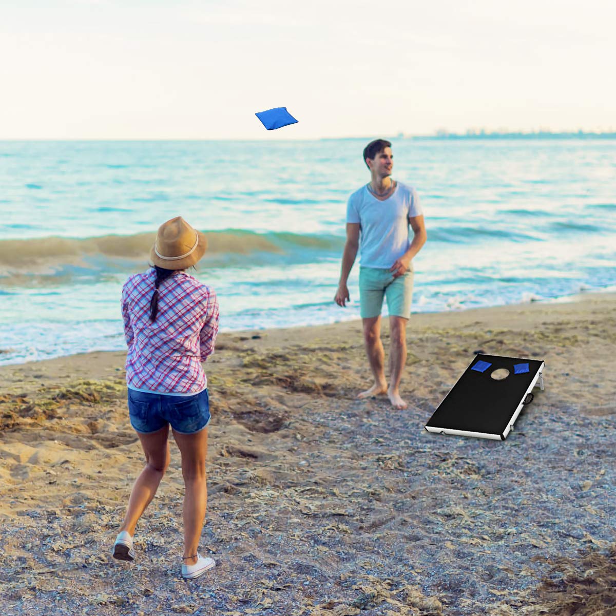 - 【Fun for All Ages】 Featuring weather-resistant material with sand filling protection, this cornhole game set can be widely applied in various occasions, such as parks, backyards, camp grounds, beaches, tailgating, social events and so on. Perfect outdoor activities for teens and adults.