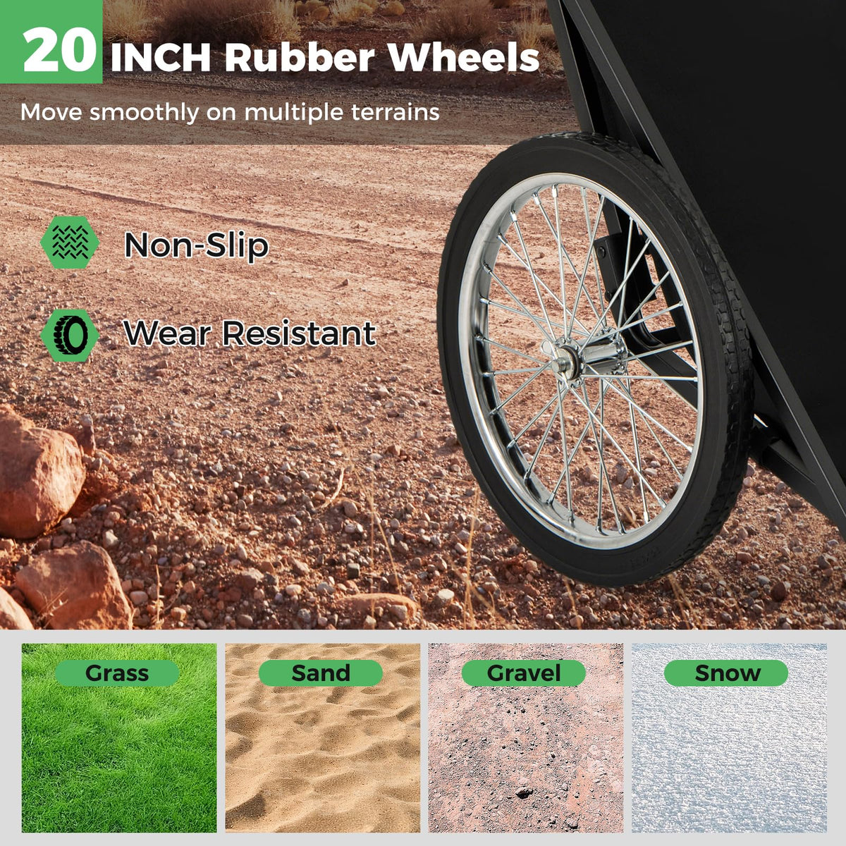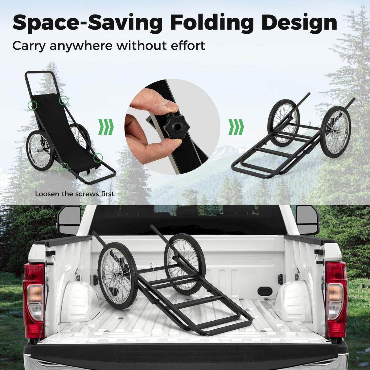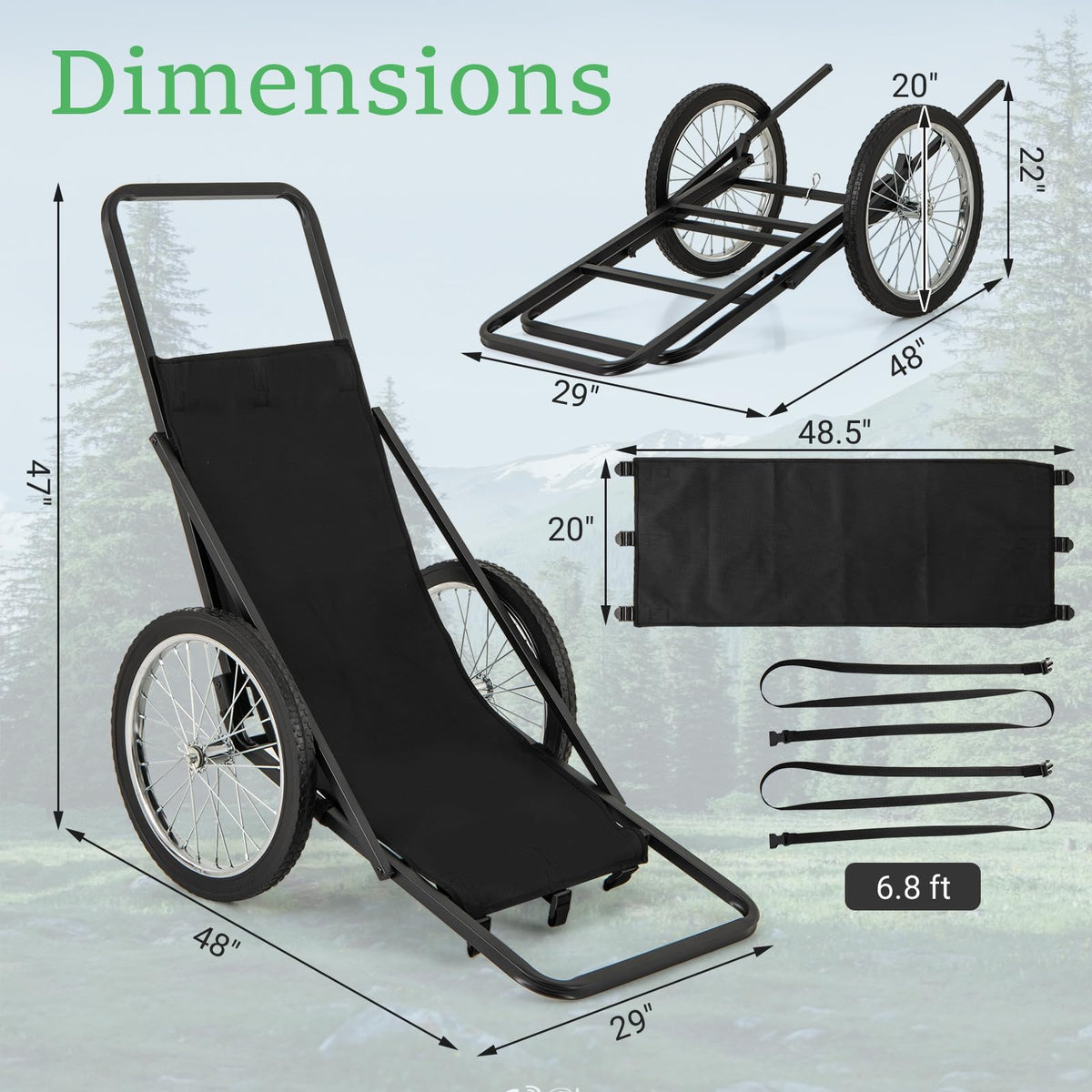 Our deer game cart is ideal for hunters to haul games, gear or hunting equipment from the field to truck. Moreover, you can use it to carry firewood as you need. This hunting cart is constructed from solid steel tubes, making it stable and strong enough to transport trophy game weighing up to 500 lbs. And the large 20’’ wheels with rubber tire are wear-resistant and sturdy, which are suitable for various roads and ideal for hunting in the forest. What's more, t his deer game cart can be easily folded, which is convenient to carry or storage.