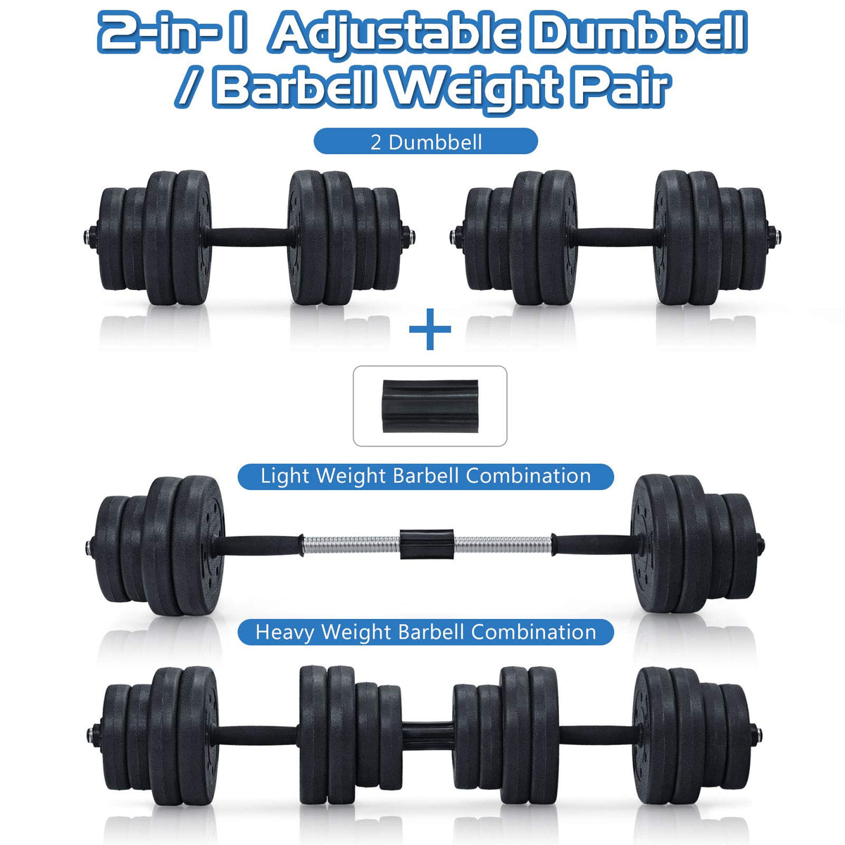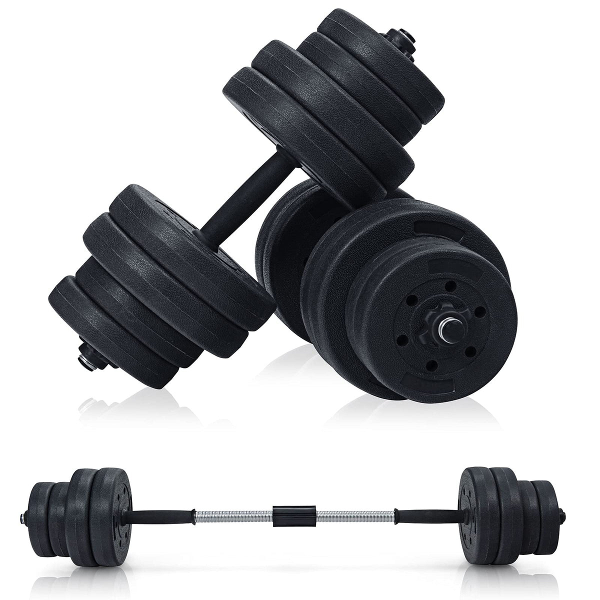 - 2 in 1 Design: Special design of the dumbbell allows you to have a barbell at the same time. Easy assembly and separation of the detachable weight bar makes this dumbbell set versatile for whole body training.