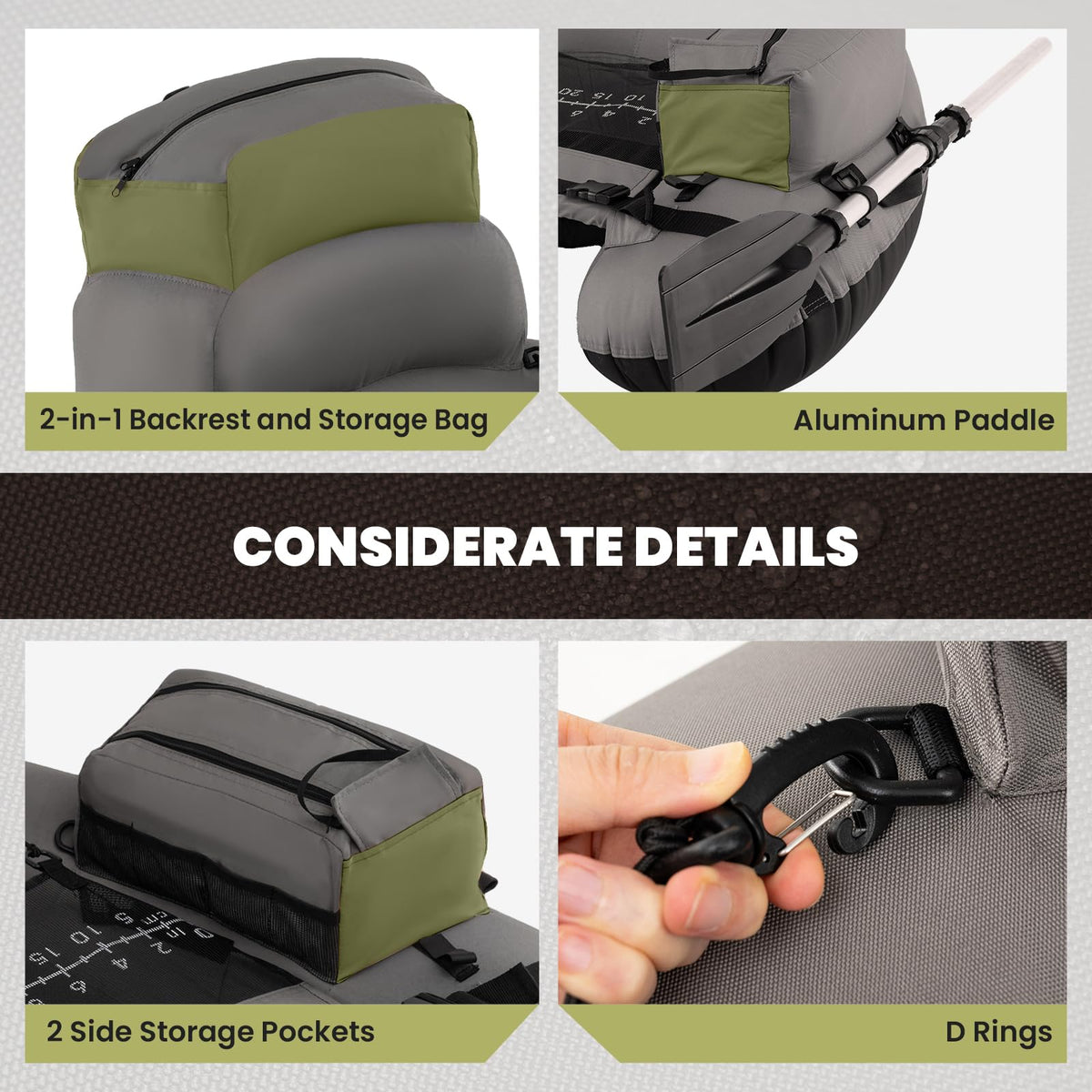 3 storage bags provide ample space to store fishing gear and personal belongings