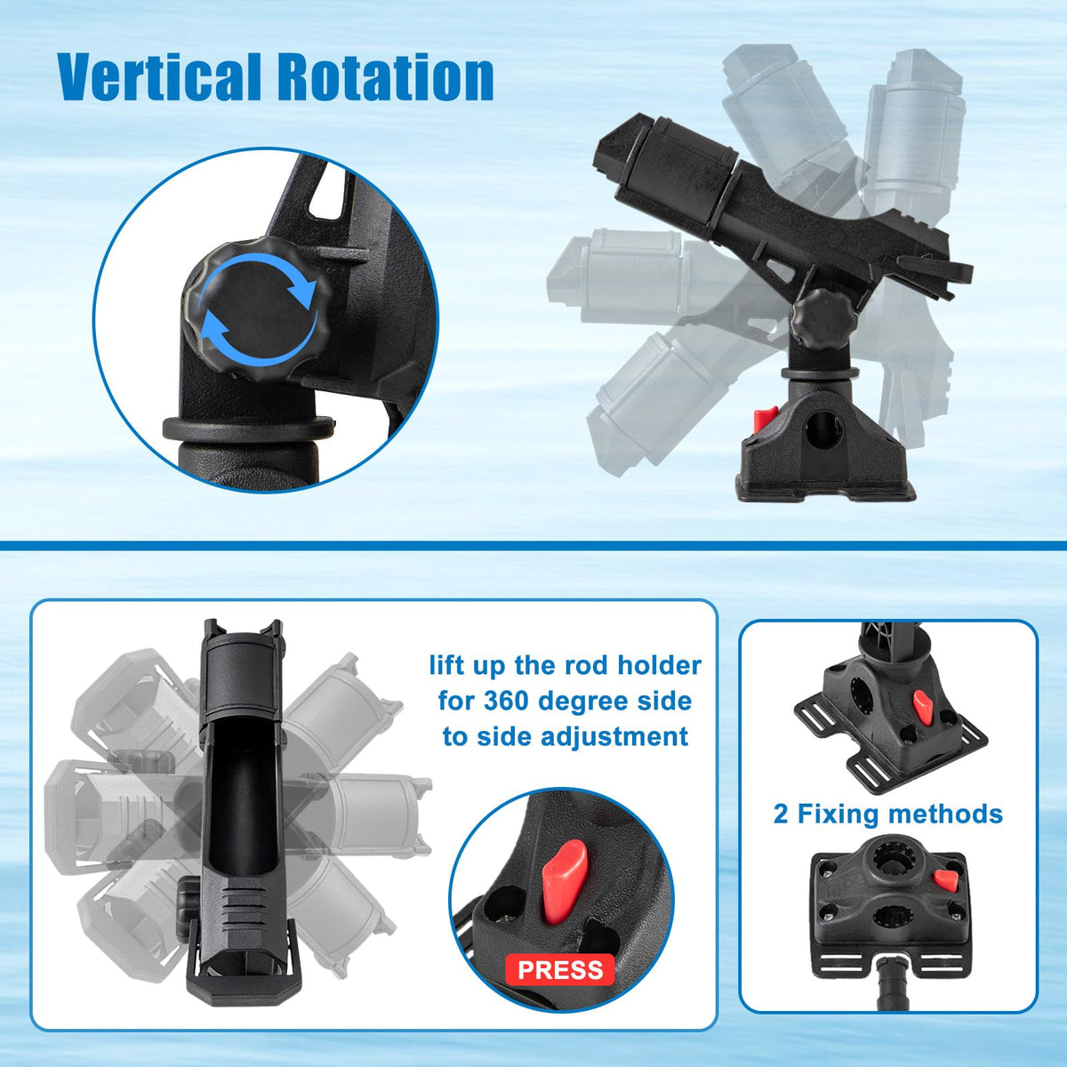 - 3 Mounting Base: This accessories combo includes 3 rack base, which are all 360 degree adjustable. Besides, the base can be fixed on your boat or kayak in 2 different methods with 6 included fixing straps, no drill needed.