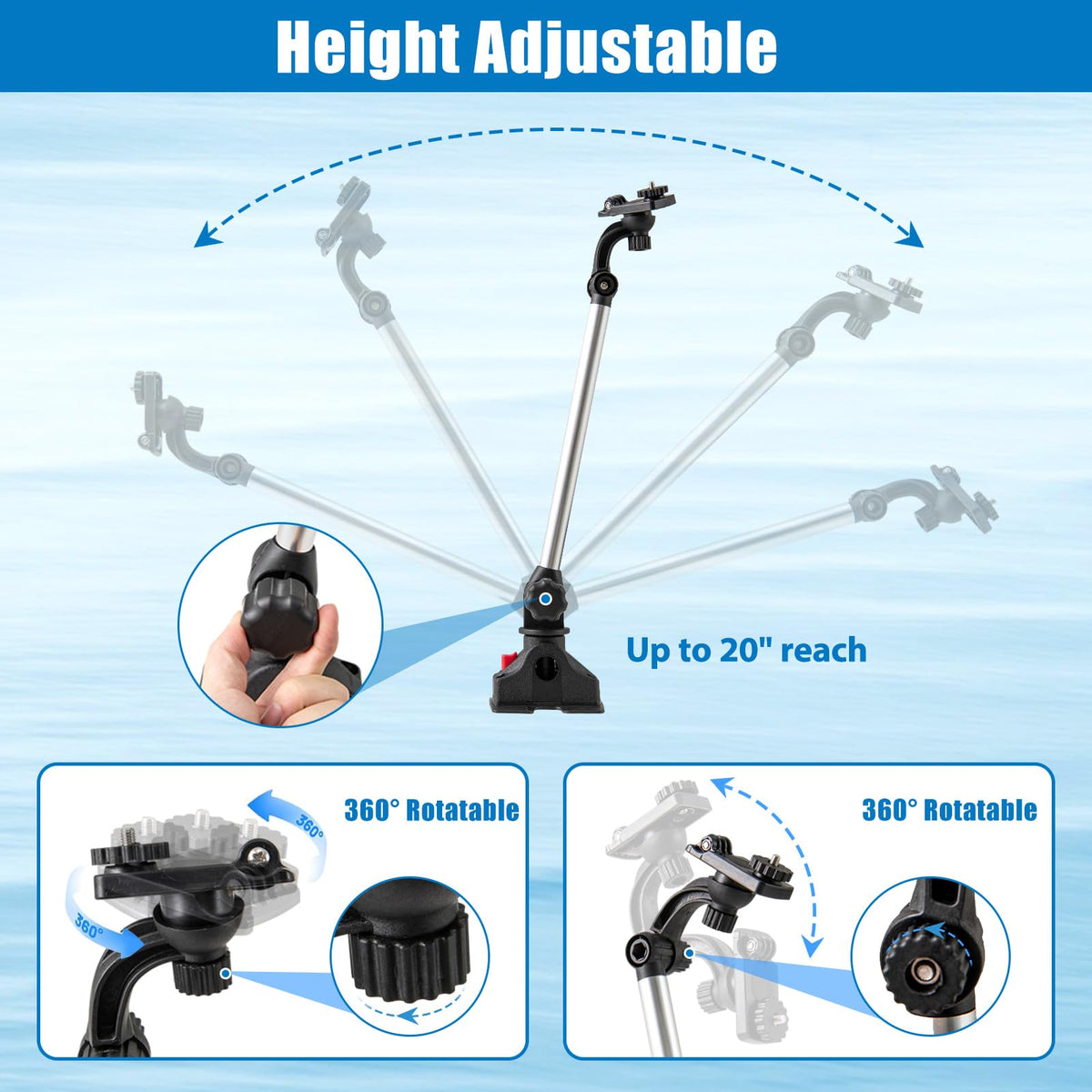 - All Your Need for Fishing: This complete accessories kit come with a fishing rod holder, a camera holder and a anchor lock release system, satisfying all your needs for fishing, recording and keeping your boat stable in still water.