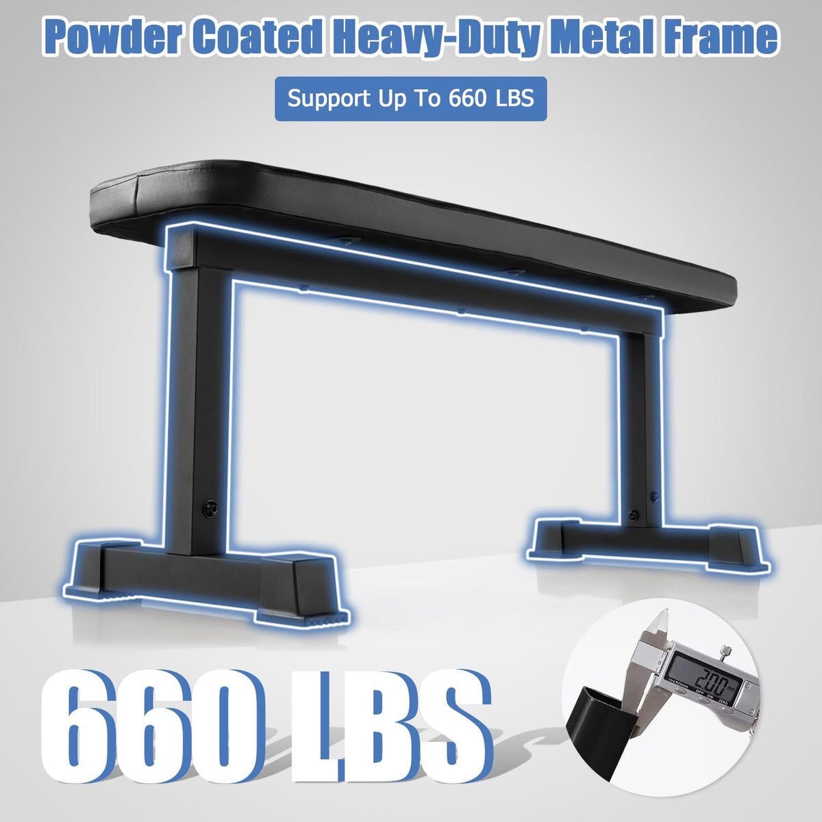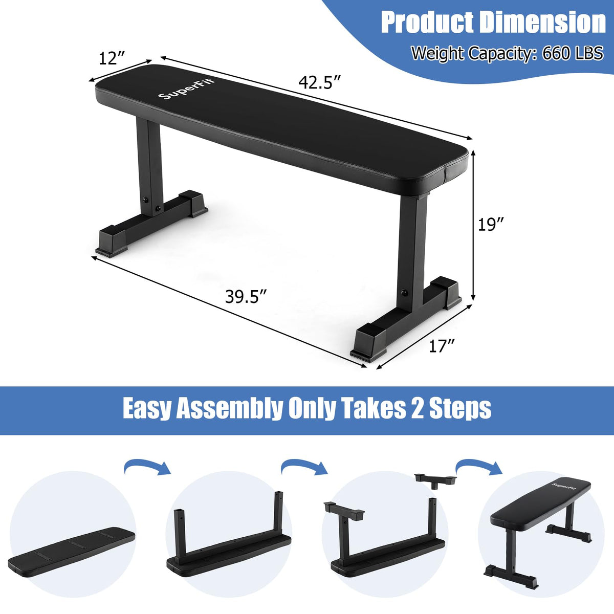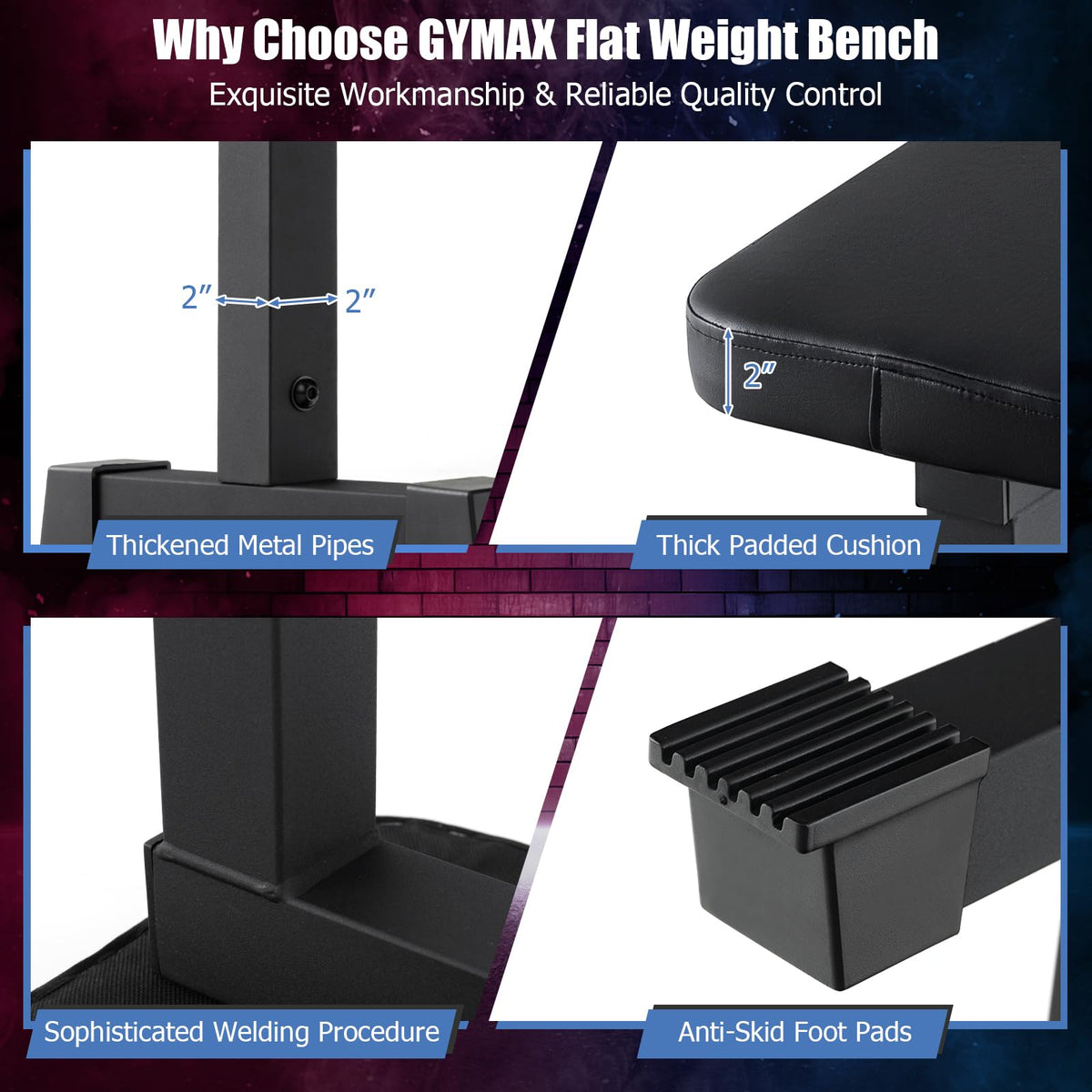 GYMAX Flat Weight Bench, 660lbs Easy Assembly Weight Bench Press with Thick Cushion & Anti-slip Foot Pads