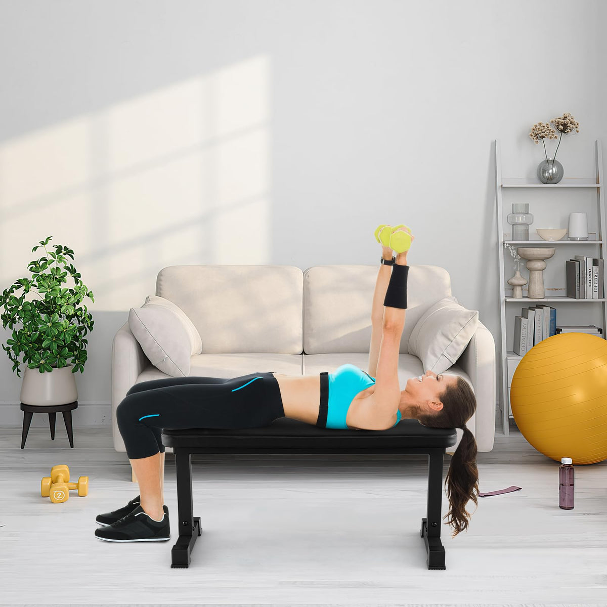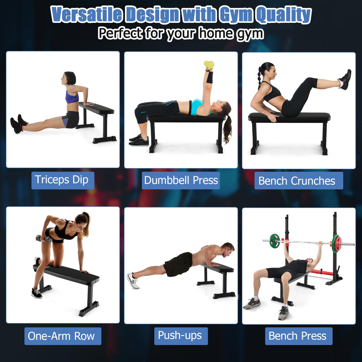 - Full Body Exercise: This multi-functional flat weight bench will be a perfect addition for your home gym, which can be used for various training, such as triceps dip, bench press, bench crunches, push-ups, one-arm row and more.