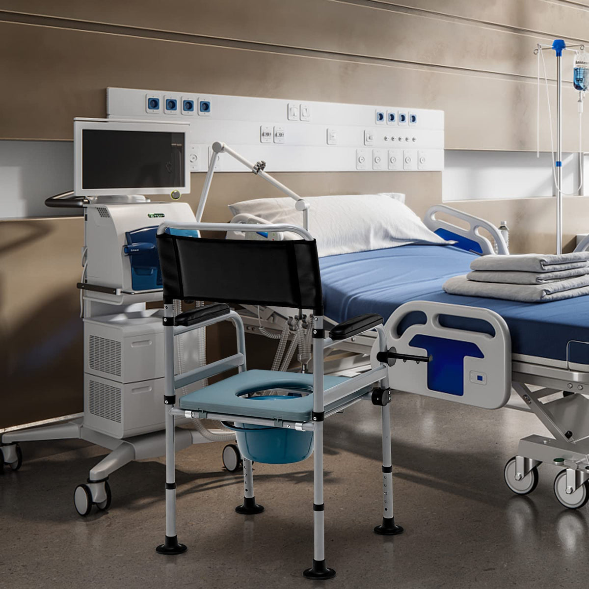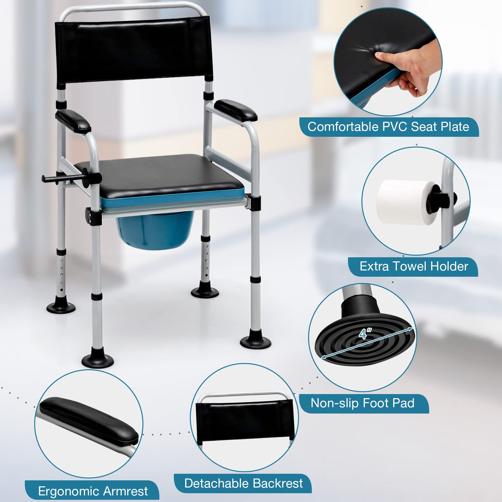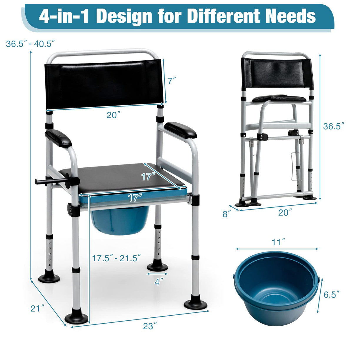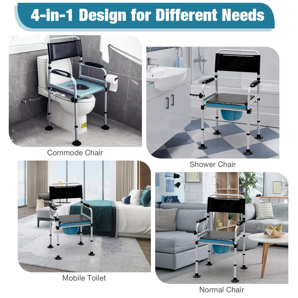 - 4 in 1 Multifunctional Commode Chair: GYMAX commode chair is a great assistant for the elderly and the disabled, as it’s not only a convenient bedside commode, but also a shower chair, a toilet safety frame, and a padded chair as well. Passed FDA test for reliable using experience.