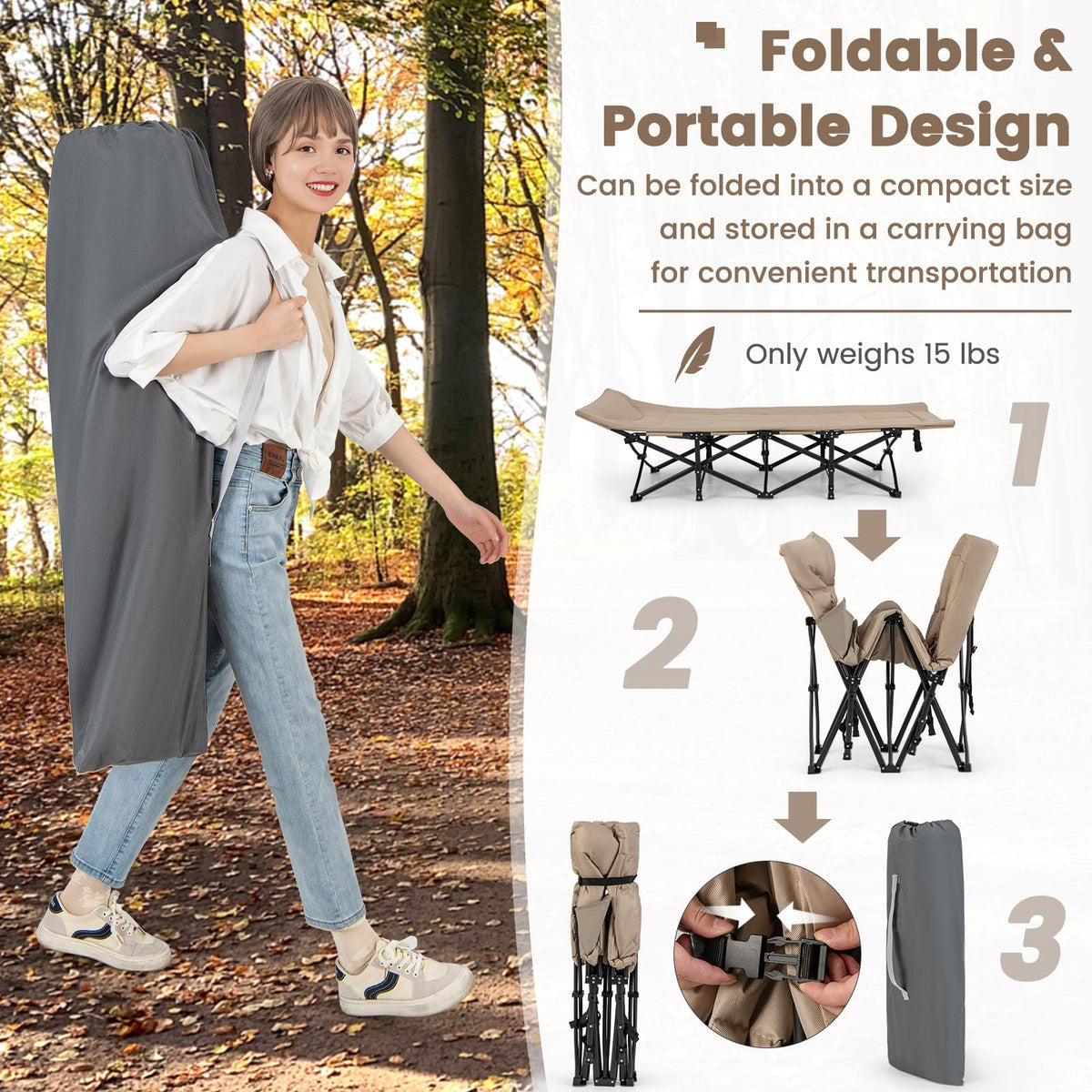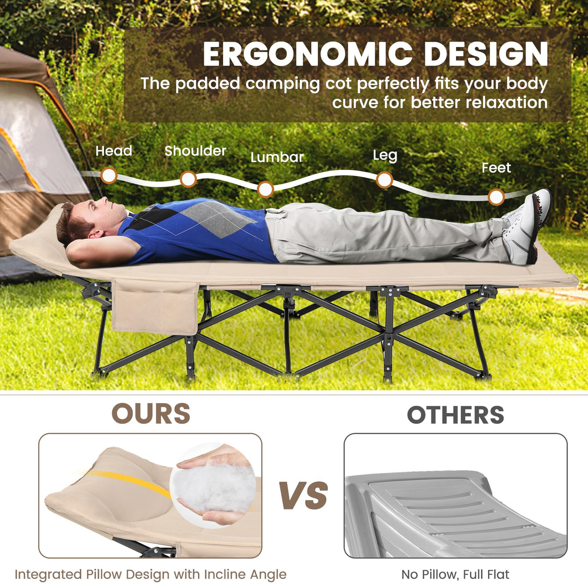 GYMAX Folding Camping Cot for Adults w/Cushion & Pillow, Padded Portable Outdoor Sleeping Bed w/Carrying Bag