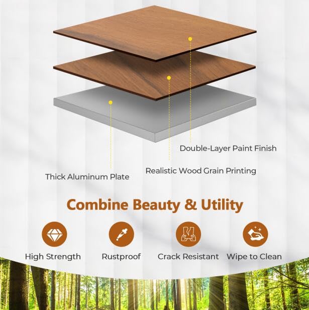 - Combine Beauty & Utility: This thick aluminum plates is crafted with double-layer paint finish and realistic wood grain printing, which is high strength, anti-rust and easy to clean. The wood grain painting surface adds a touch of sophistication to your outdoor setup.