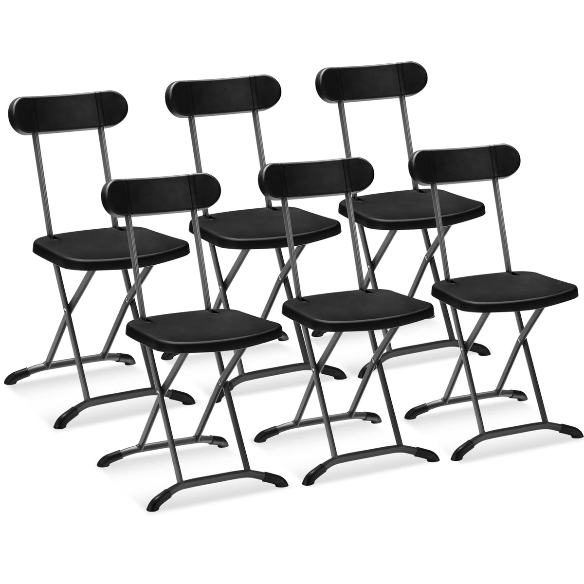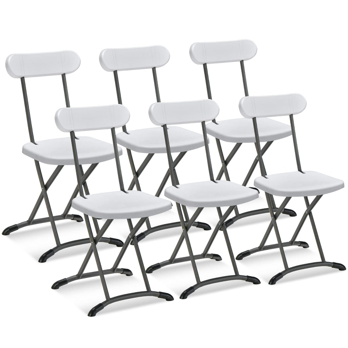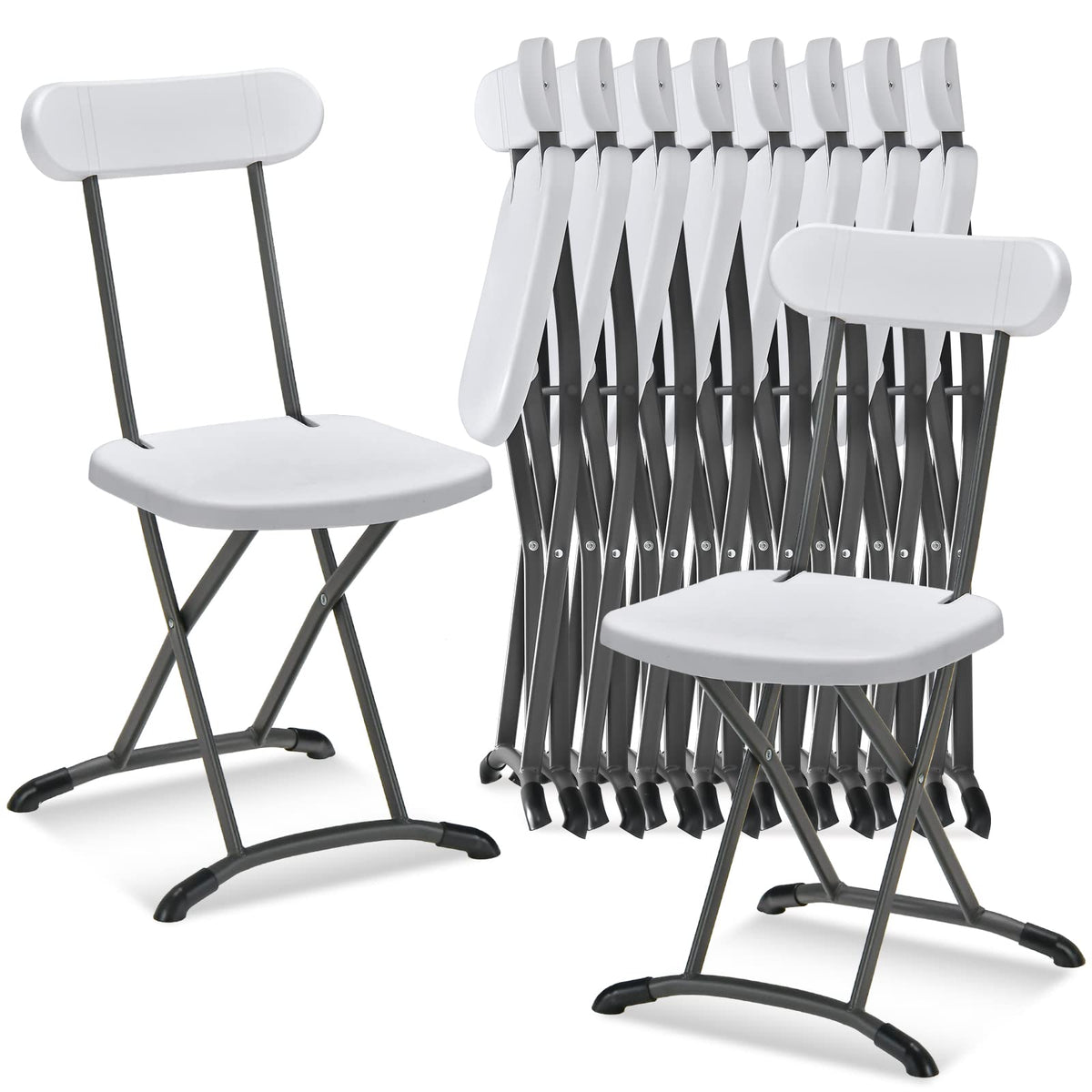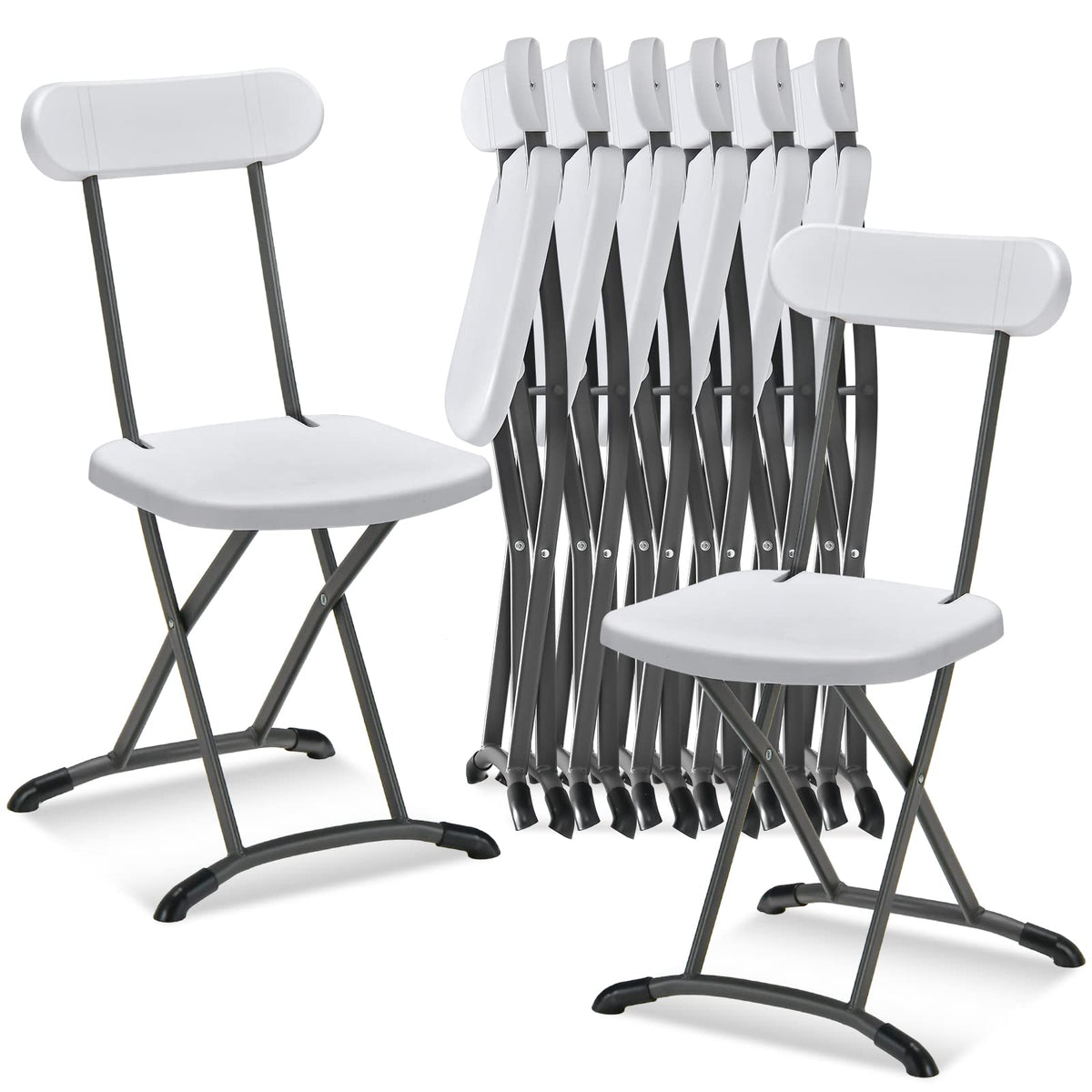 - Foldable & Portable: No assembly needed, and 1s to fold or set up, this plastic chair is super easy to use and store. You can stack the chairs together in any corners of garage or basement simply after use. Weighing 6lbs, GYMAX foldable chairs are effortless to carry and move.
