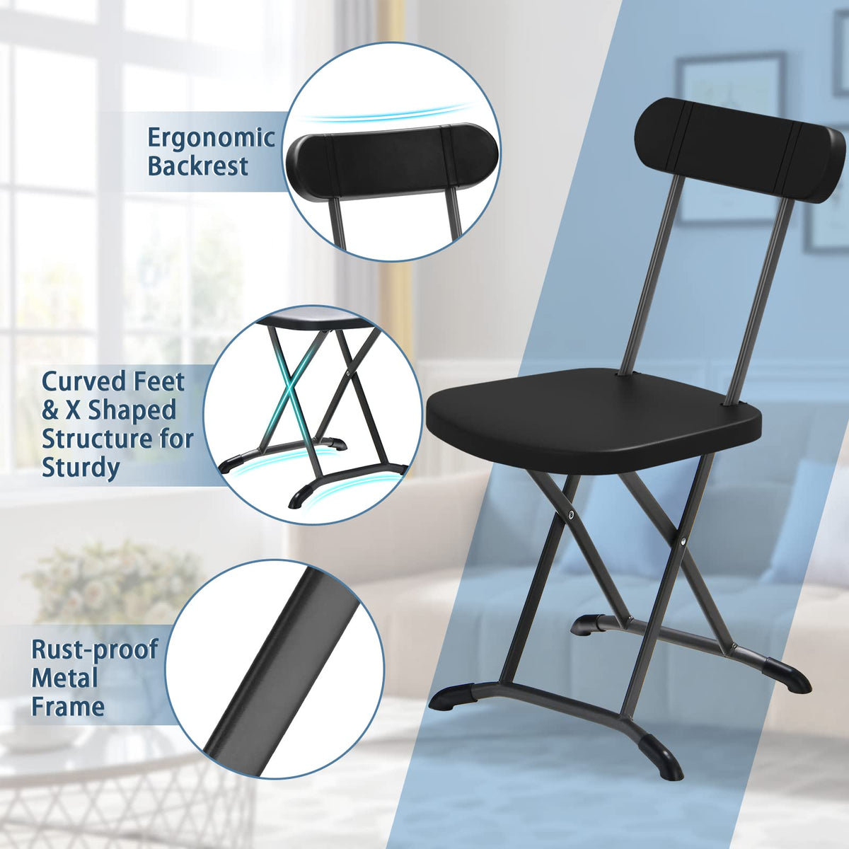 GYMAX Folding Chair, 400lbs Plastic Chairs Set with Steel Frame & Ergonomic Curved Back, Indoor & Outdoor Commercial Event Seat for Meeting