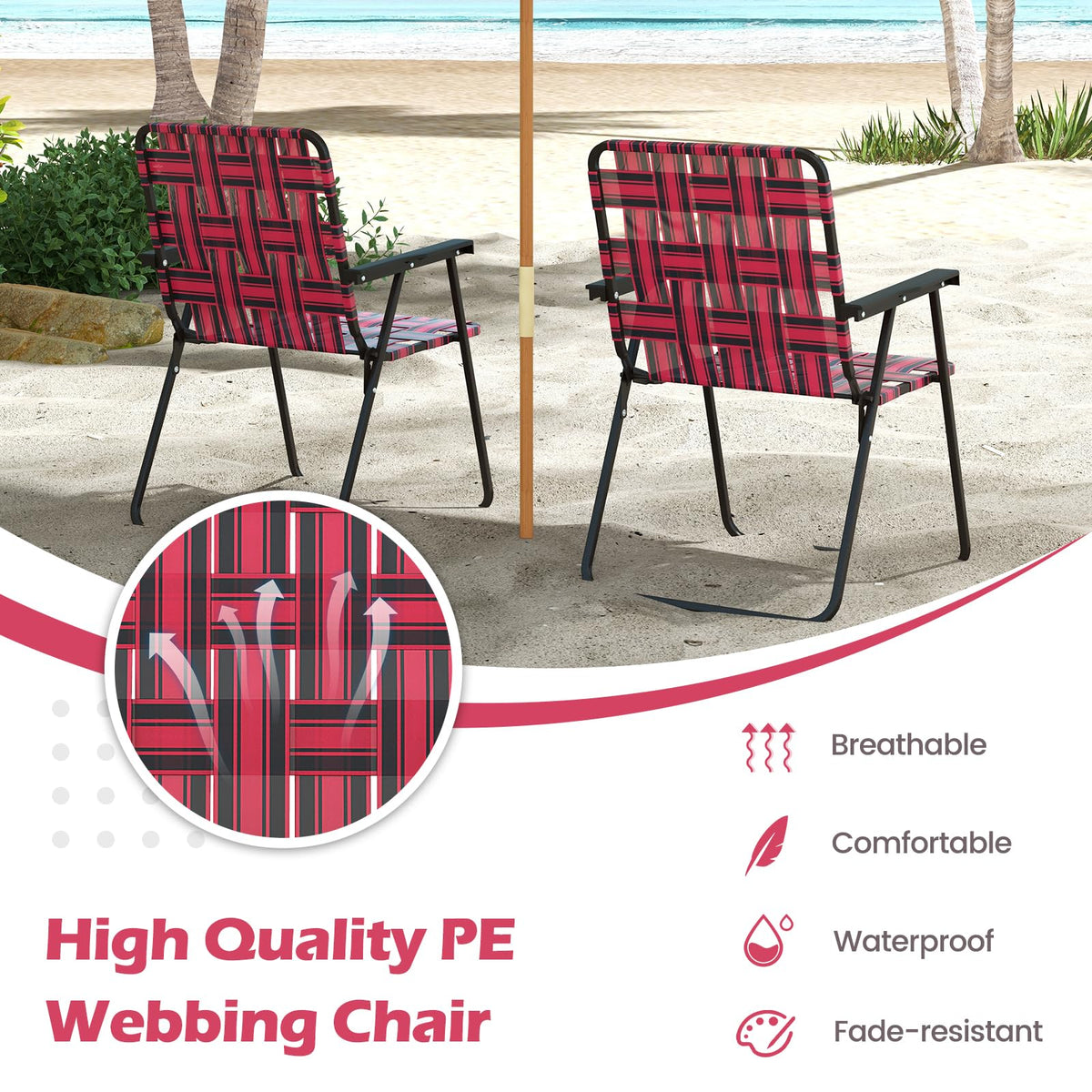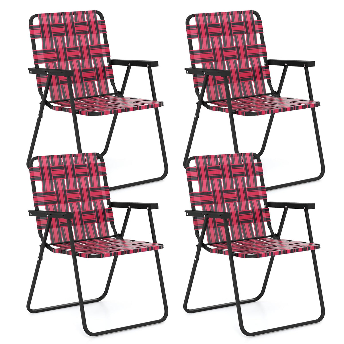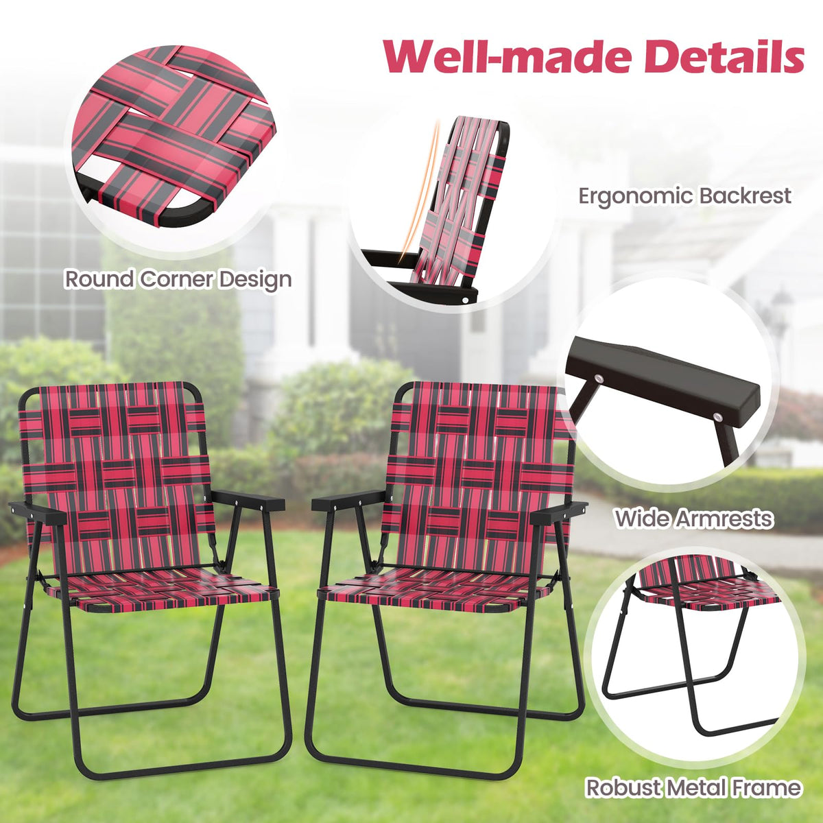 GYMAX Folding Chair, Patio Lawn Chair Set with Armrest, Indoor/Outdoor 2/4/6 Pack Webbed Lightweight Dinning Chair