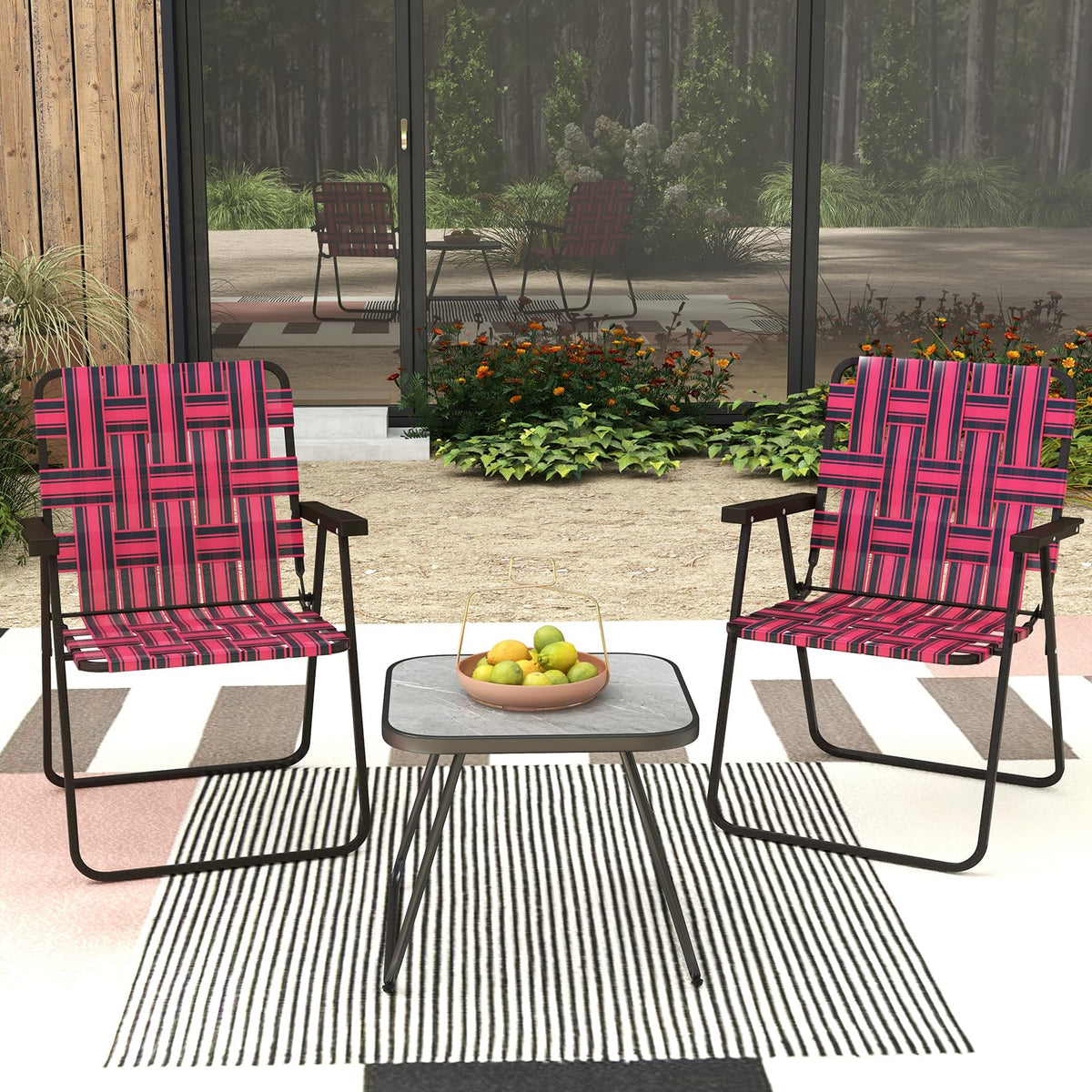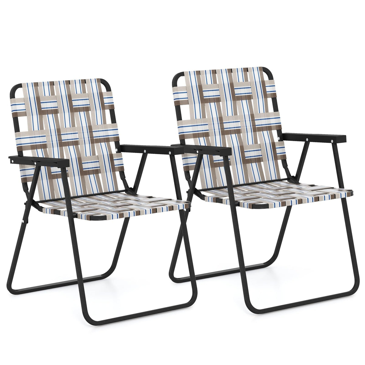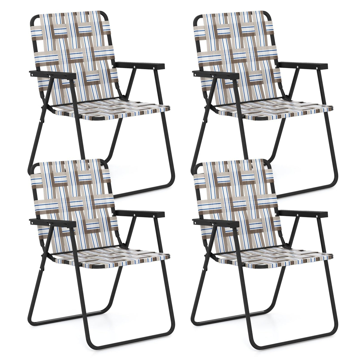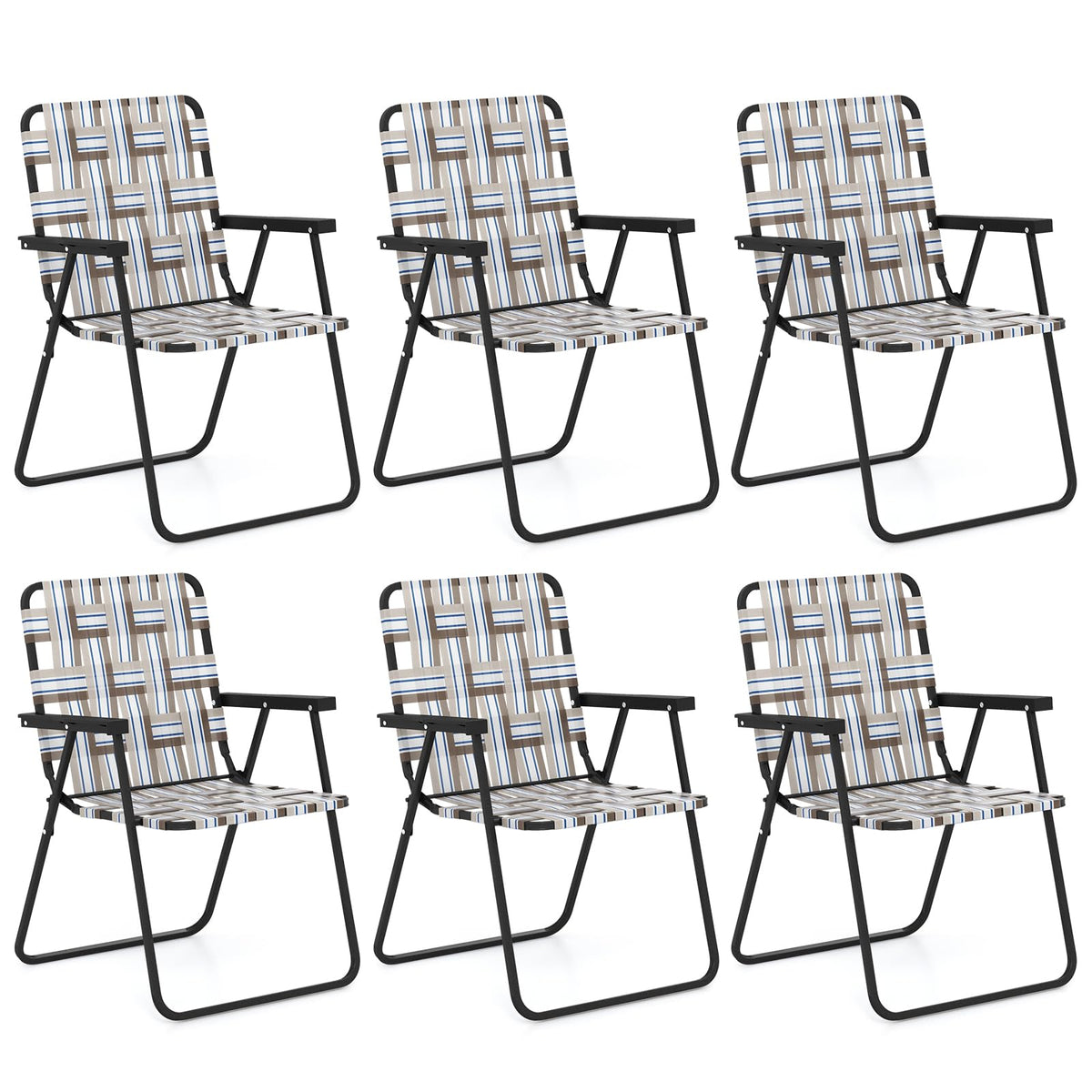 GYMAX Folding Chair, Patio Lawn Chair Set with Armrest, Indoor/Outdoor 2/4/6 Pack Webbed Lightweight Dinning Chair