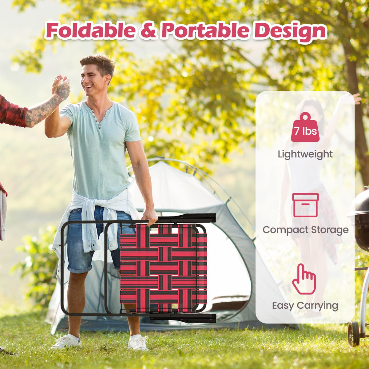 - Folding Design: The patio chair is foldable with compact footprint (29.5” x 22.5” x 3”), super easy to stack together and store in garage or basement. Moreover, 7 lbs lightweight camping chair can be hang on your wall for better space usage.