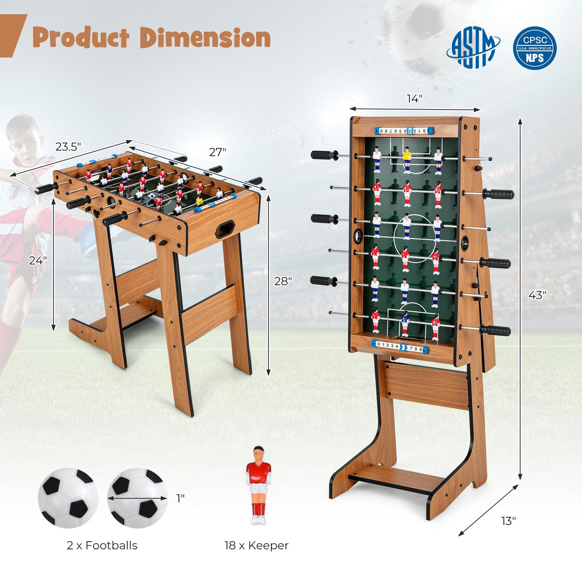 - 【Durable Material & Craftsmanship】Made of high-quality MDF board, this folding foosball table has a stable and durable frame. The round edge and reinforced connections increase safety during intense gameplay. Besides, sleek steel rods with textured handles help you control the football keepers easier.