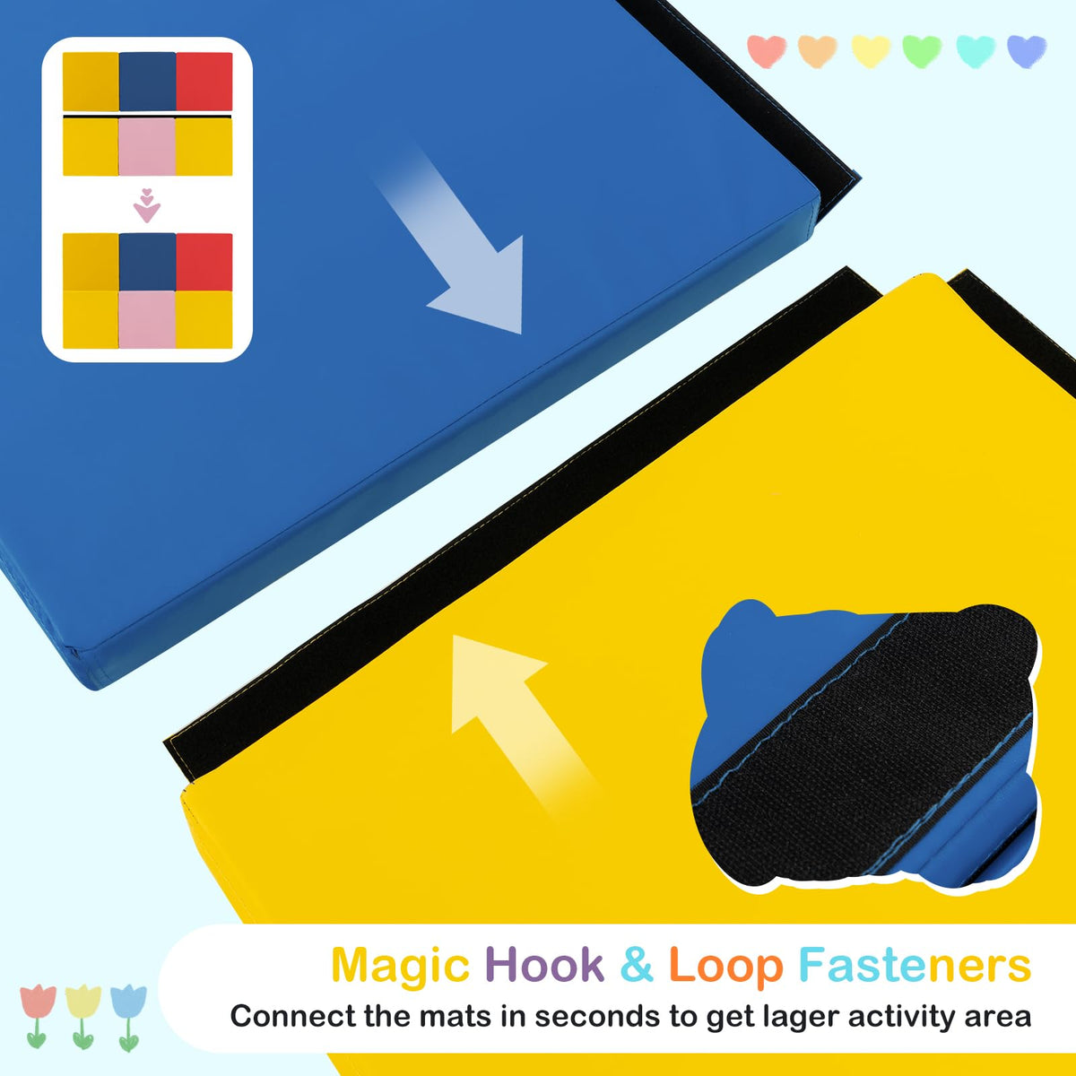 - Applicable for Versatile Sports: With dimensions of 6' x 2' x 2" (L x W x H). This versatile gym mat is suitable for home, gym or outdoor workouts, especially for kids and teens to do various physical activities. Moreover, the mat features a practical hook and loop fastener, allowing you to easily attach multiple mats together, expanding your exercise area as needed.