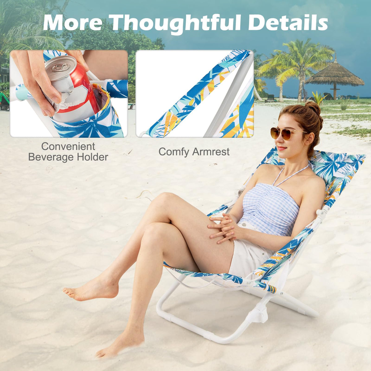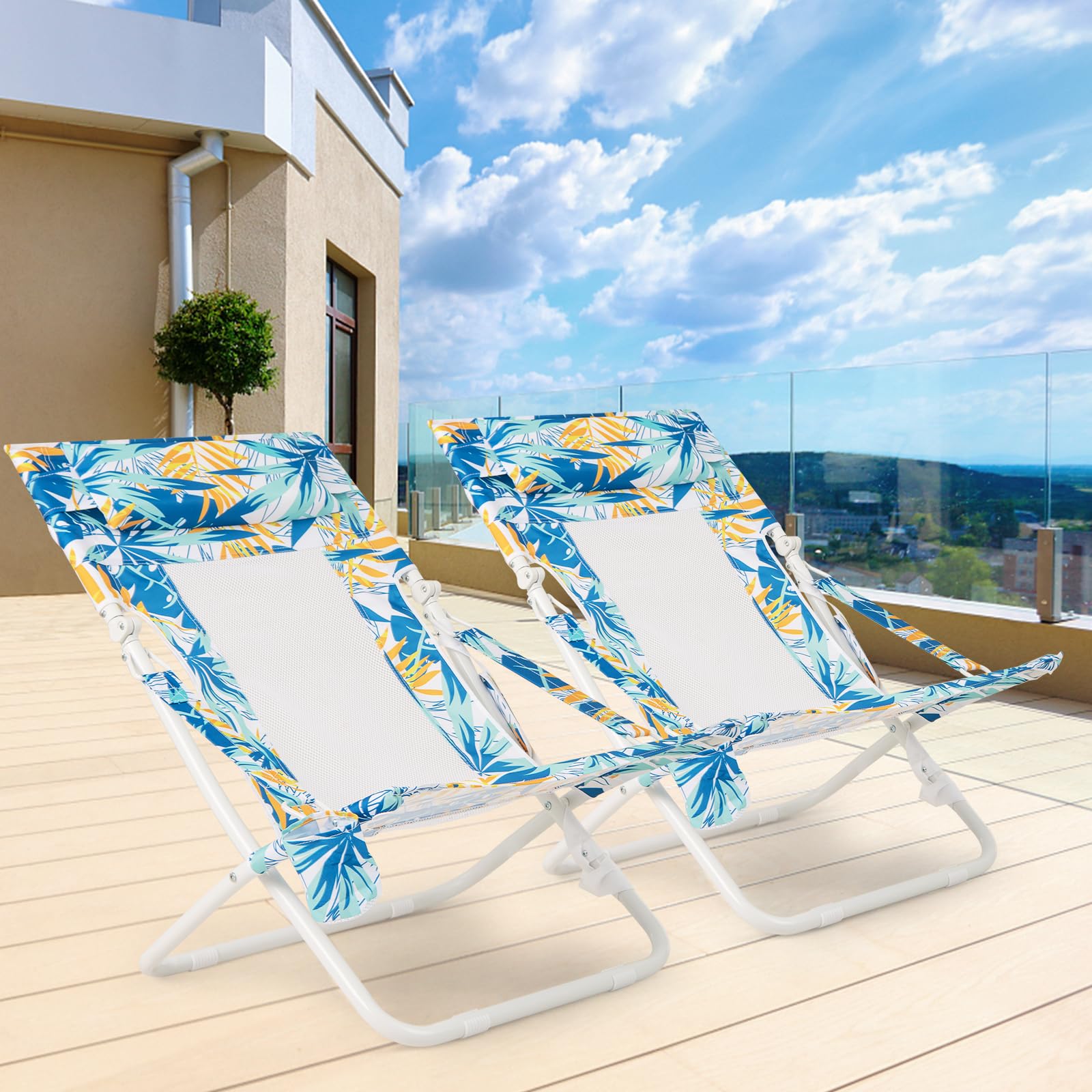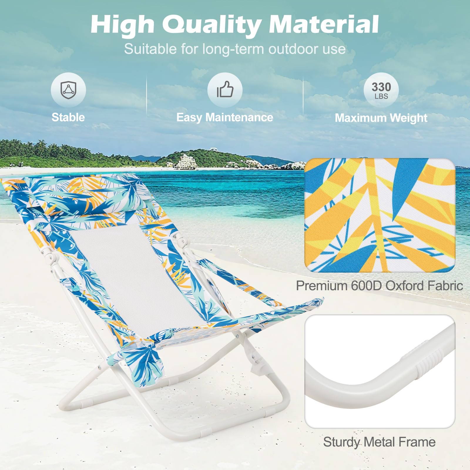 GYMAX Folding Low Beach Chair Set of 2/4 Patio Sling Chairs with Padded Head Pillow