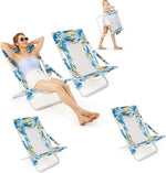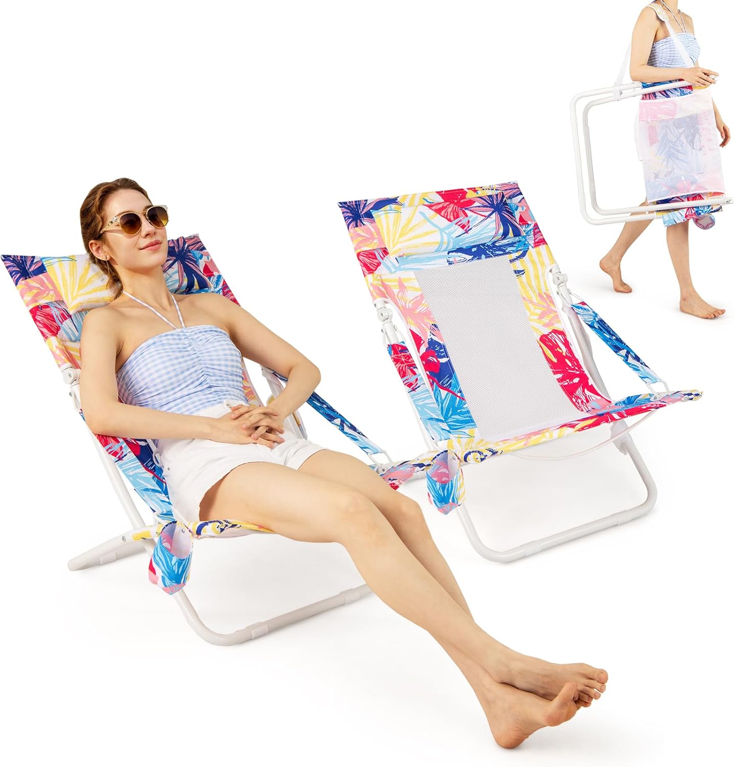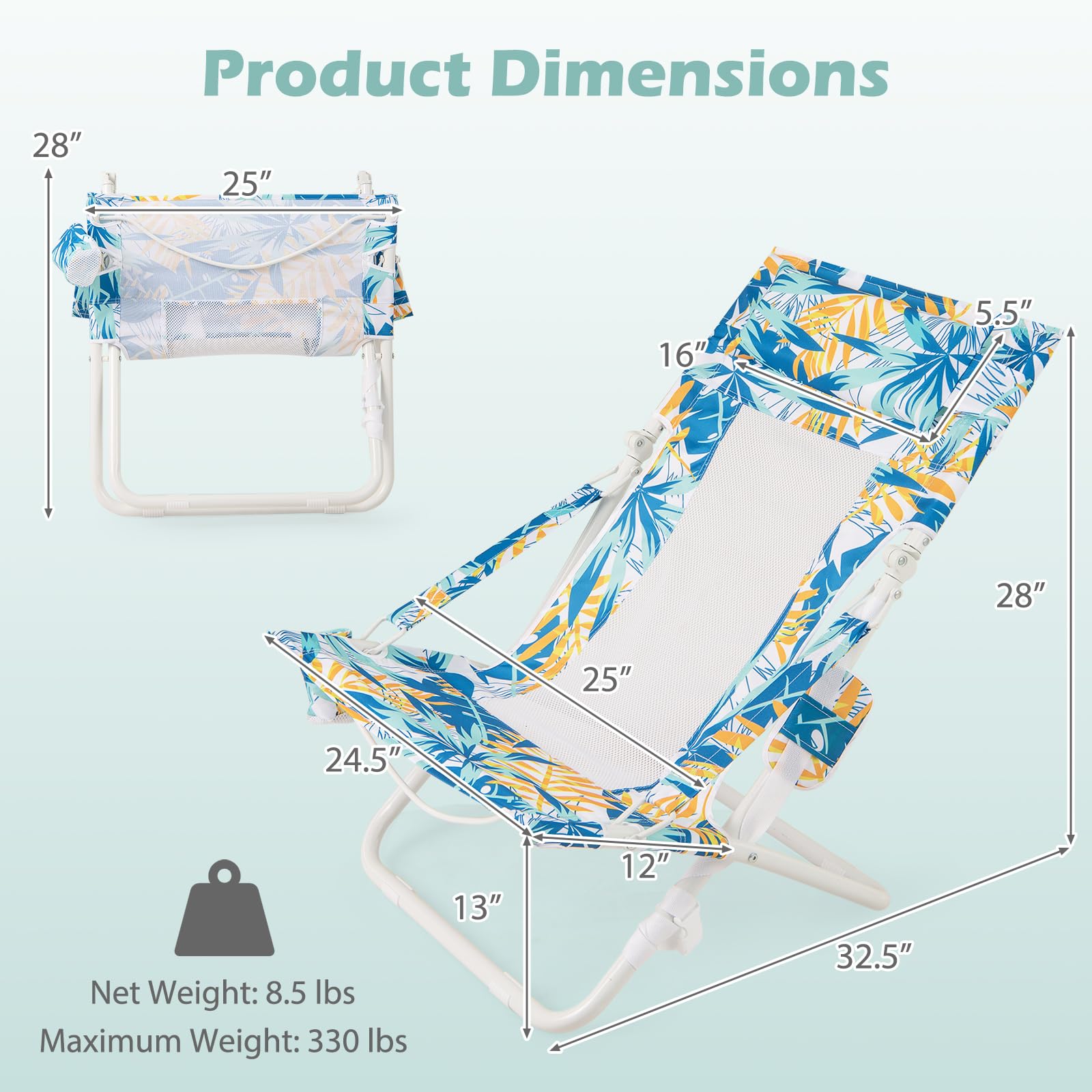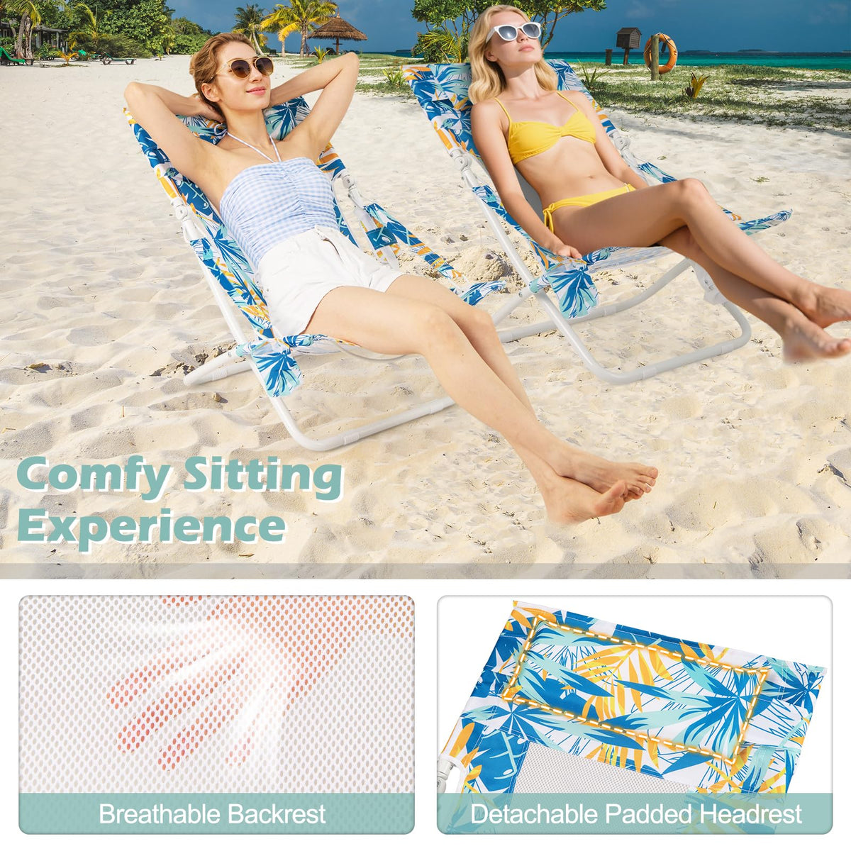 GYMAX Folding Low Beach Chair Set of 2/4 Patio Sling Chairs with Padded Head Pillow