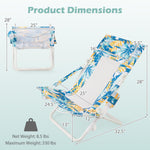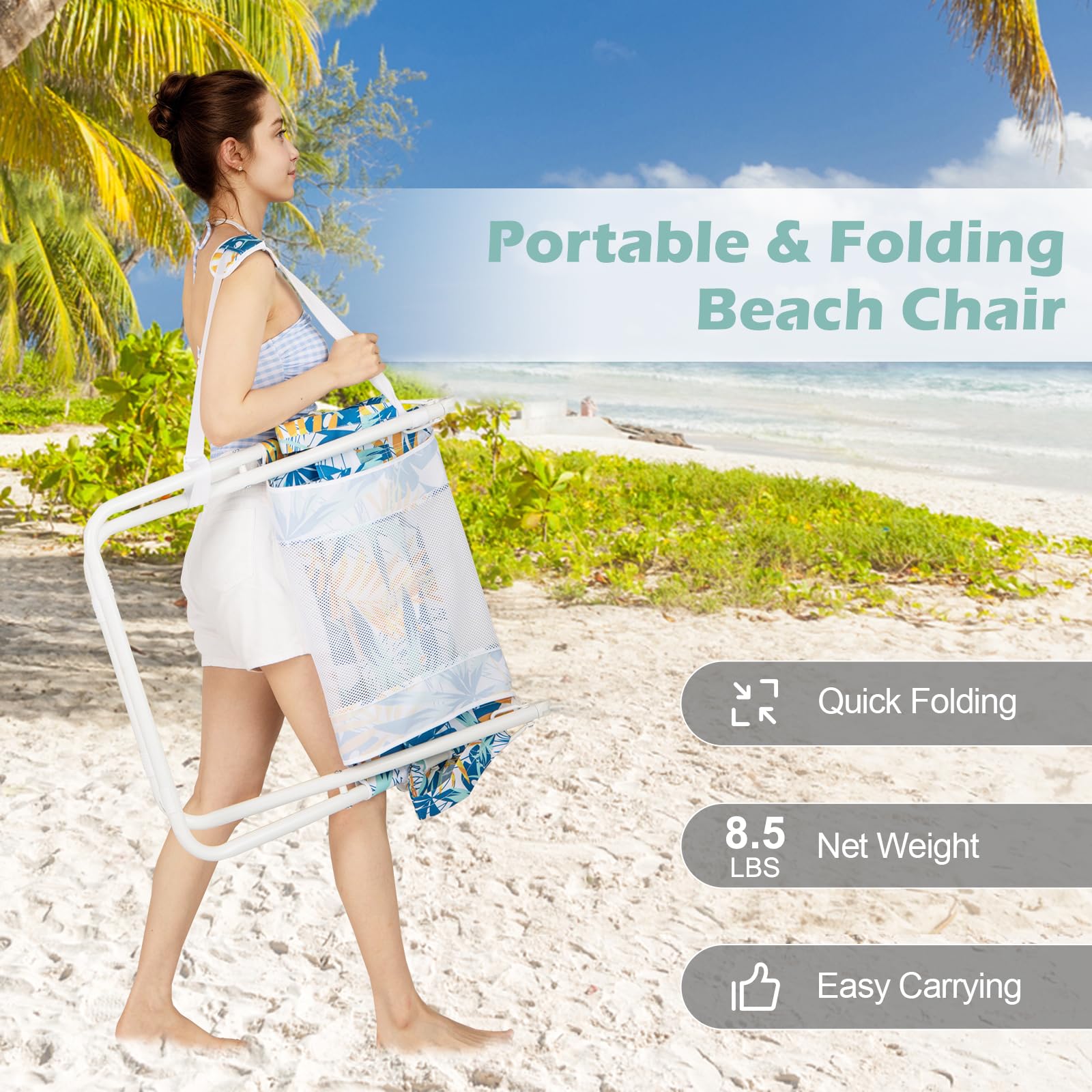 Experience ultimate relaxation with our ergonomic beach chair, designed for all-day comfort. The padded armrests and high backrest with a natural reclining angle provide sufficient support, while breathable mesh fabric keeps you cool on hot summer days. Wrapped in reliable, PU-coated 600D Oxford fabric, this chair resists wear and tear while offering a quick-drying, easy-to-clean surface. The sturdy metal frame ensures stability and features anti-slip foot pads to prevent sinking into soft ground. Weighing less to 8.5 lbs, the compact lounge chair with carry strap is effortless to shoulder. Complete with a convenient cup holder, this versatile chair is perfect for beach trips, poolside lounging, patio relaxation, or backyard gatherings.