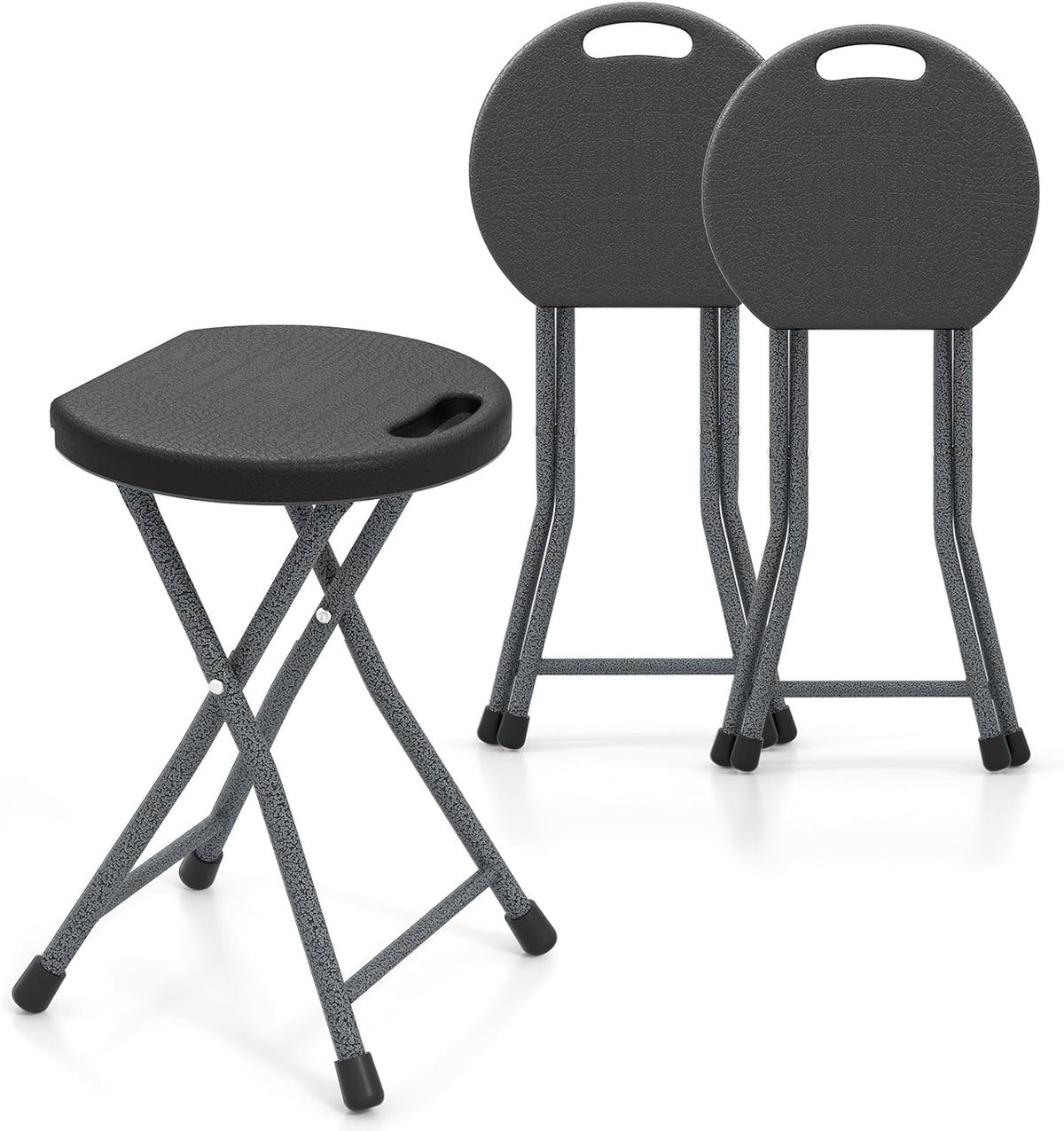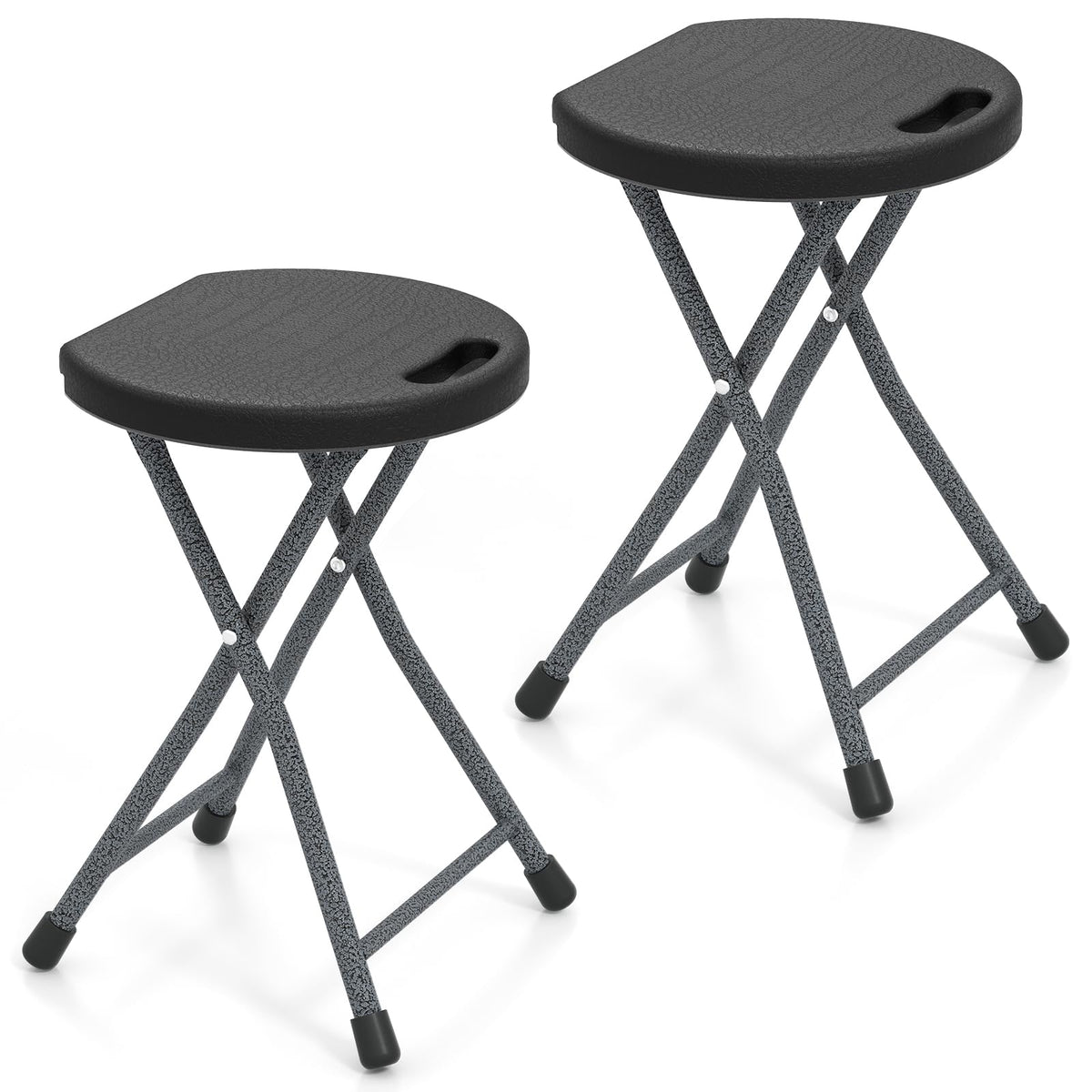 GYMAX Folding Stool, 18in Portable Collapsible Bar Stool with Handle & Steel Frame
