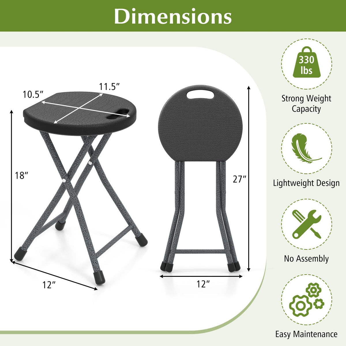 - 【No Installation Needed】This high stool requires no assembly before using, and you could enjoy comfortable sitting once open the package. Measuring 12" x 12" x 18", GYMAX folding stools are perfect for kitchen or home/pub bars.