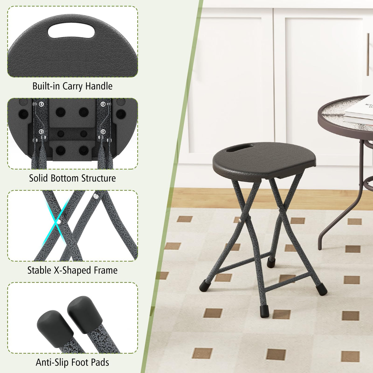 - 【Sturdy & Stable】Made of high quality steel, this foldable stool for adults is heavy duty, holding up to 330lbs. Reinforced bars improve overall stability, and padded foot protect your floor and avoid slipping.