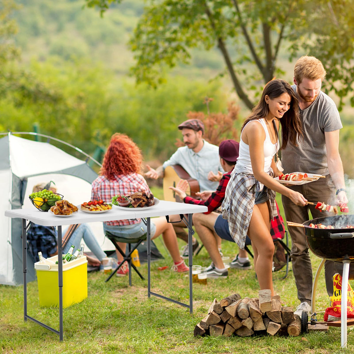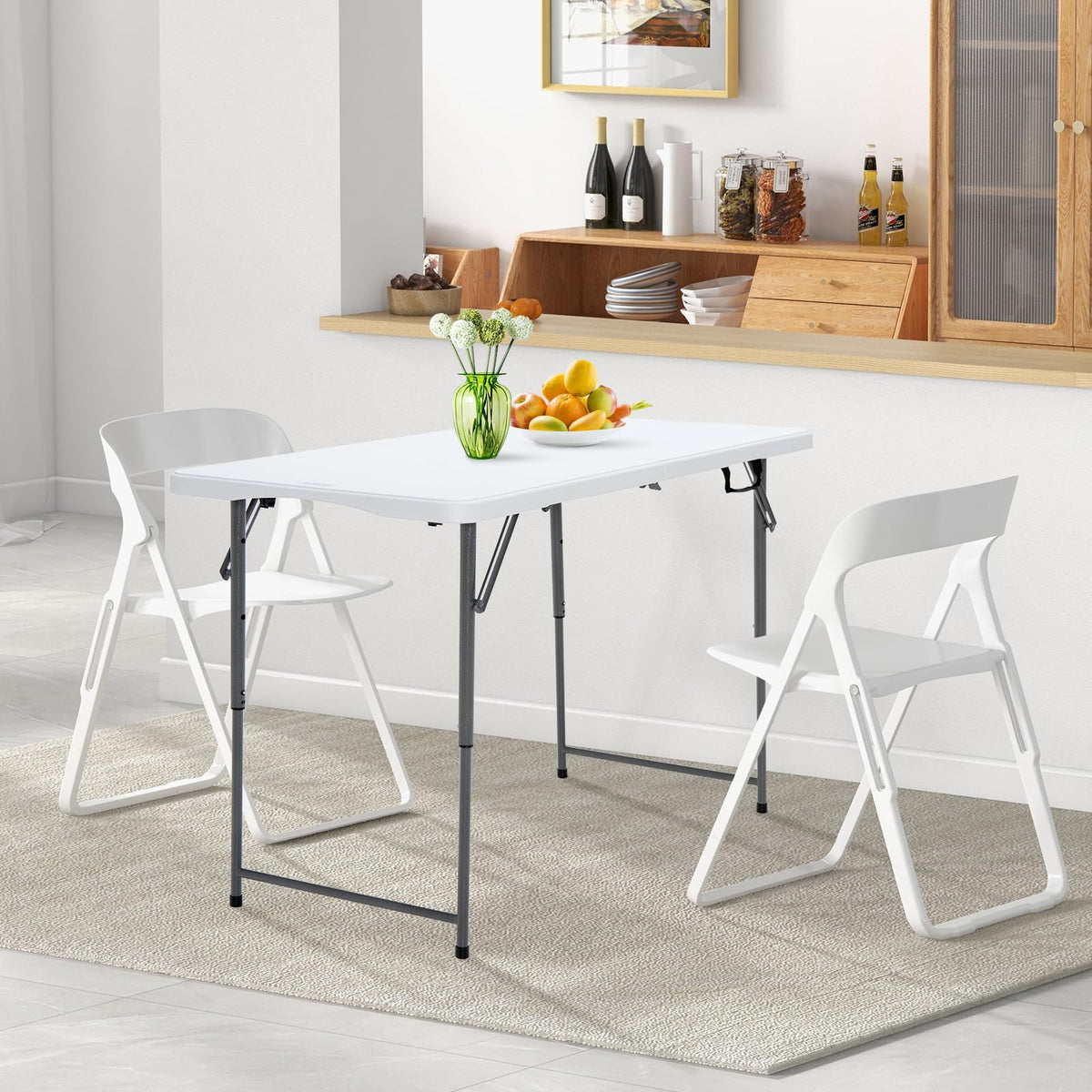 GYMAX Folding Table, 4FT Portable Plastic Picnic Table with 3 Adjustable Height & Handle, Fold-in-Half 330LBS Heavy Duty Foldable Table for Indoor Outdoor Party