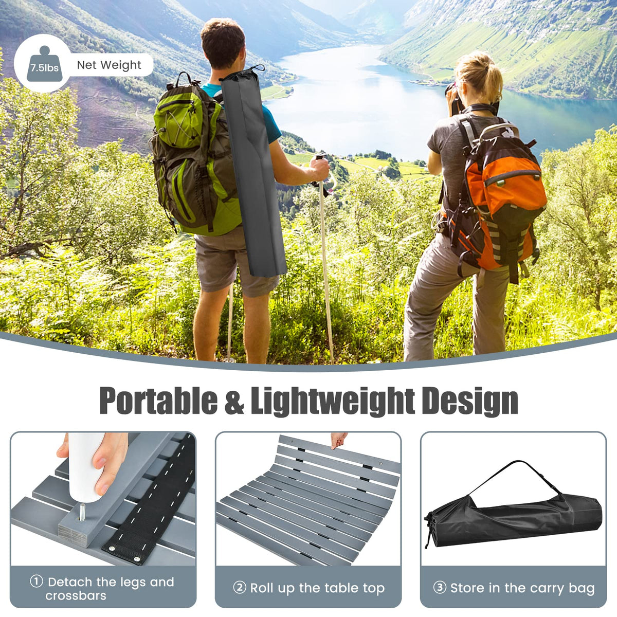- Lightweight for Portability: Weighing just 7.5 pounds, the portable camping table can be taken anywhere you want. You can carry the small light table on your back for picnics, camping, hiking or put it in the trunk of your car. You can also use the ultralight table at home, such as patio, garden, backyard, living room and bedroom.