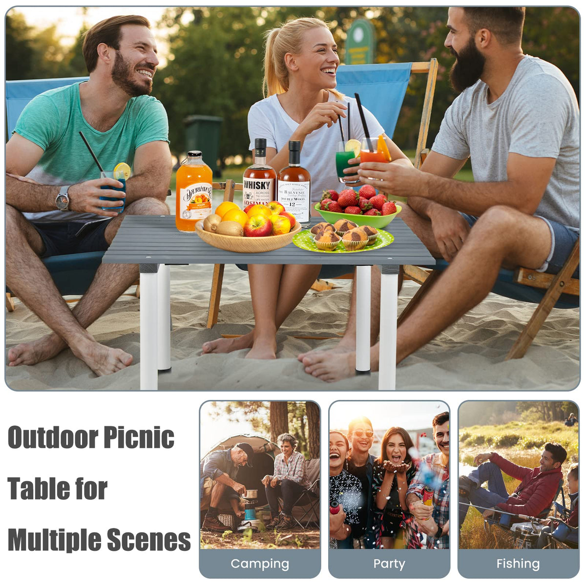 - Roll-Up Tabletop: Featuring a roll-up tabletop, the foldable camping table can be folded to a compact size in a carry bag when not in use. The outdoor folding table comes with a 27" x 27" tabletop, which is sufficient for 4 people to enjoy favorite snacks and board games.