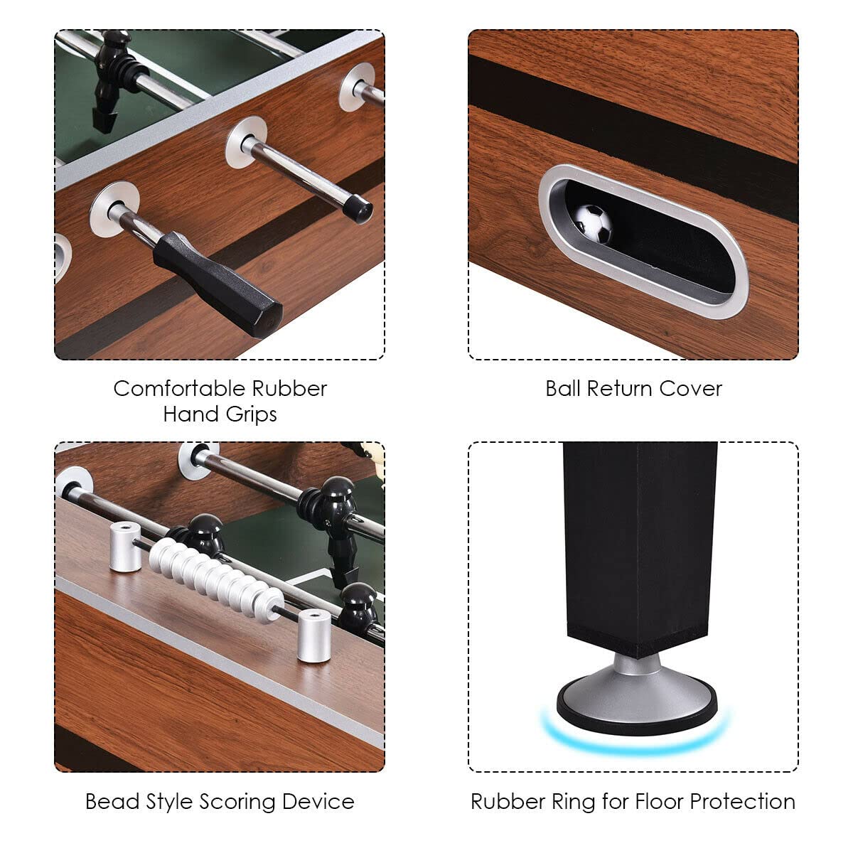 - Solid Structure: Constructed with high quality MDF and oversized leg levelers to keep the game table firm and stable. Rust-proof strong steel rods with slide bearings for smooth rotation.
