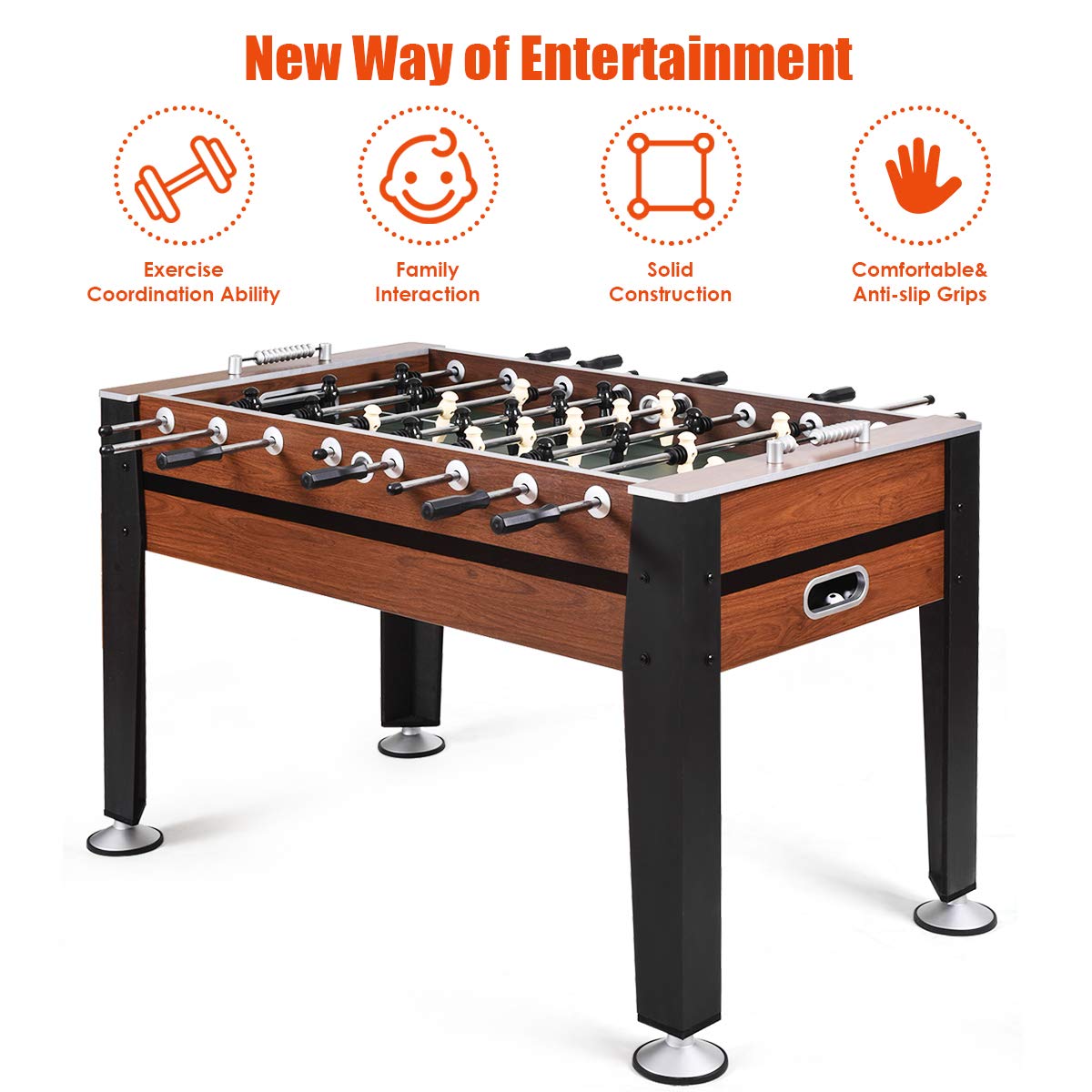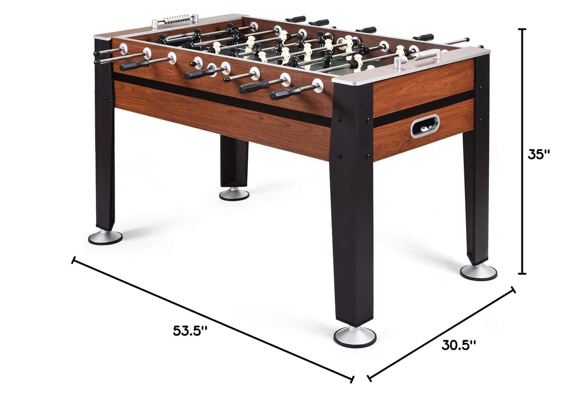 - Entertaining and Fits Various Occasions: Suitable for indoor entertainments between family, friends and colleagues, sure to keep your friends entertained for hours on end. This game table measures 54" and comes with two foosballs.