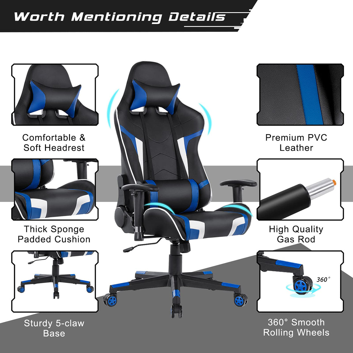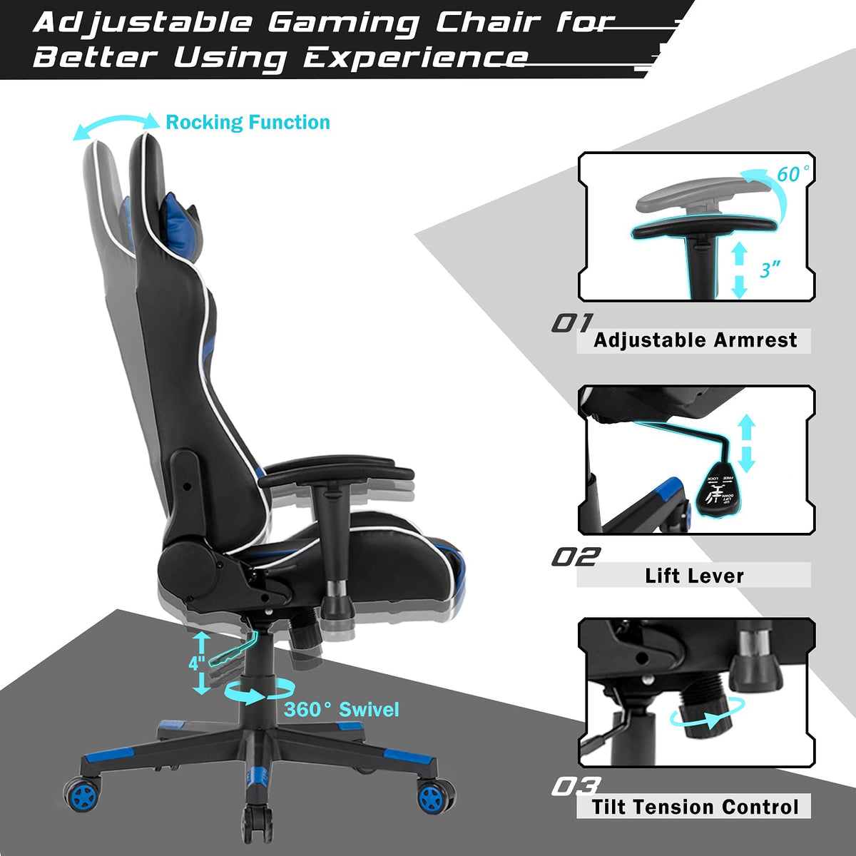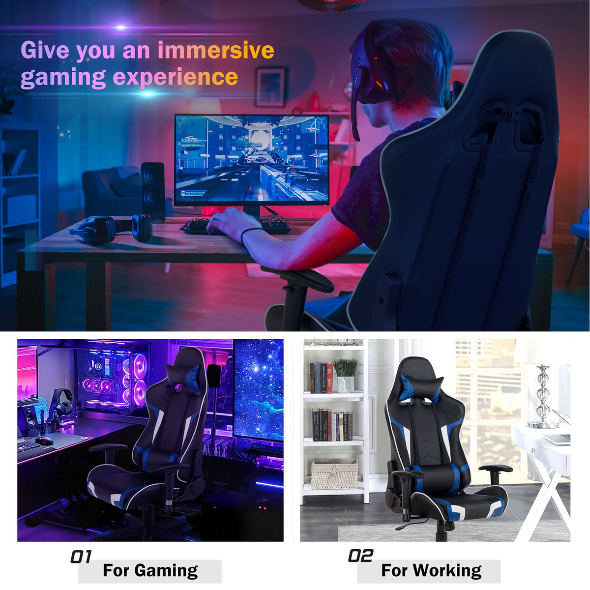 - Stylish & Versatile Design: This gaming chair features a racing style and chic appearance, making it a perfect addition to your gaming room. What's more, this ergonomic chair will upgrade your gaming experience, and you can also use it for the office, media room or living room to meet all the needs for studying, working or daily leisure.