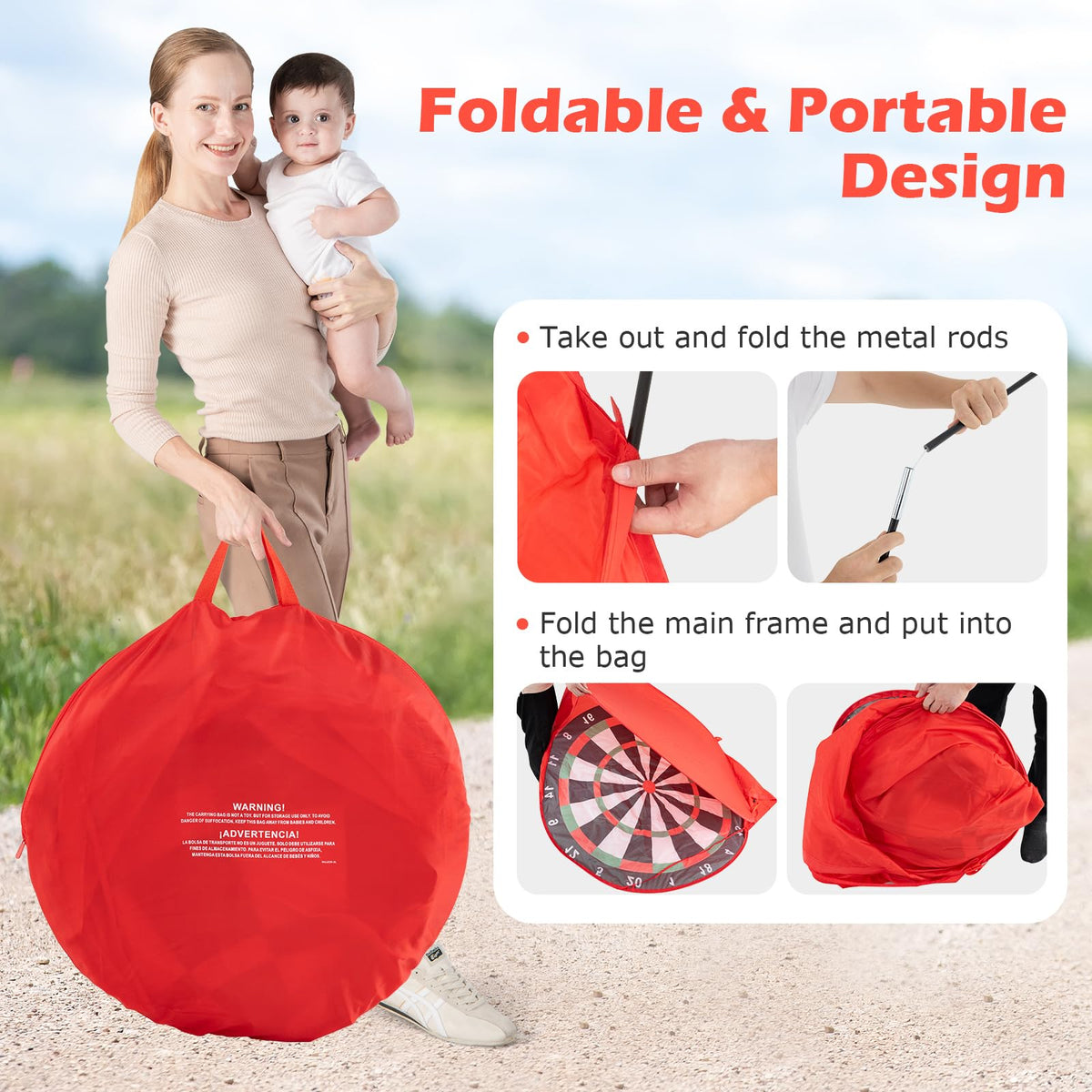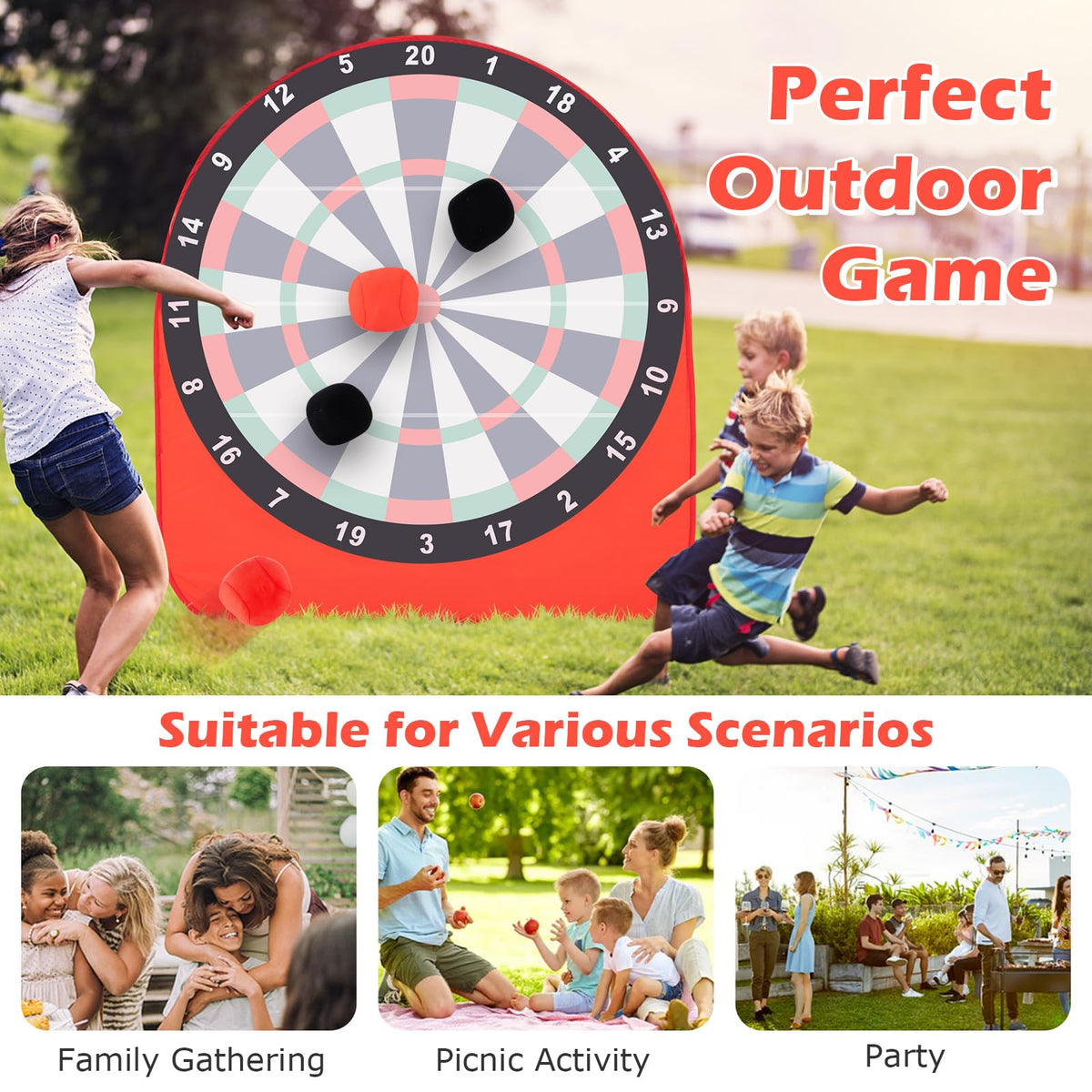 - Perfect Outdoor Game: Different from other wall-mounted dart games, this freestanding dart board can be placed anywhere on the ground. It is Ideal for various scenarios like family gatherings, picnics, parties, or other activities.