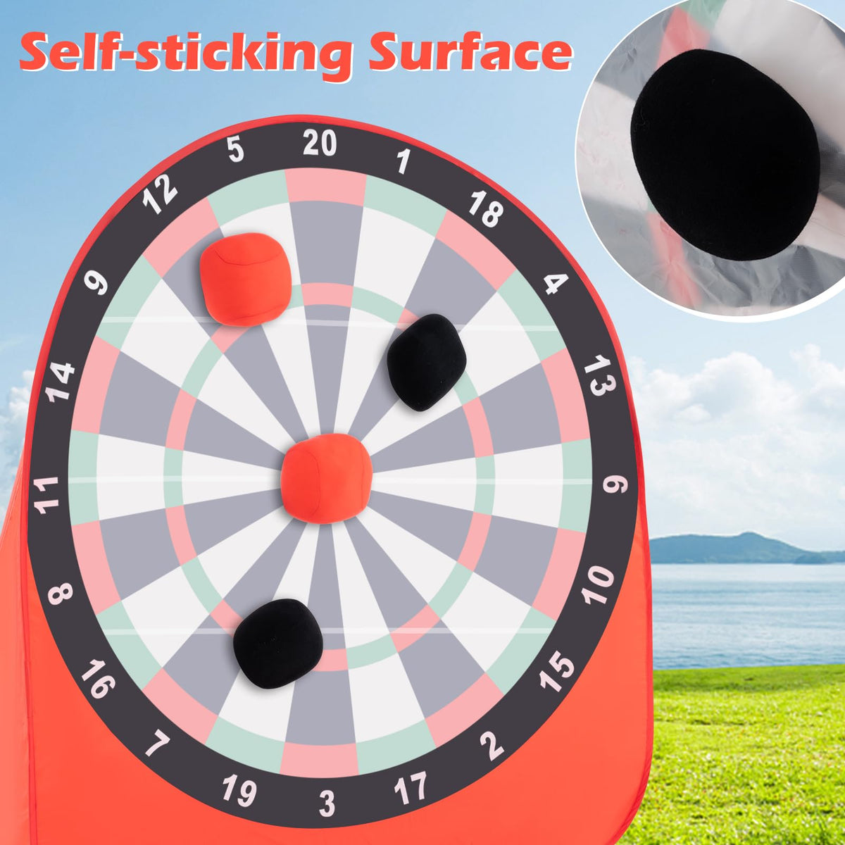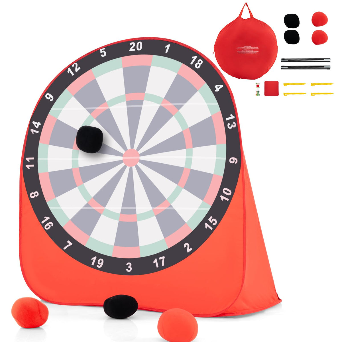 - Premium Material & Stable Frame: Crafted from premium oxford cloth with exquisite stitching, this giant dartboard is built to last. Besides, it also comes with sturdy fiberglass poles and wide ground sheet to ensure a safe and reliable gameplay.