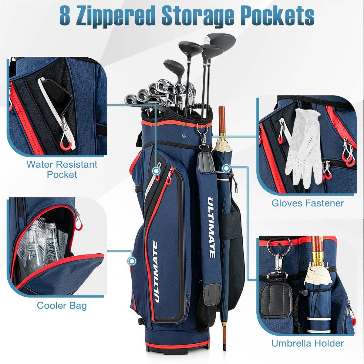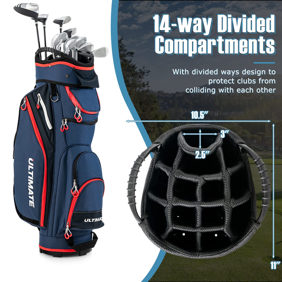 GYMAX Golf Bag, 14 Way Divider Golf Cart Bag with Rain Hood & Cooler Bag