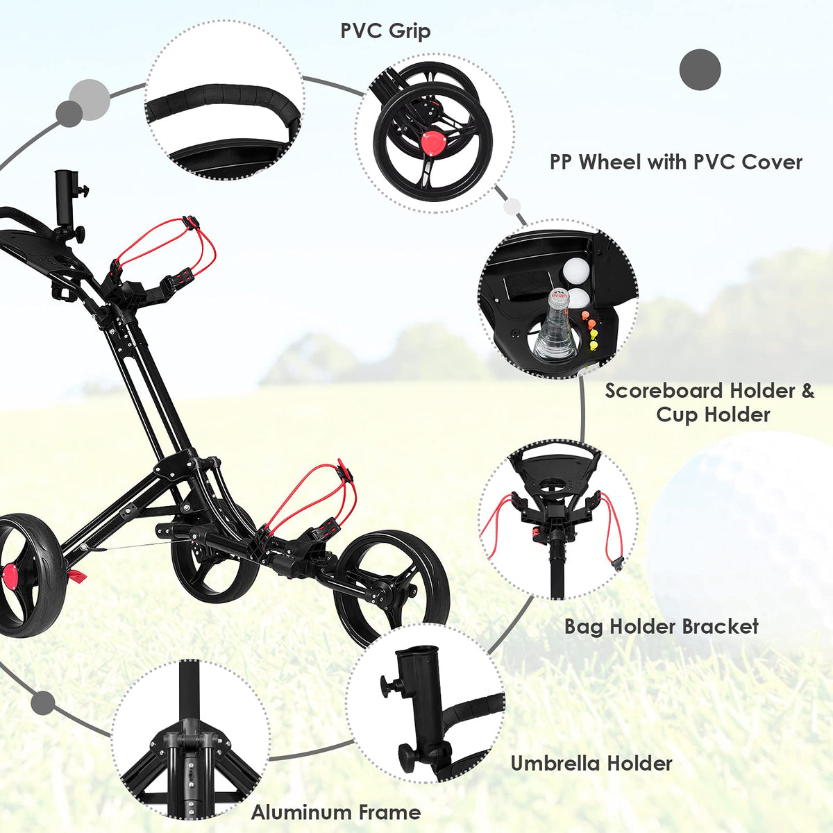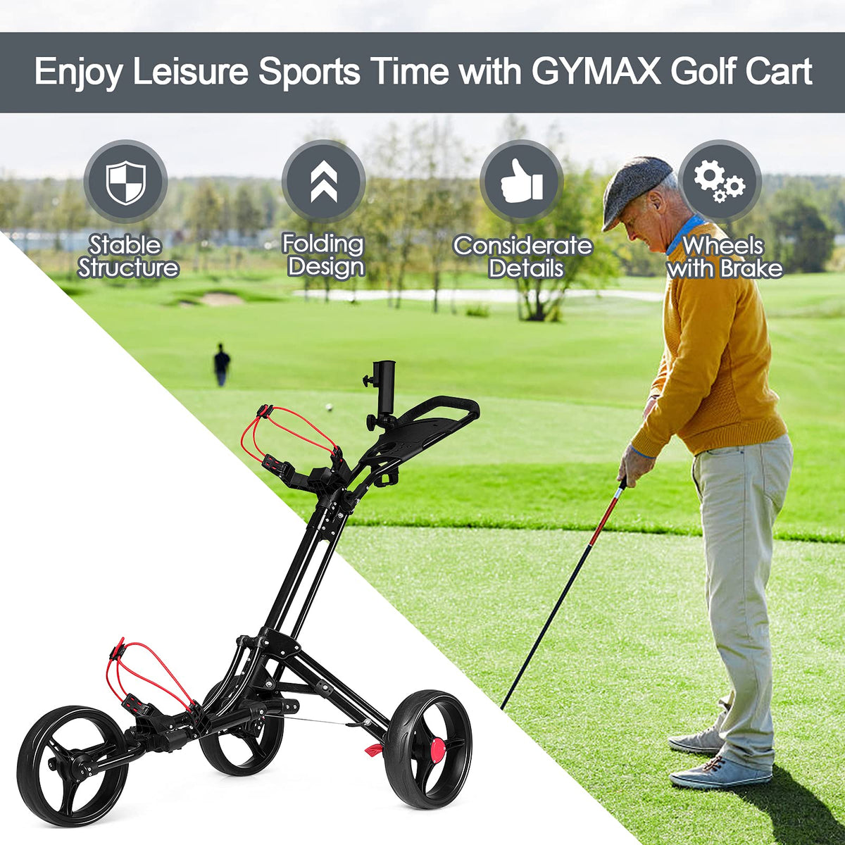 GYMAX Golf Cart, 3 Wheels Foldable Golf Trolley with Umbrella and Tee Holder