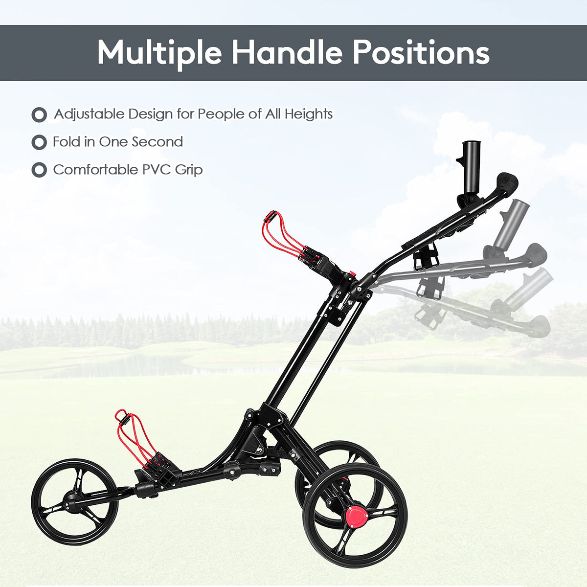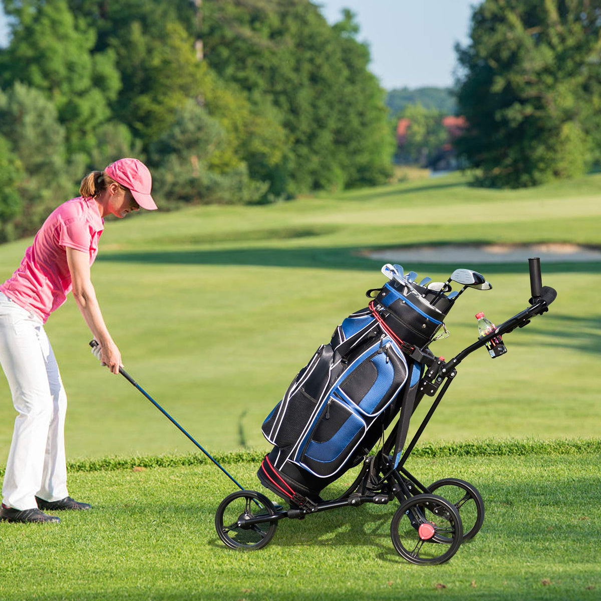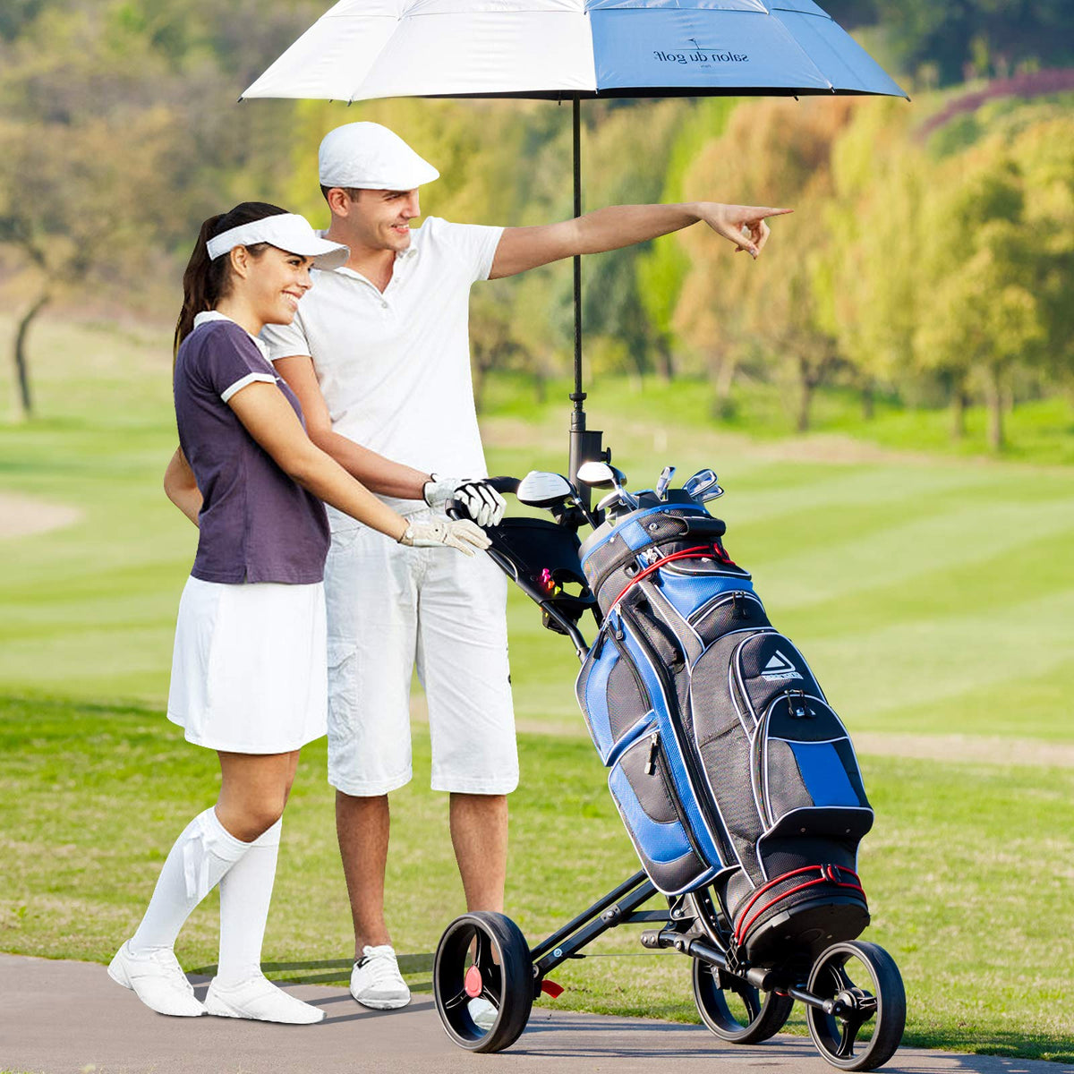 - 【Sturdy & Lightweight Golf Cart】Sturdy frame is made of aluminum, which is lightweight but also solid. Weigh less to 17lbs, the golf cart comes with high load capacity, providing a durable use experience. With EVA covered Wheels, GYMAX golf cart is perfect for balance and traction on all types of surface.