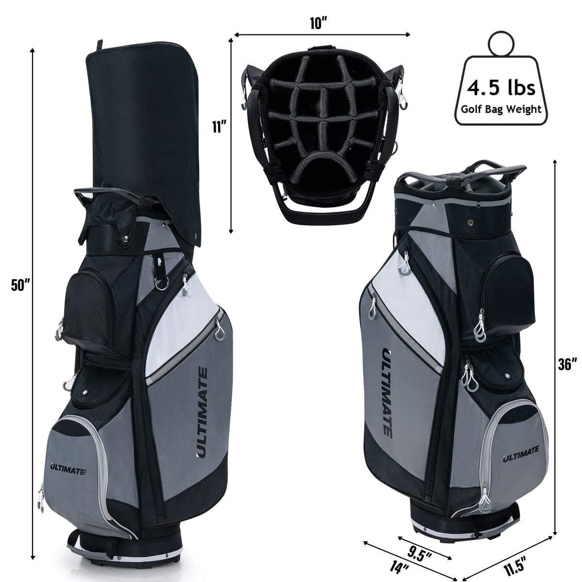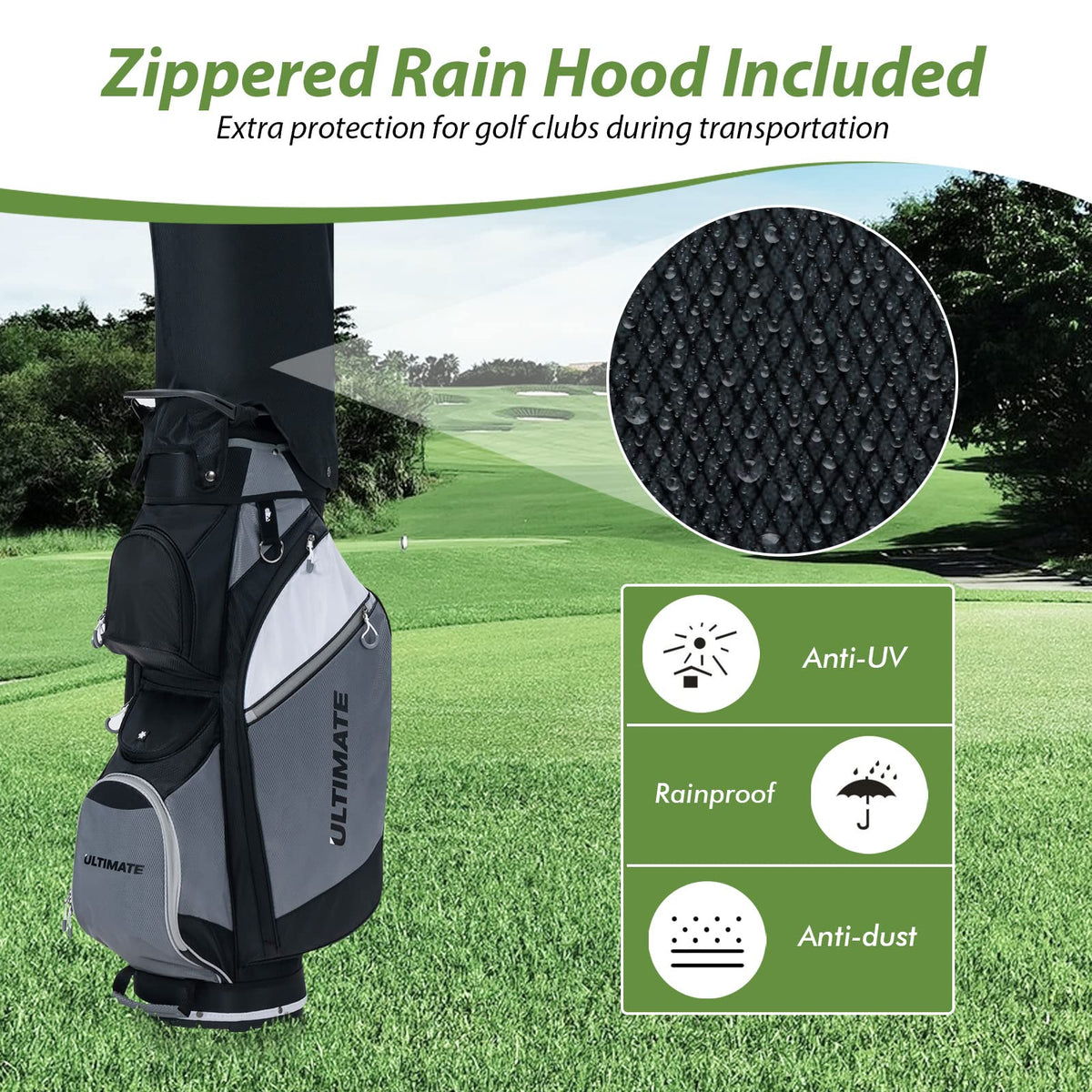 GYMAX Golf Cart Bag, 14 Way Golf Club Bag with Rain Hood, Portable Lightweight Golf Bag with Shoulder Strap & Carry Handle