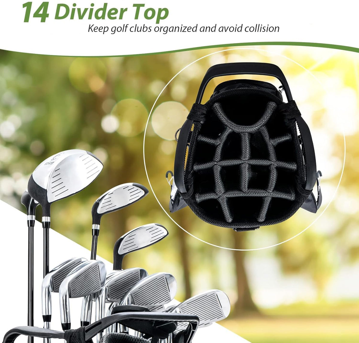 - 14-Way Top: Featuring 14 way dividers, including oversized putter wells, GYMAX golf bag holds all your clubs to keep them well organized. Our padded dividers will provide better protection to prevent clubs from collision or damage.