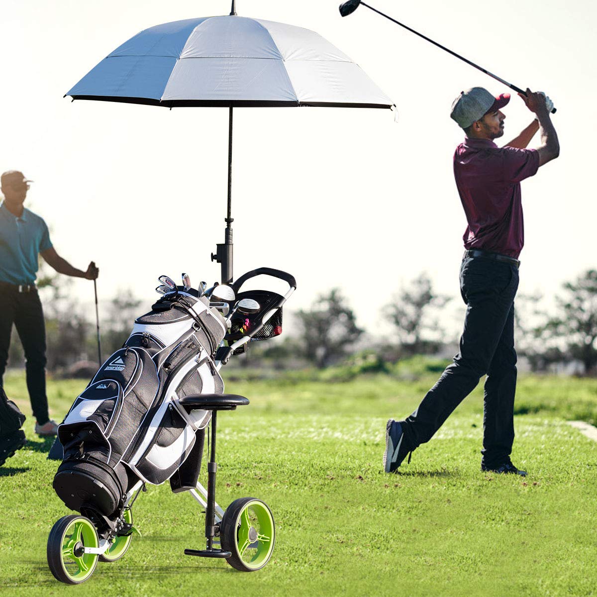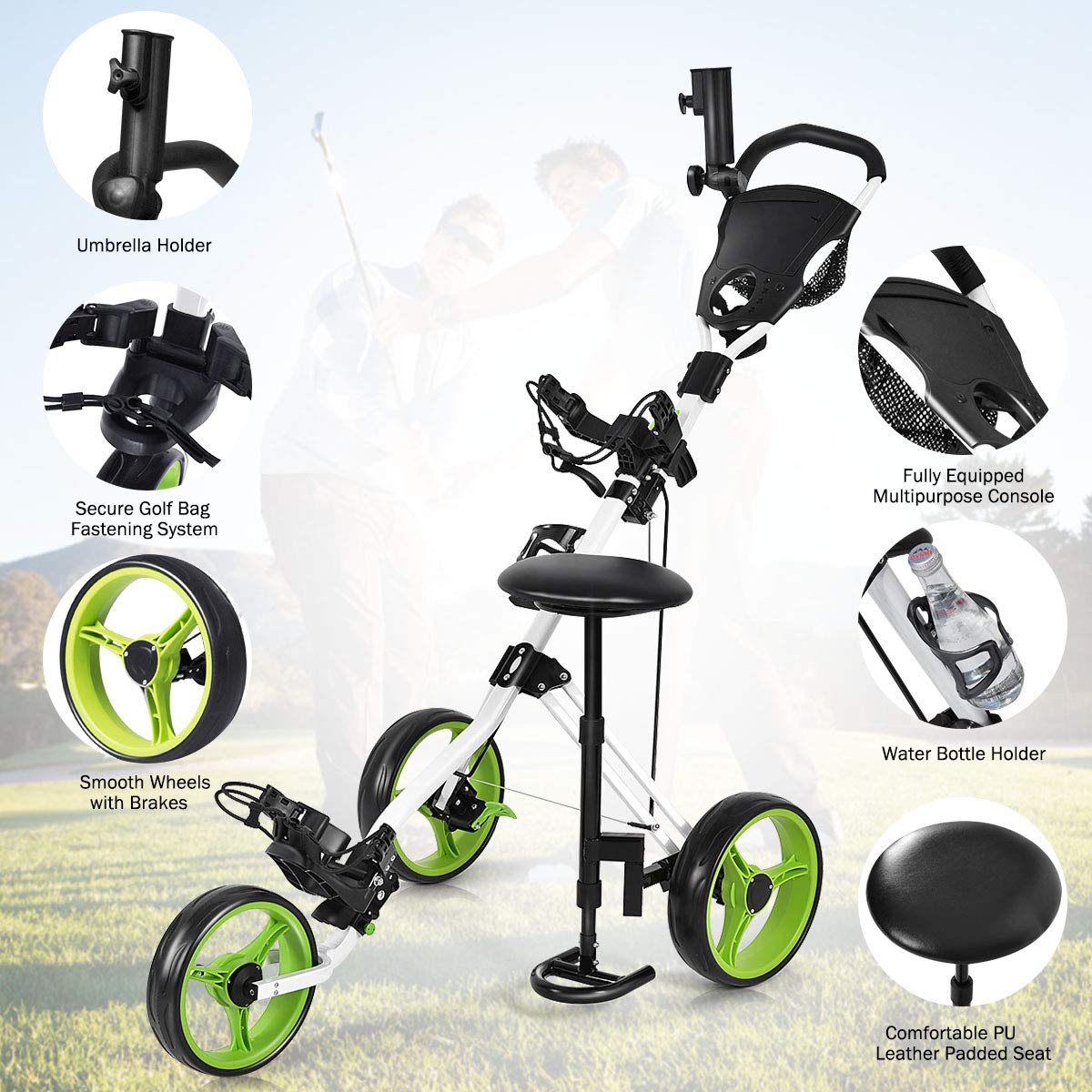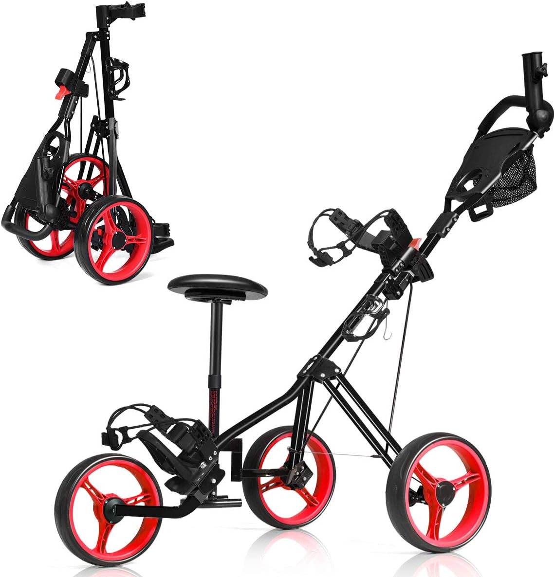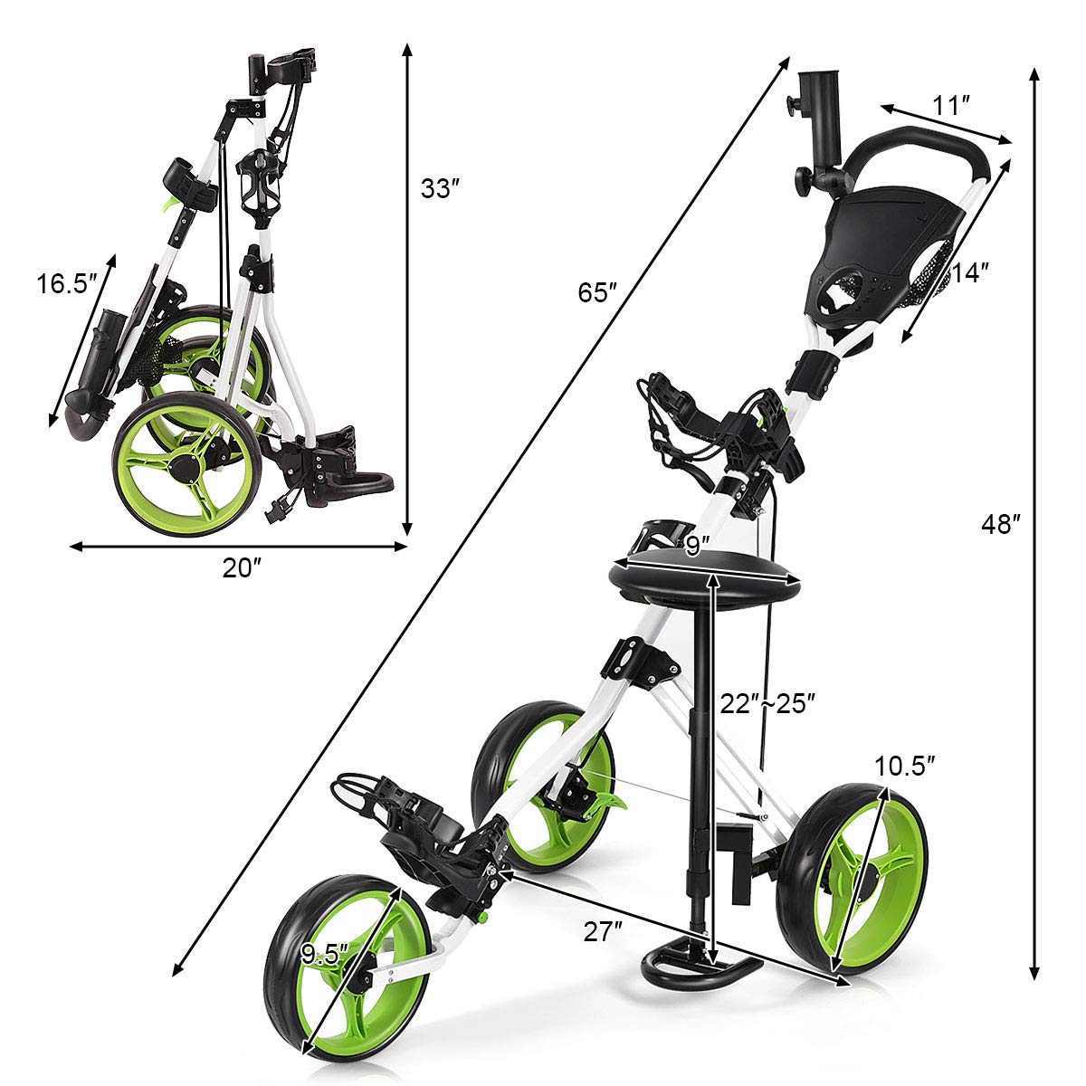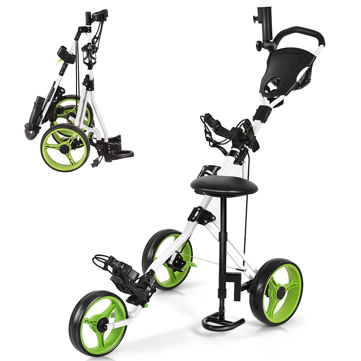 - 【Folding Design for More Convenience】GYMAX 3-wheel golf cart is easy to set up or fold up, making it easy to take away. Lightweight cart with 3 removable wheels offers you more convenience for carrying or storage.