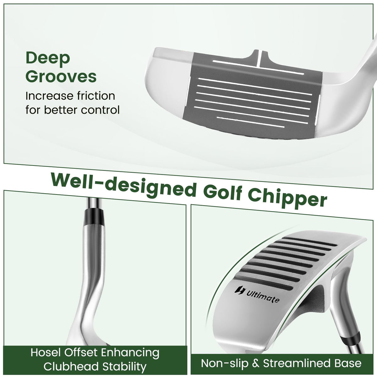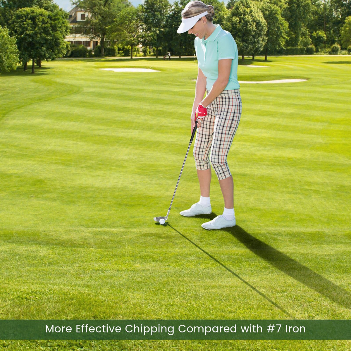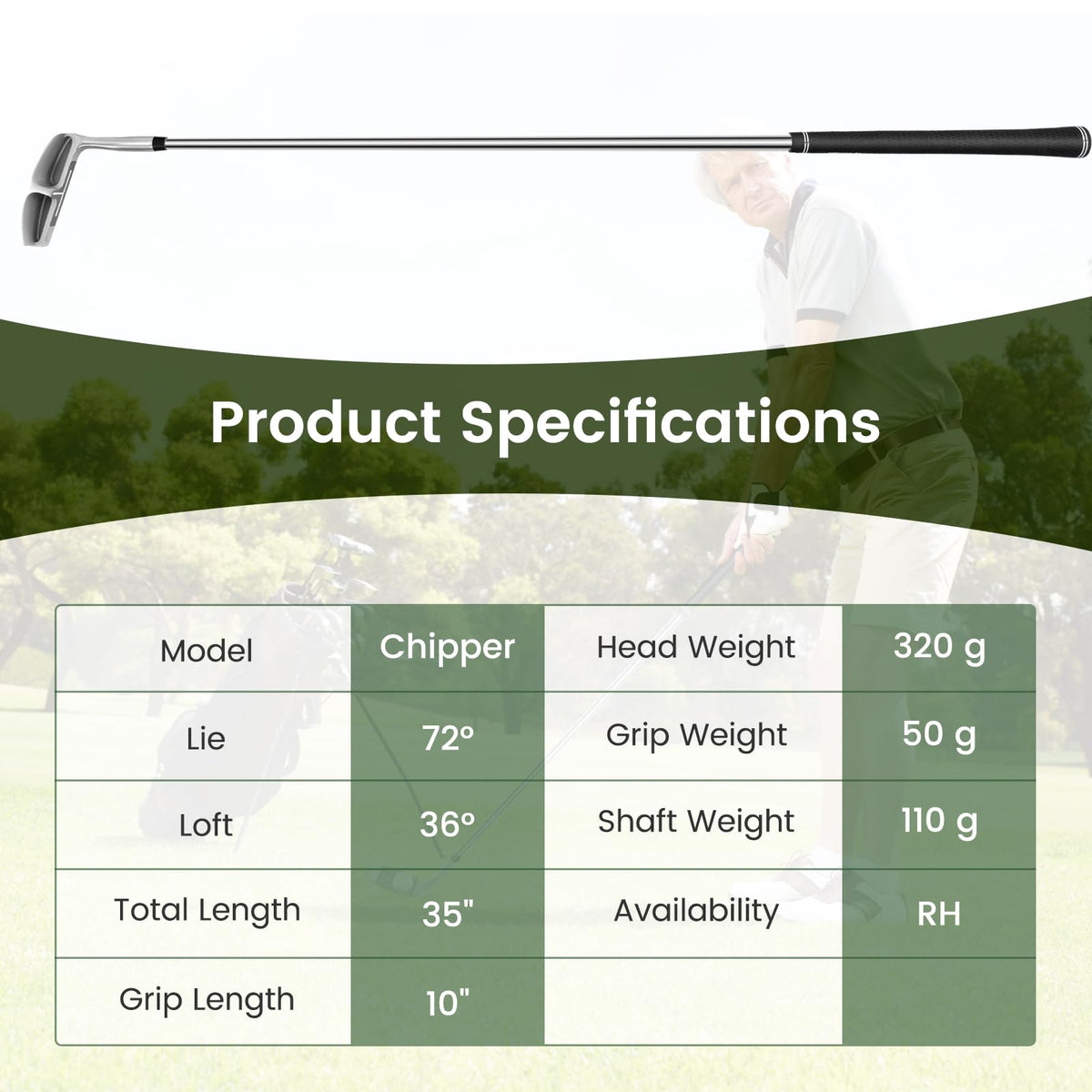With this right-handed pitching and chipping wedge, it's perfect for both men and women looking to cut strokes from their short game. The stainless steel head of this chipper is not only durable, but it also features alignment lines that aid in achieving a more accurate shot. The 36 degree loft provides the ideal trajectory for those tricky shots, helping you achieve the perfect distance and avoid unnecessary strokes. Besides, with the lower center of gravity design, 35" putter-like length and anti-slip rubber grip, you can chip the ball easily.