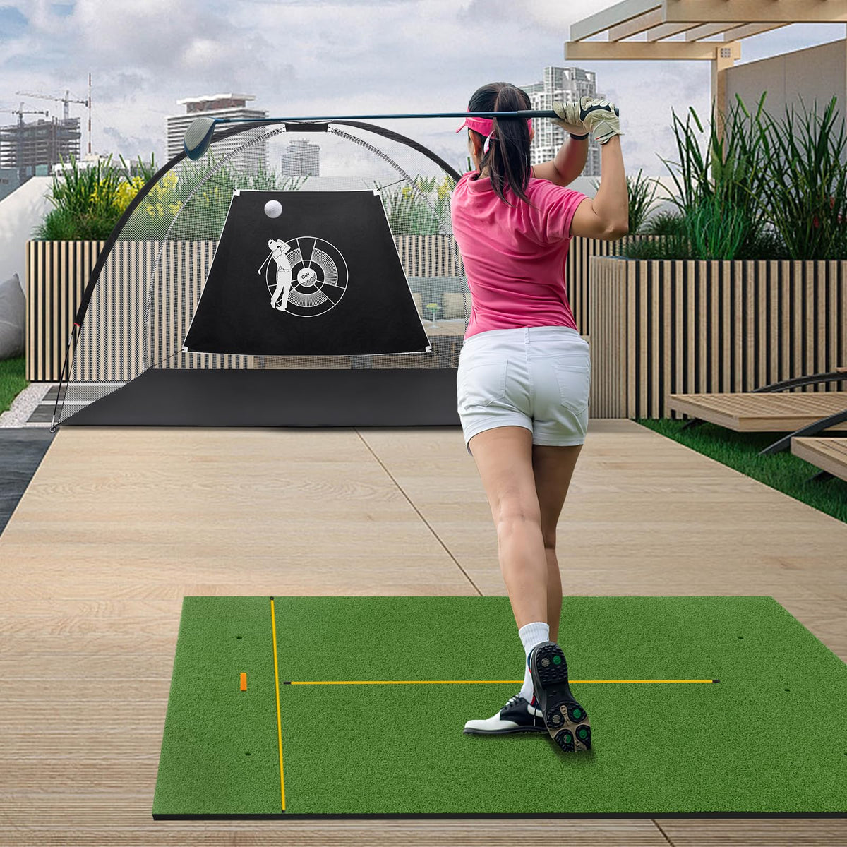 - What You Will Get: The package includes a 5 ft x 3 ft/5 ft x 4 ft golf hitting mat, 2 rubber tees and 2 golf alignment sticks, which makes this mat a great helper of indoor and outdoor golf practice.