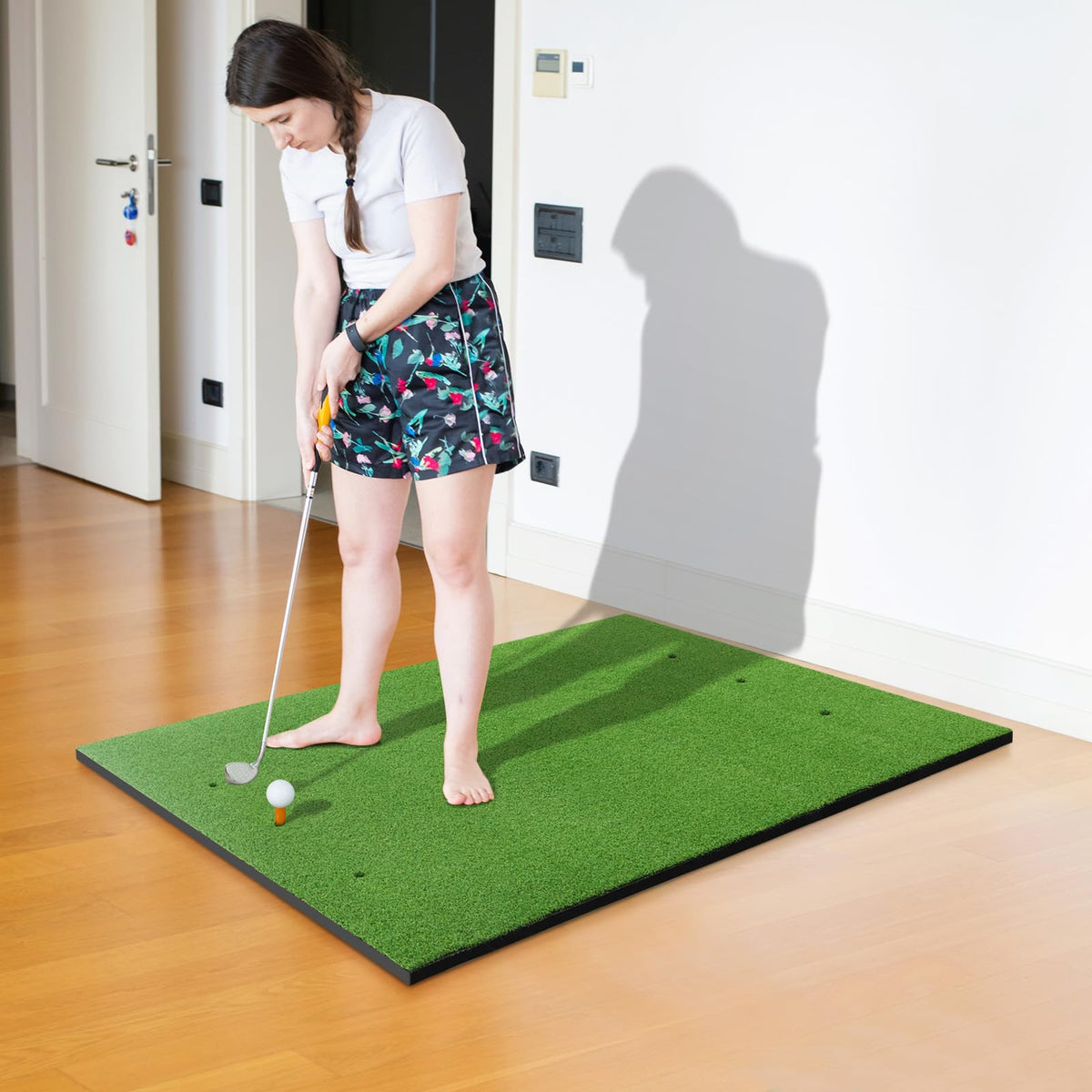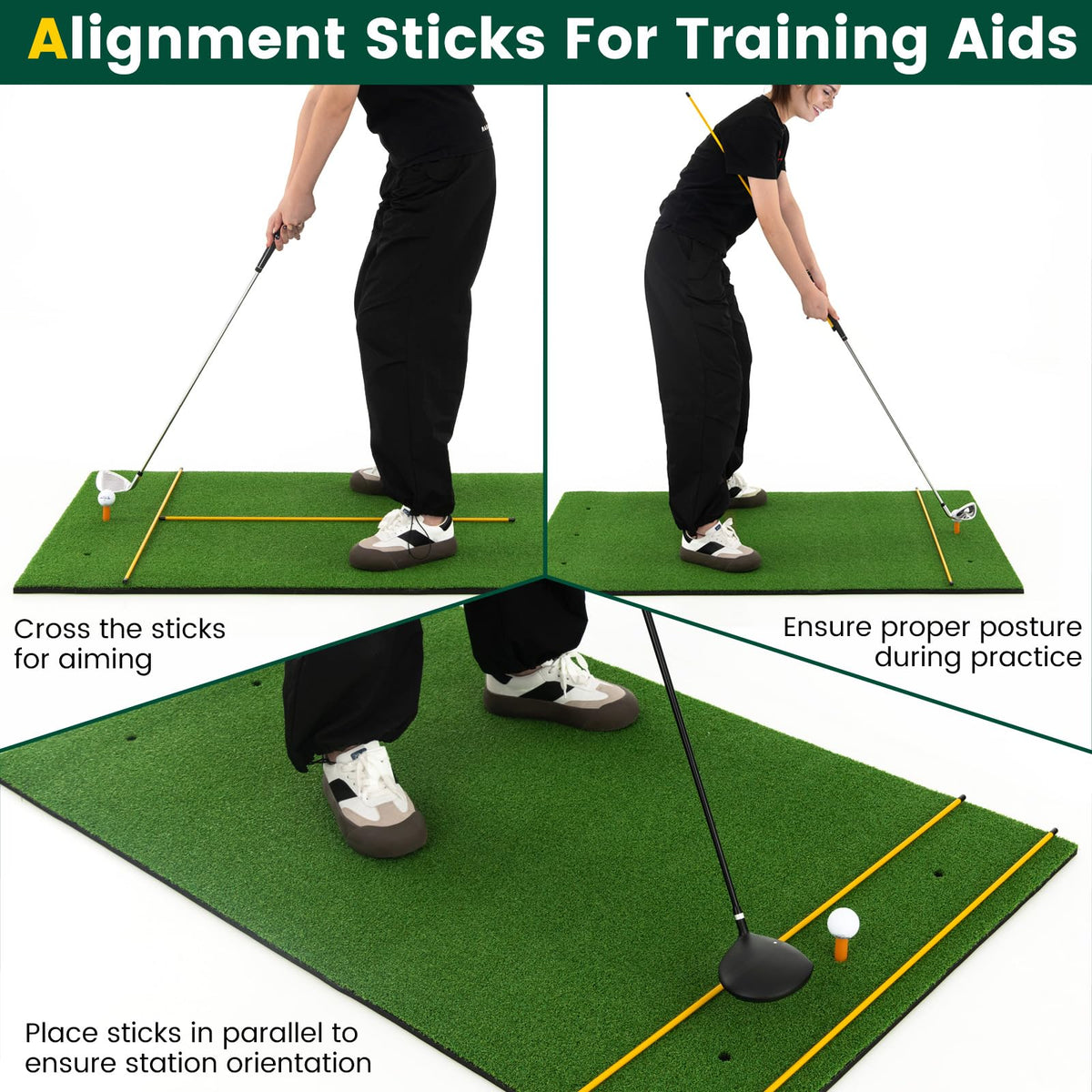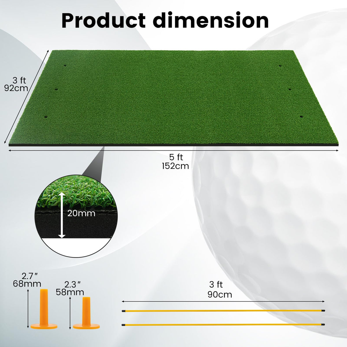 - What You Will Get: The package includes a 5 ft x 3 ft/5 ft x 4 ft golf hitting mat, 2 rubber tees and 2 golf alignment sticks, which makes this mat a great helper of indoor and outdoor golf practice.