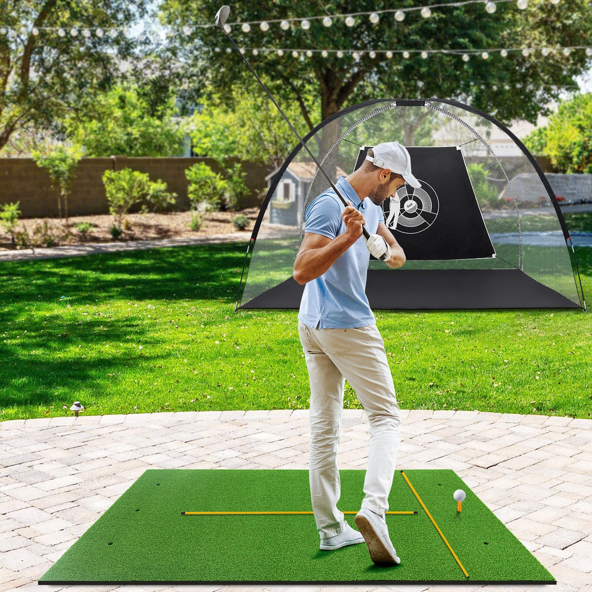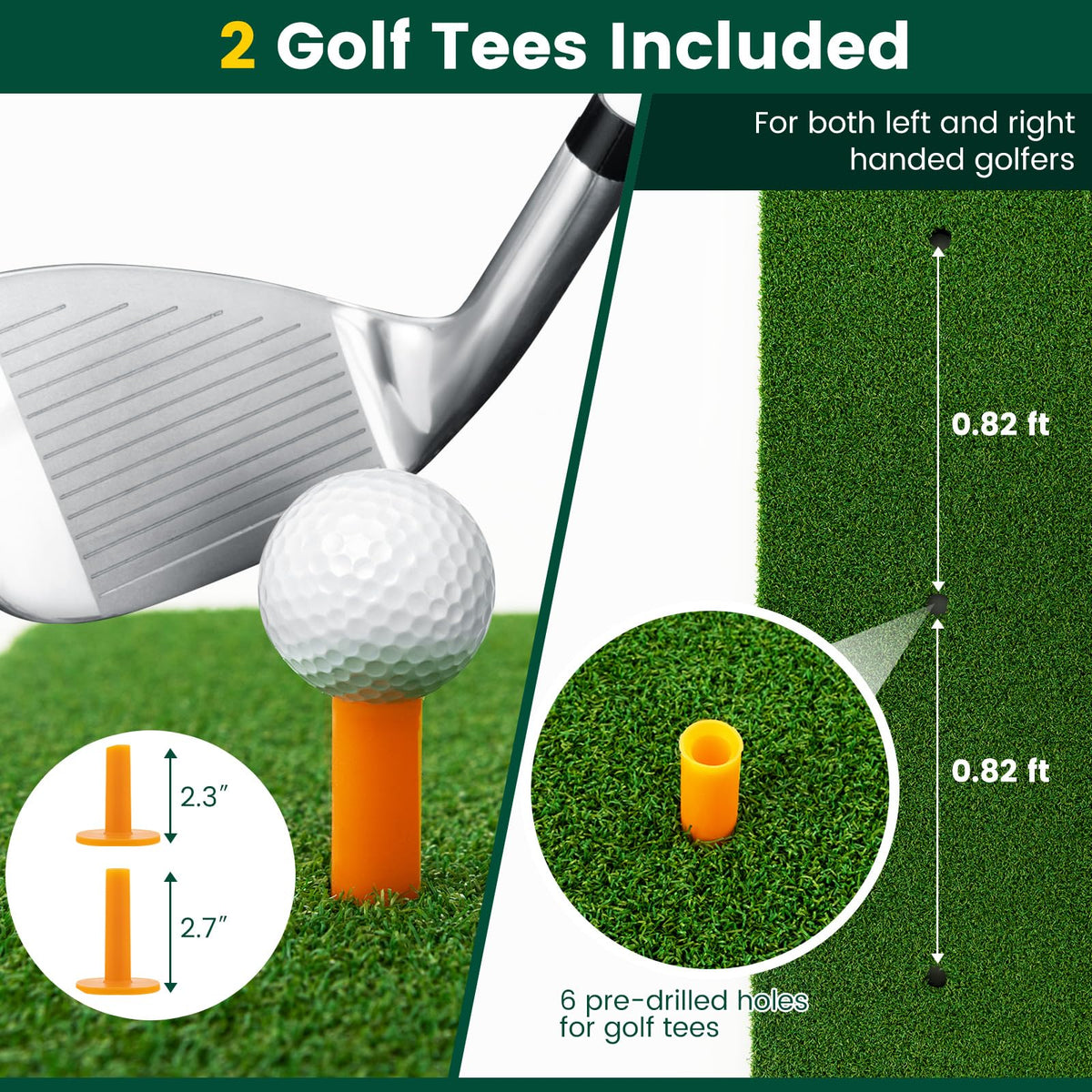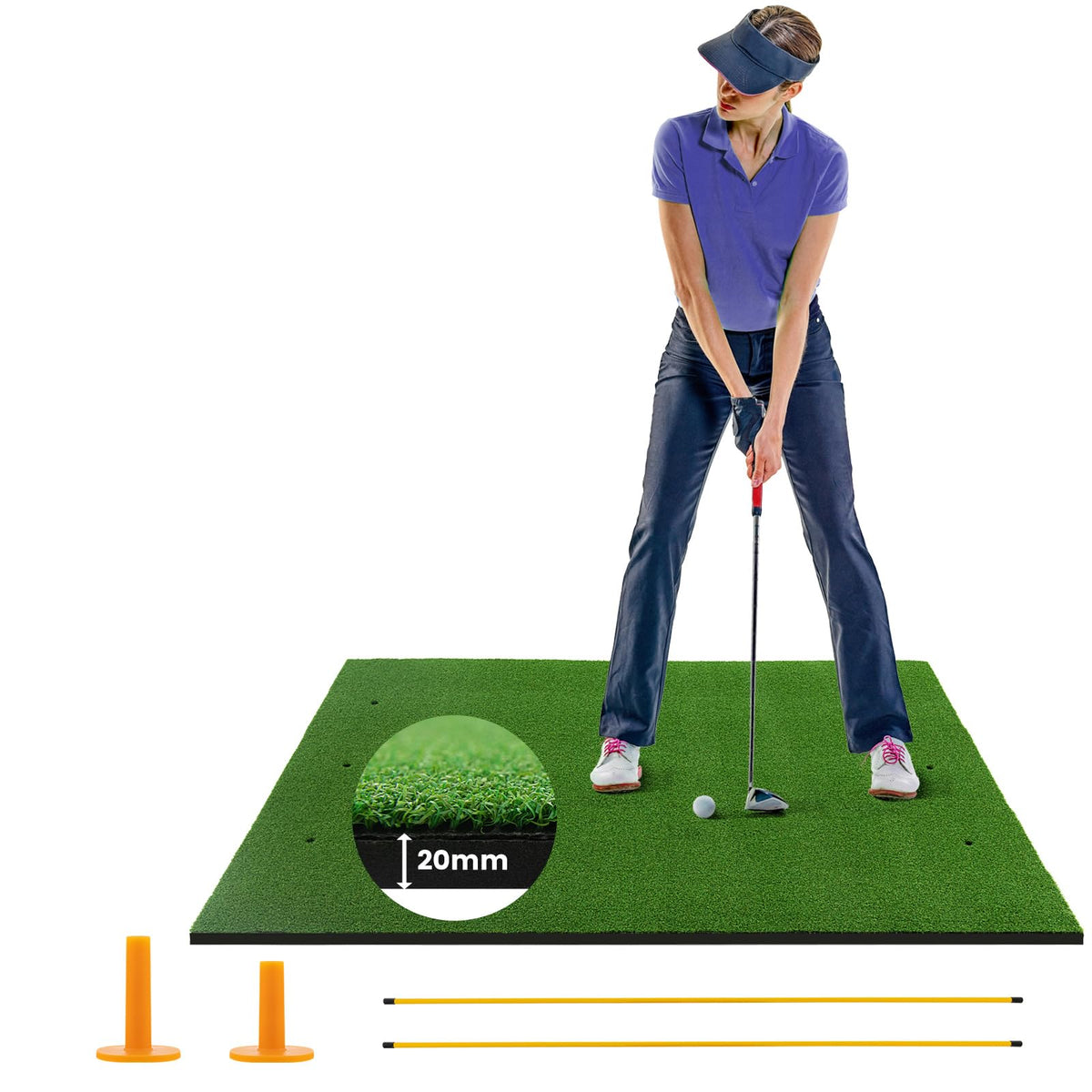 - What You Will Get: The package includes a 5 ft x 3 ft/5 ft x 4 ft golf hitting mat, 2 rubber tees and 2 golf alignment sticks, which makes this mat a great helper of indoor and outdoor golf practice.