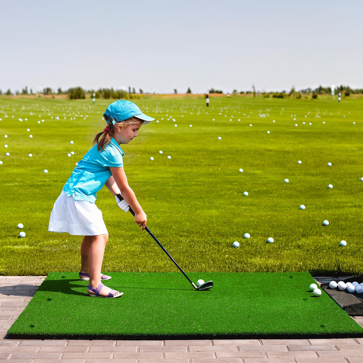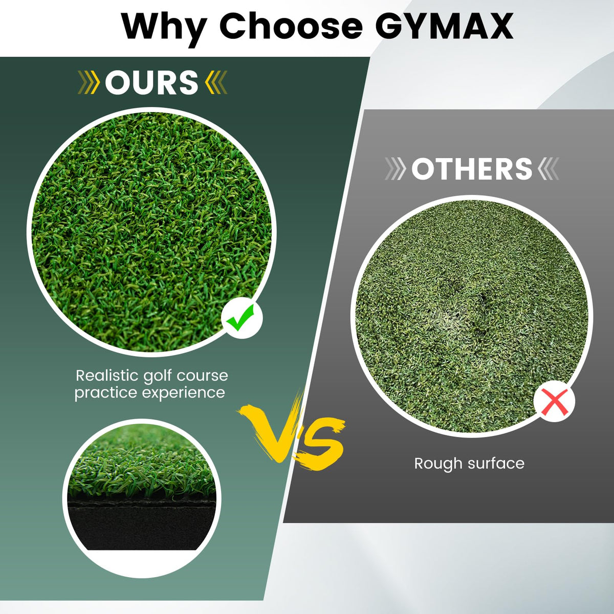 - Multiple Skill Level Available: GYMAX golf hitting mat has 4 thick level, which is 20mm, 25mm, 27mm and 32mm. Among which, 20mm and 25mm would be an economic choice for beginners while 27mm and 32mm golf mat would be more durable with 2mm anti-tearing layer, perfect for advanced golf players.