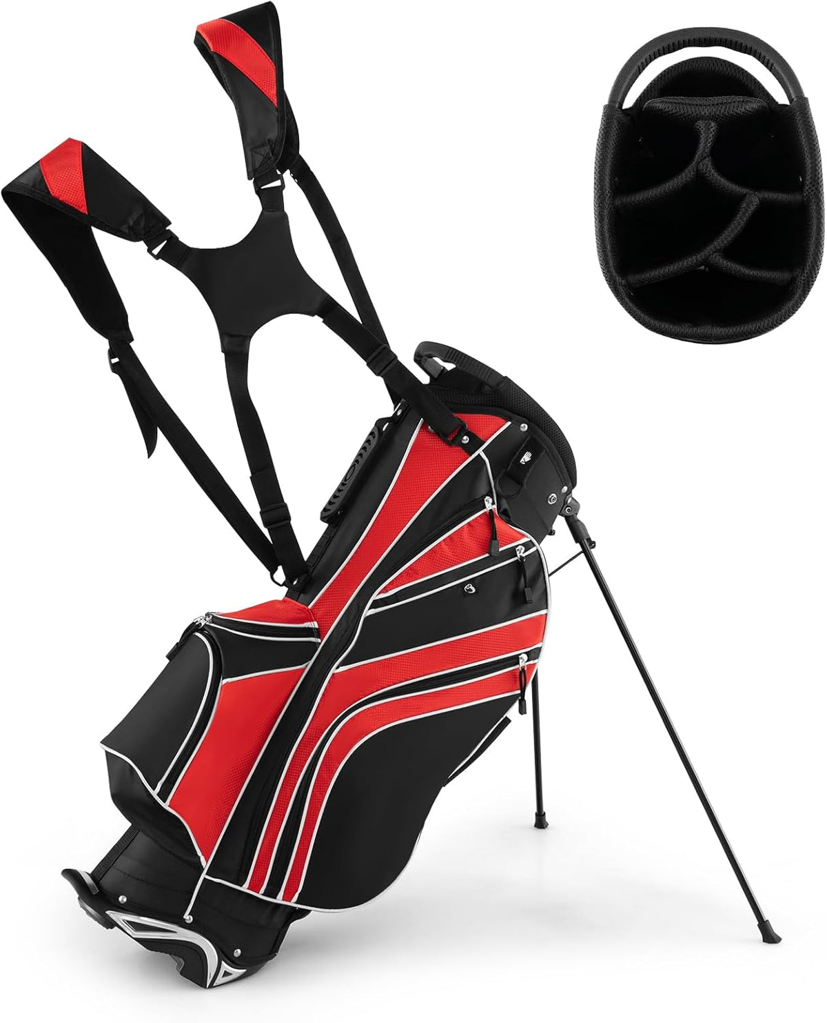 GYMAX Golf Stand Bag, 6 Way Divider Golf Club Bag with 8 Pockets