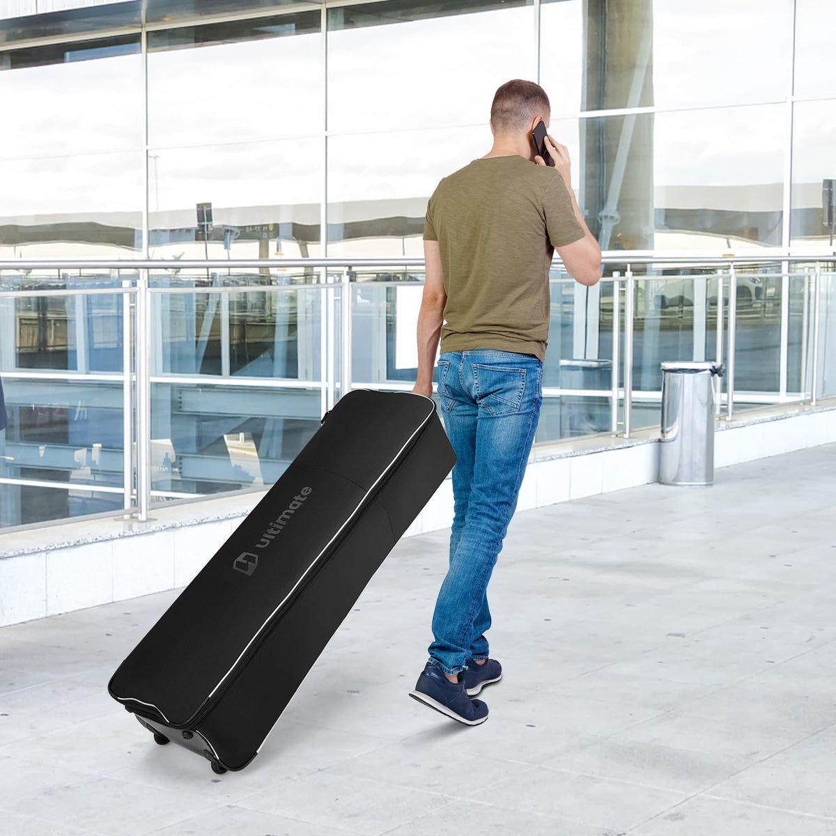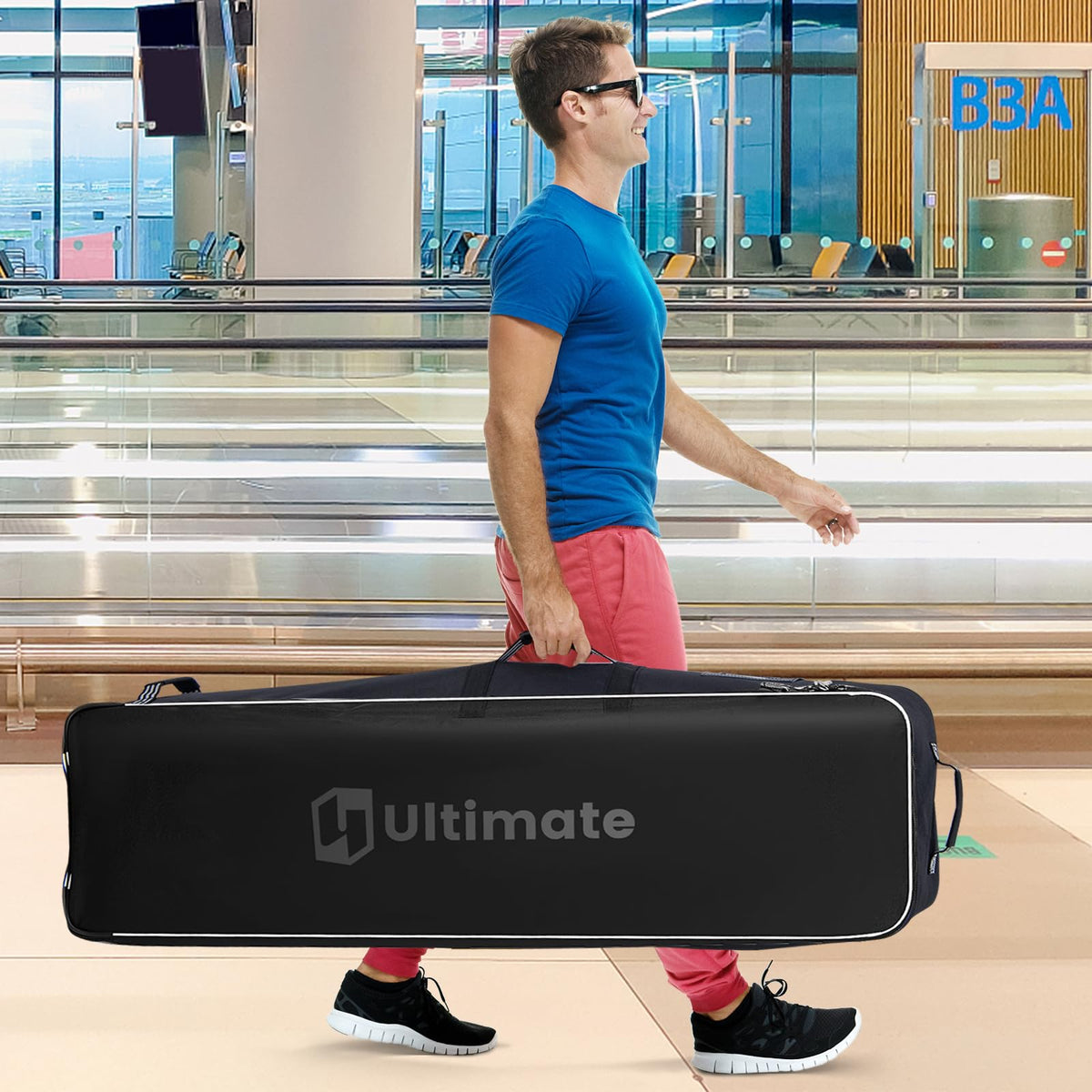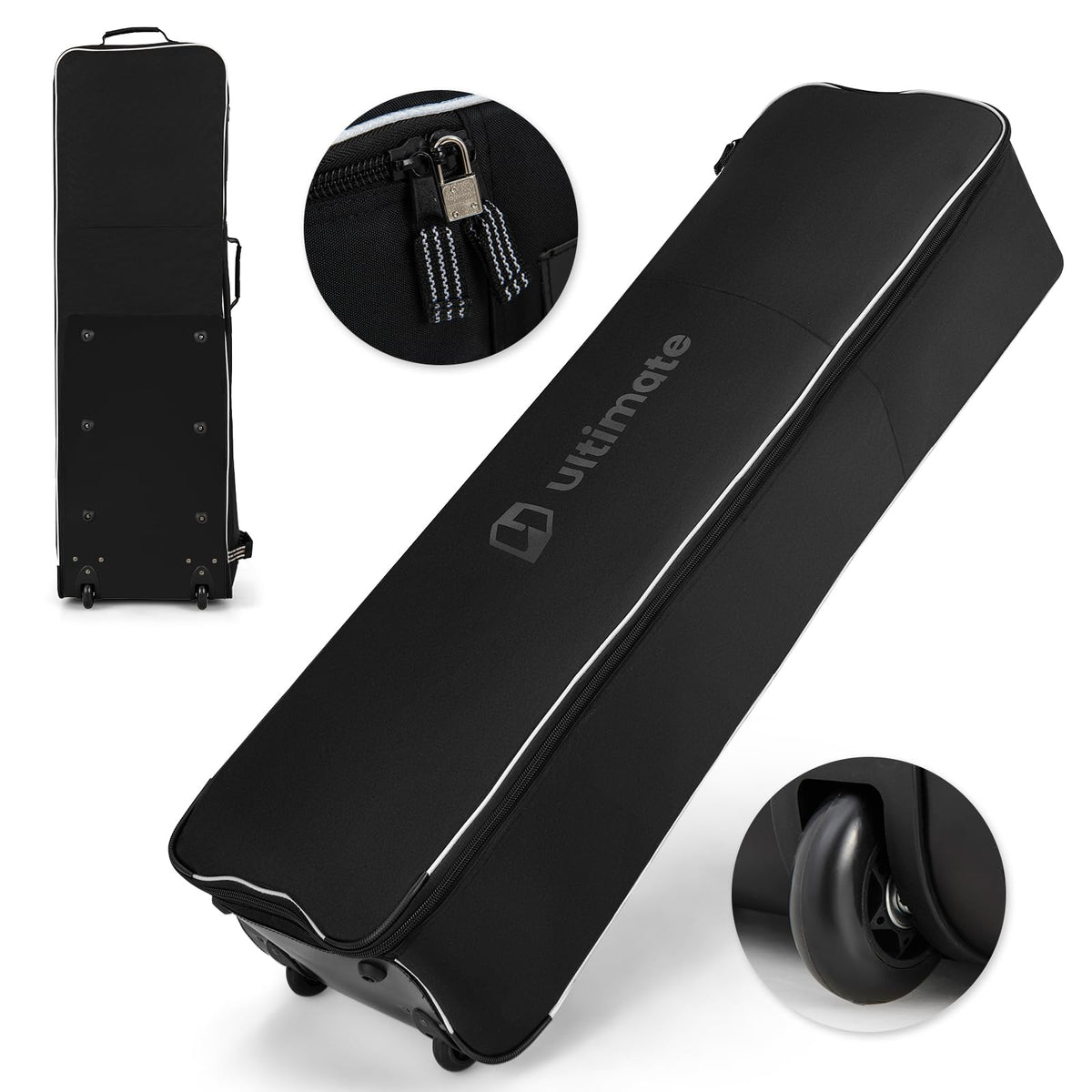 Enjoy playing golf anywhere you go!This golf travel bag is designed with wear resistant and waterproof 900D Oxford cloth and thick sponge padding to provide all around protection to your golf bag and clubs during transportation. Besides, the smooth 2-way zipper is designed with keyholes and a lock is also included. With rolling wheels and multiple handles, this lightweight golf travel case is effortless to move around.