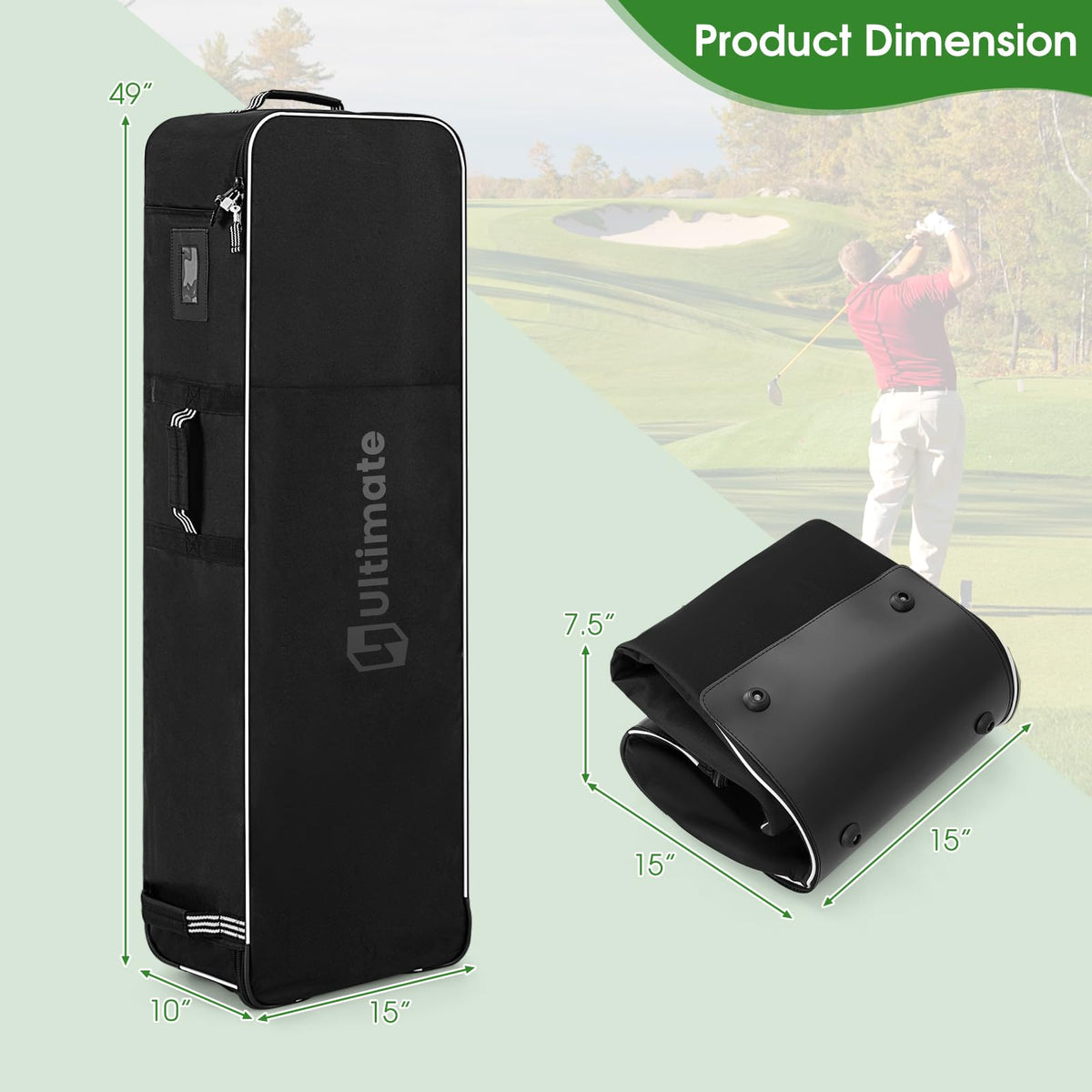 - Portable & Compact: 15" x 15" x 7.5" folding size leaves you no worries about storage after arrive your destination. And you could also use this golf bag shell as a dirt-protective cover for your golf bag and clubs.