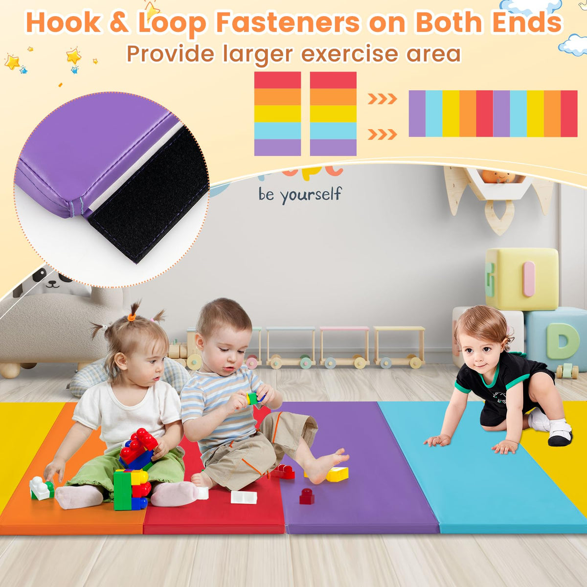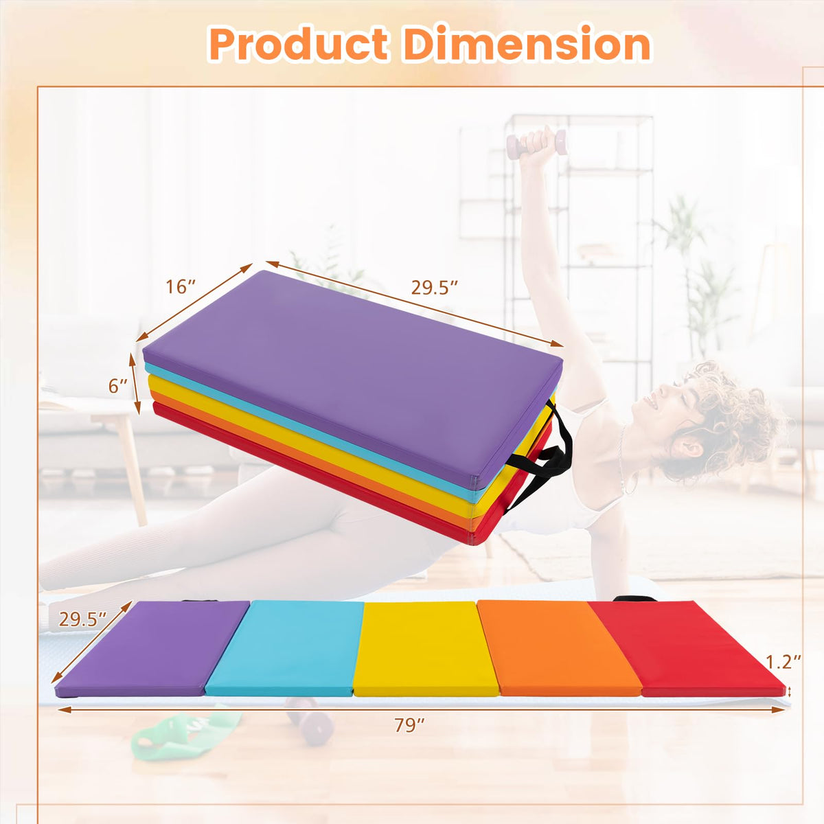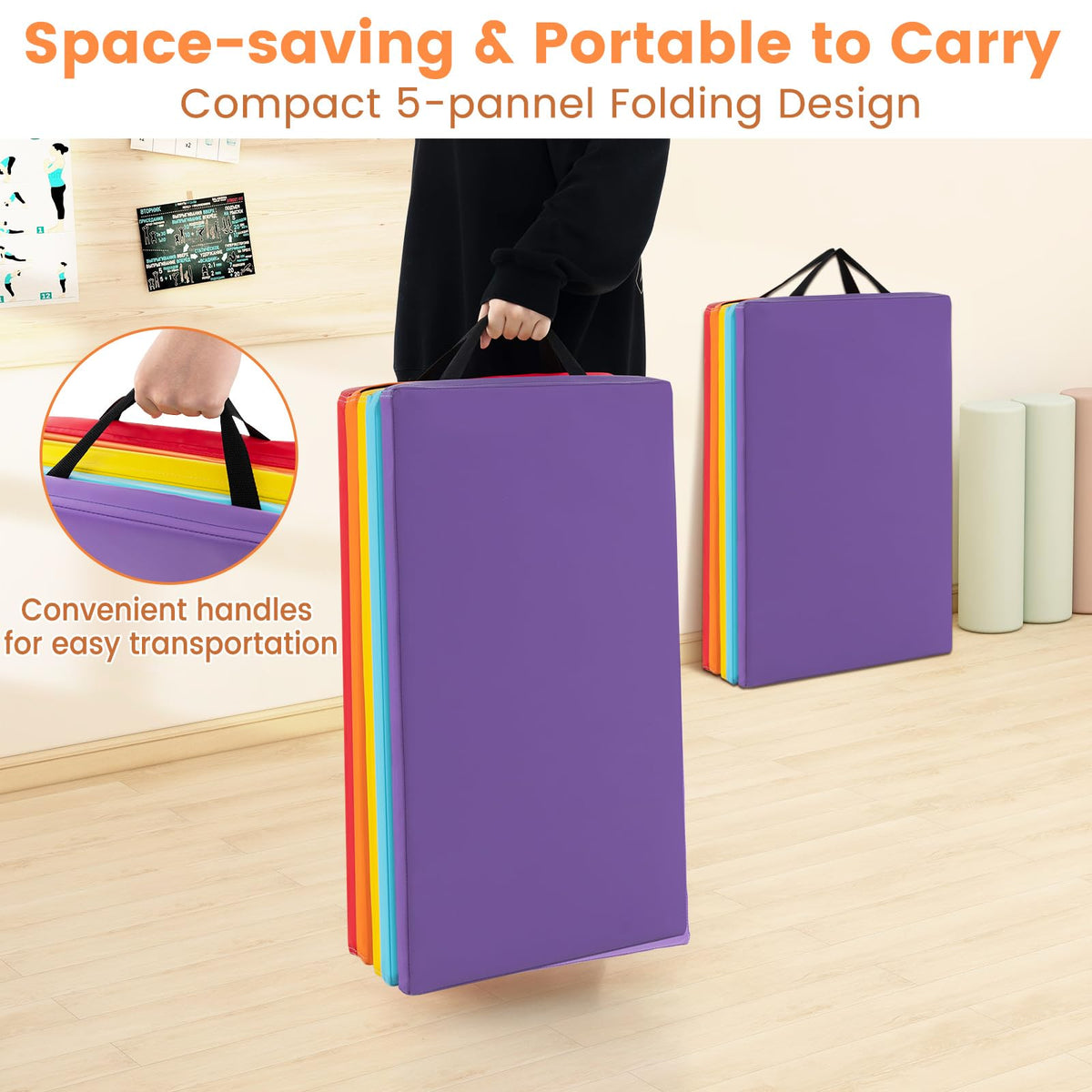 GYMAX Gymnastics Mat, 5-Panel Folding Tumbling Mat with Carrying Handles, 4-Side Hook & Loop Fasteners