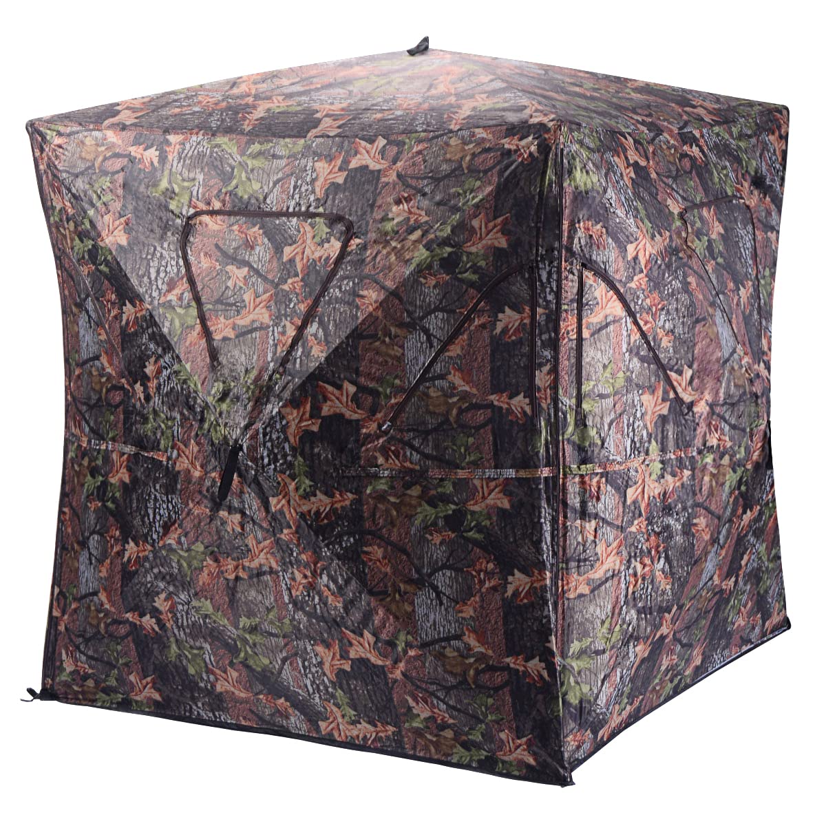 GYMAX Hunting Blind, 2-3 People Pop Up Ground Blind Tent, 360 Degree See Through for Deer, Turkey