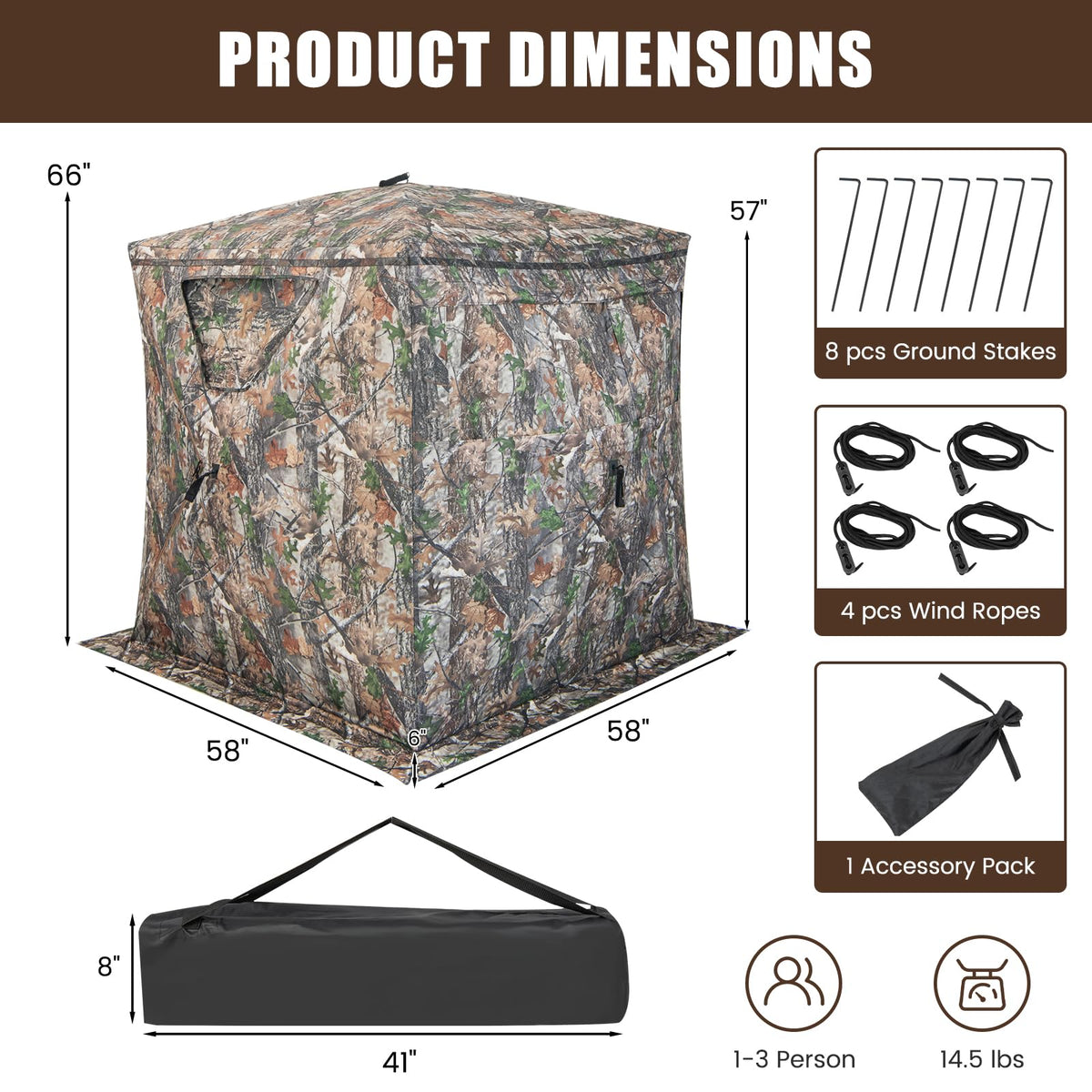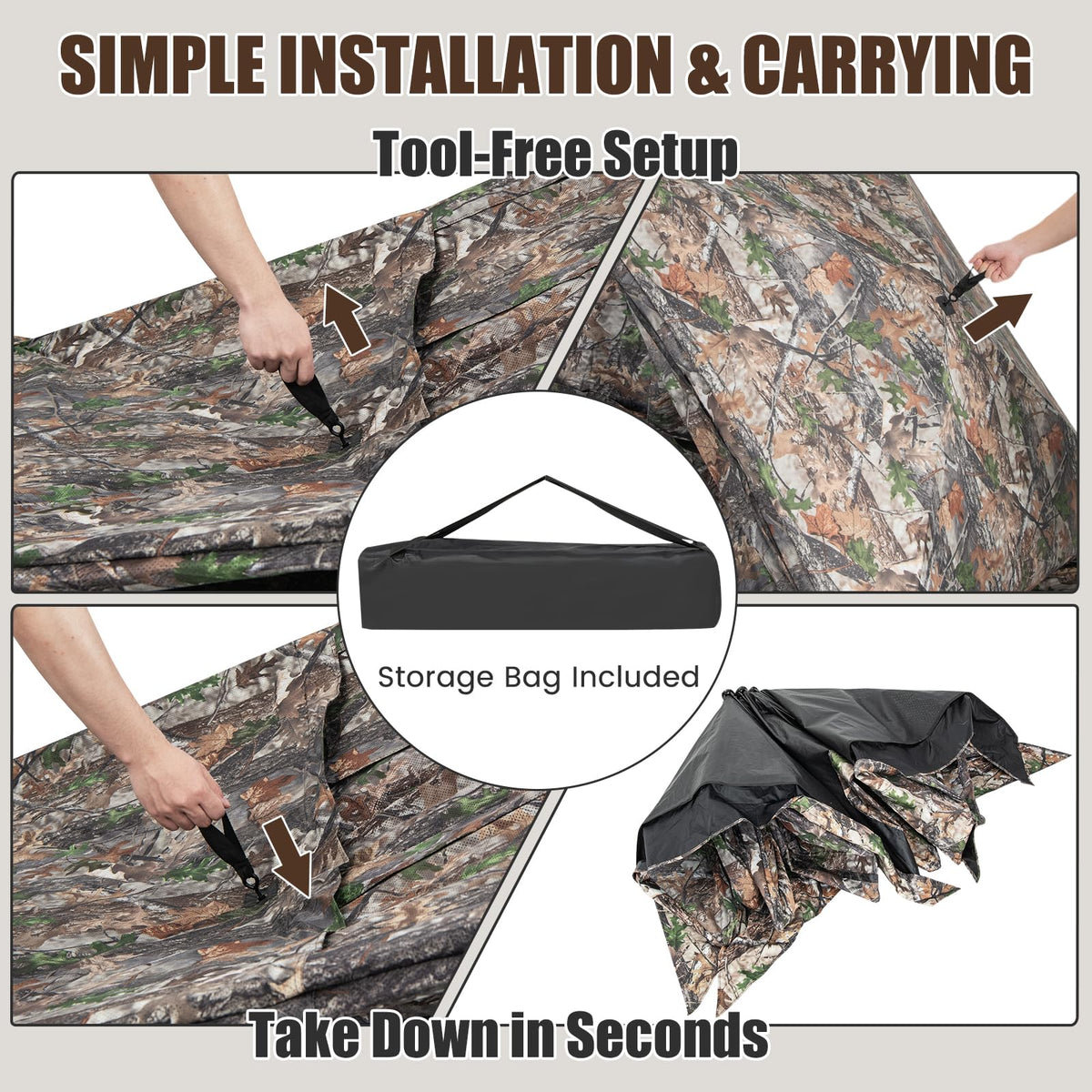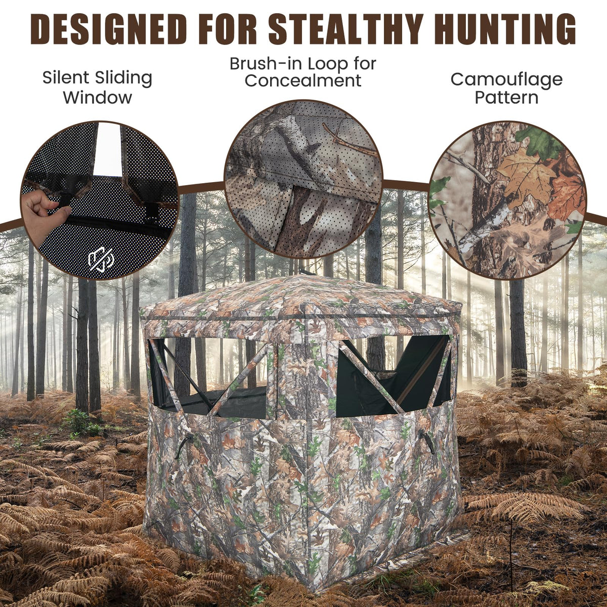 GYMAX Hunting Blind, 3 Person Pop up See Through Camouflage Deer Blind with Silent Sliding